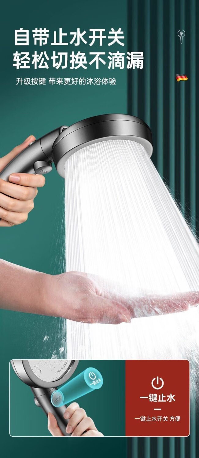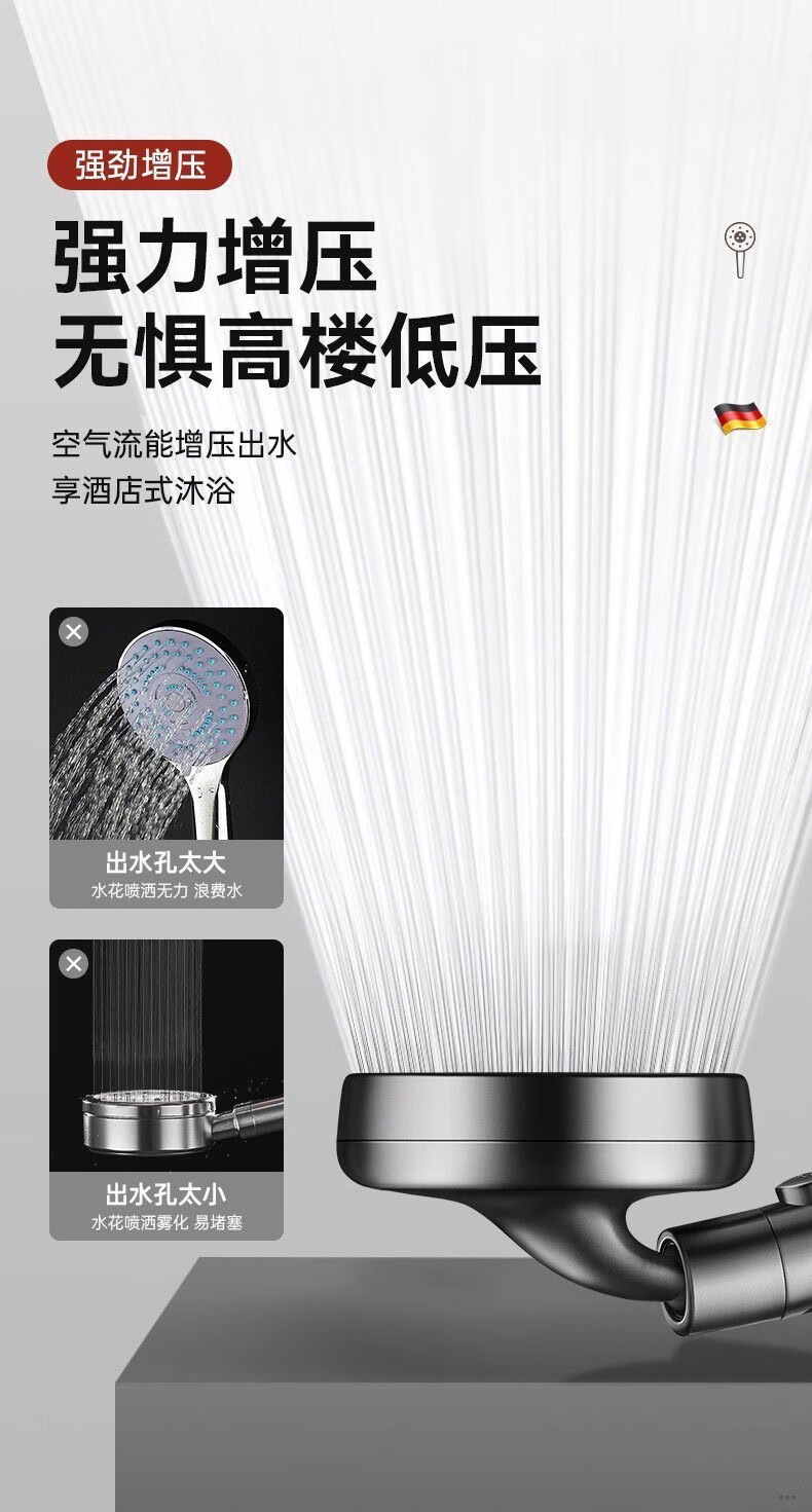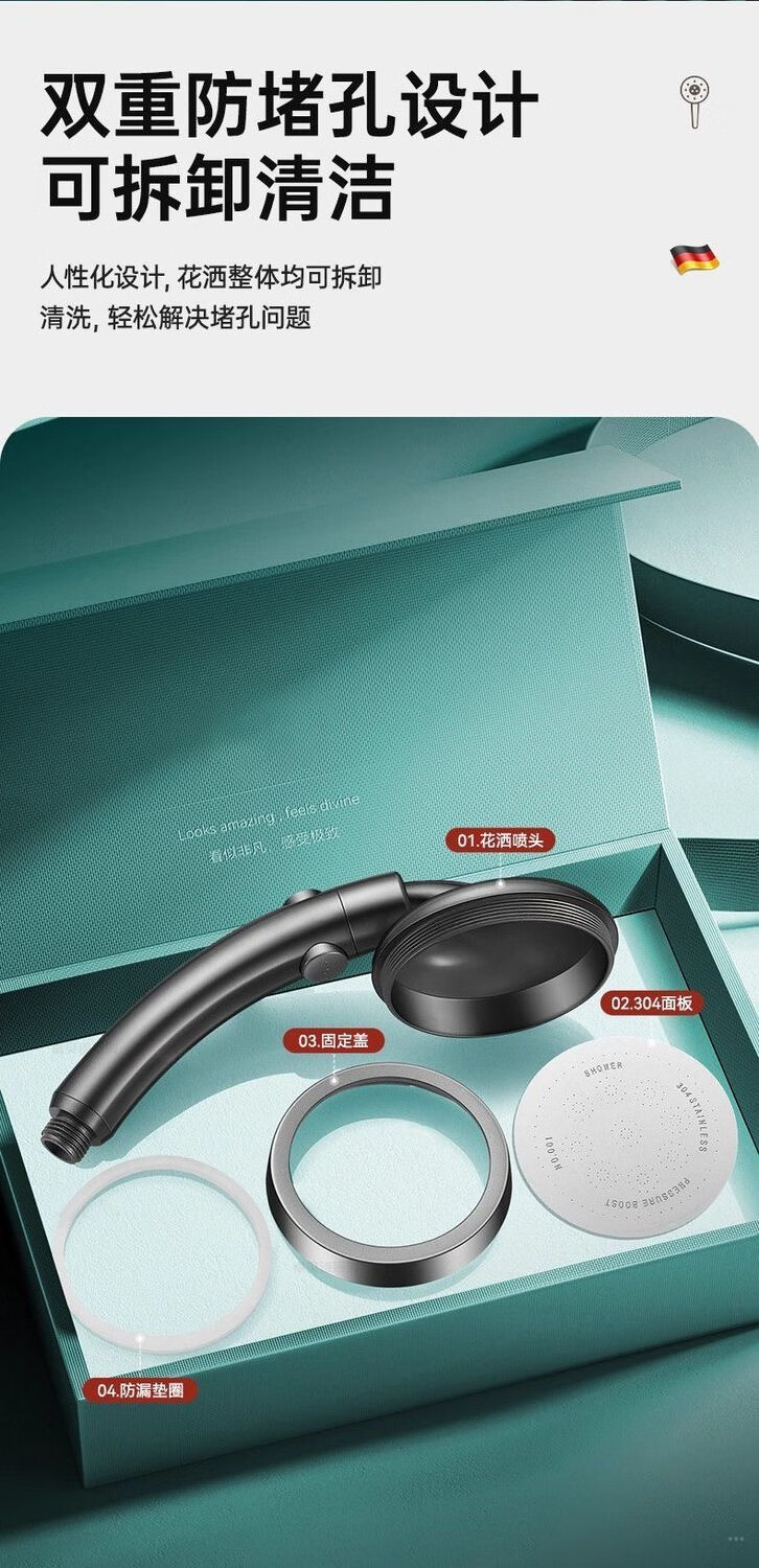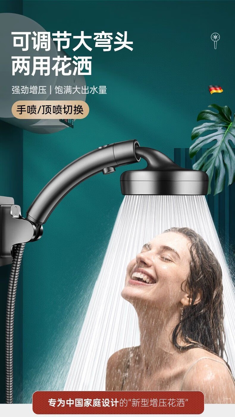 睦歌(MUGE)【德国】淋浴增压花洒喷头大面板可旋转手持顶喷两用浴室莲蓬头 枪灰【手持+顶喷双用】单花洒头