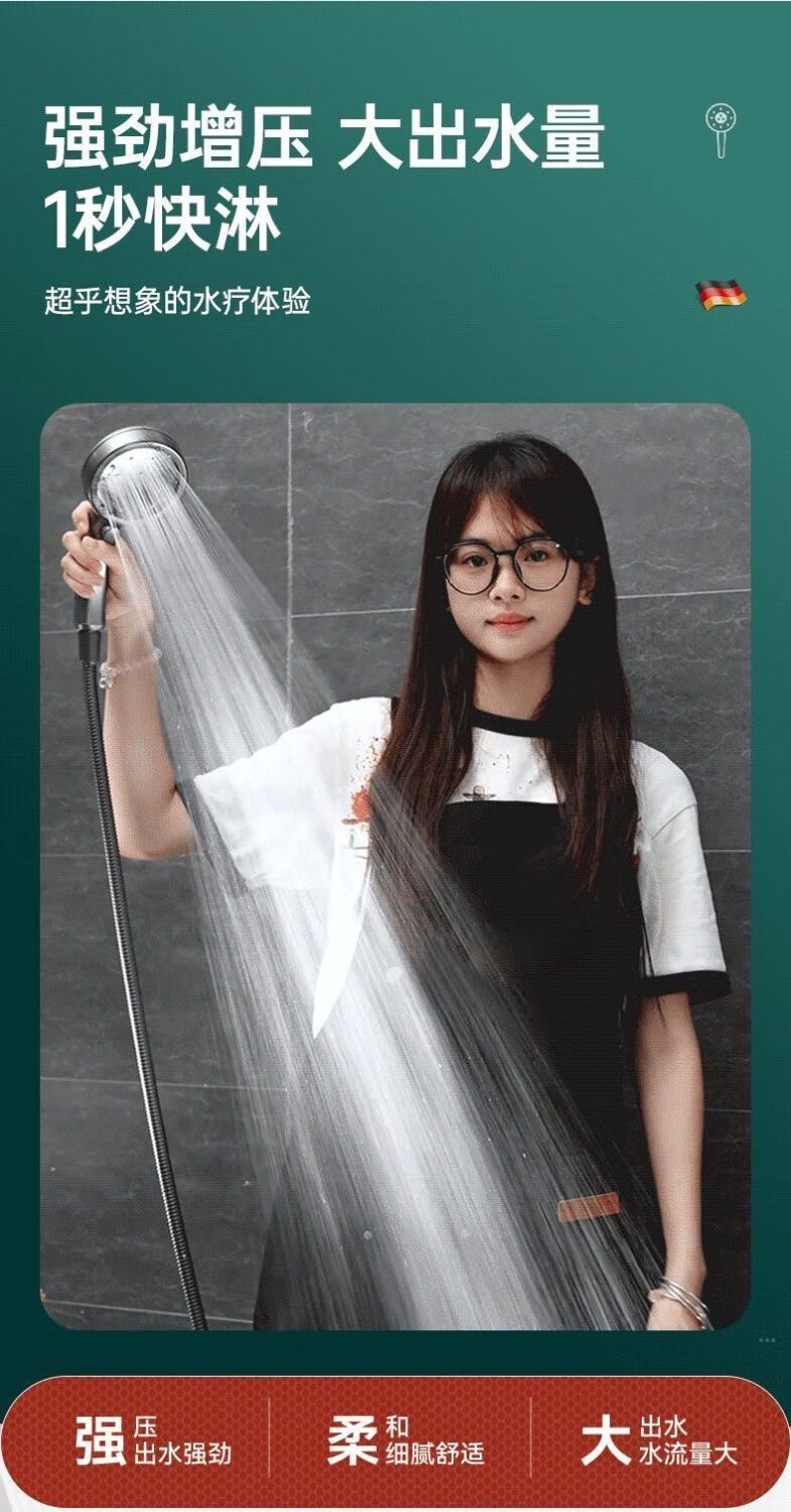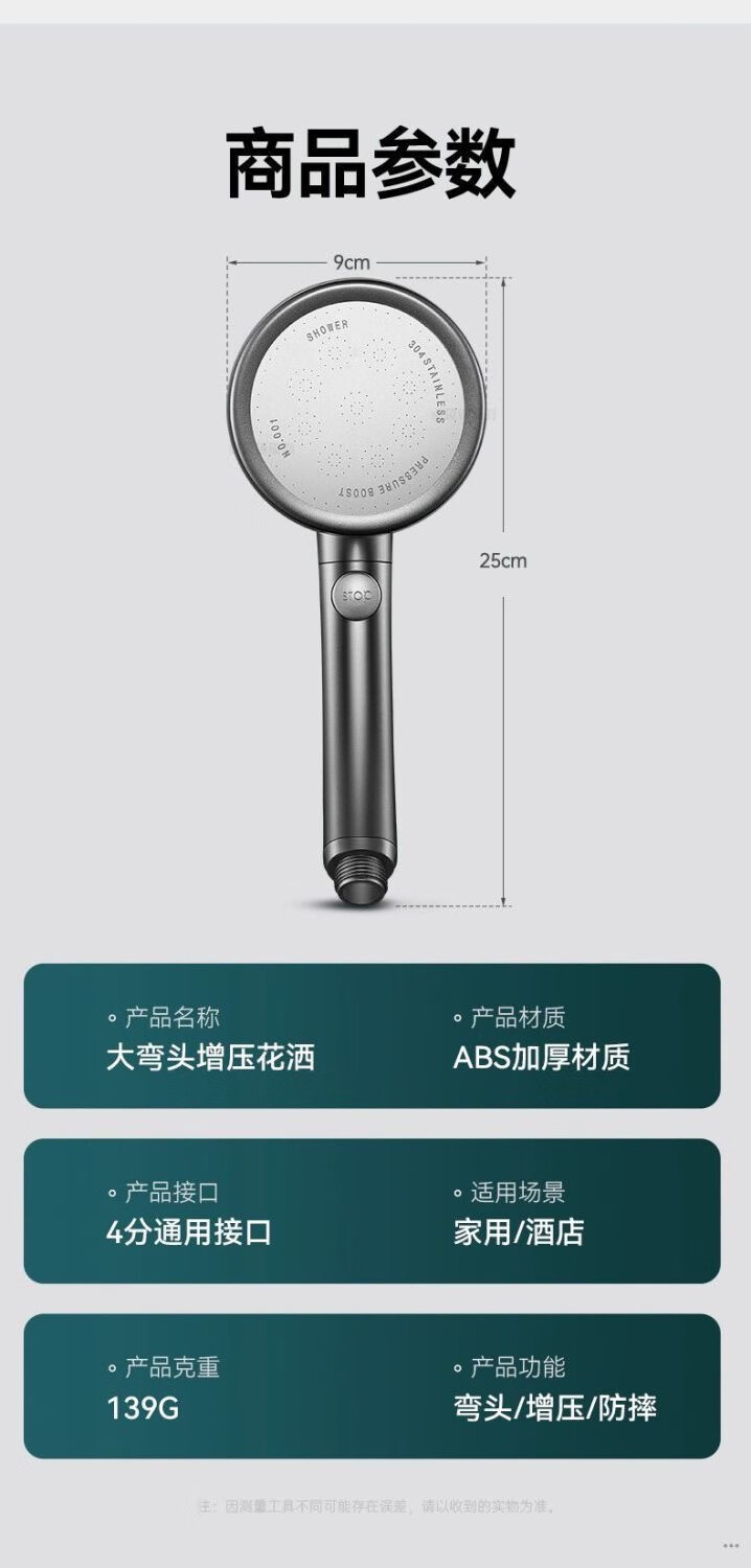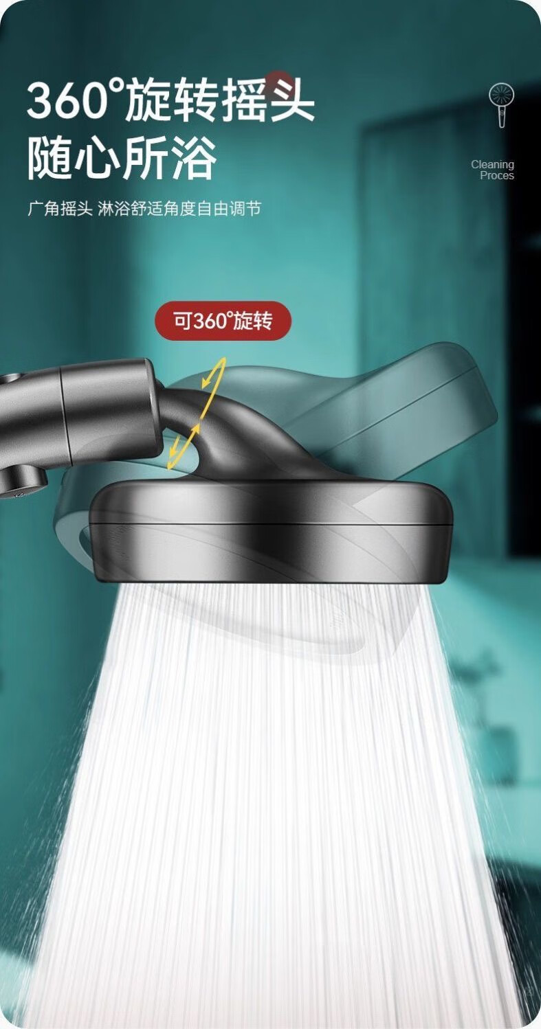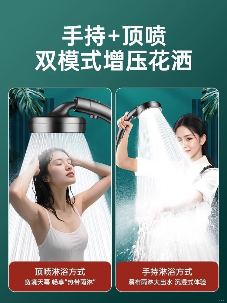 睦歌(MUGE)【德国】淋浴增压花洒喷头大面板可旋转手持顶喷两用浴室莲蓬头 枪灰【手持+顶喷双用】单花洒头