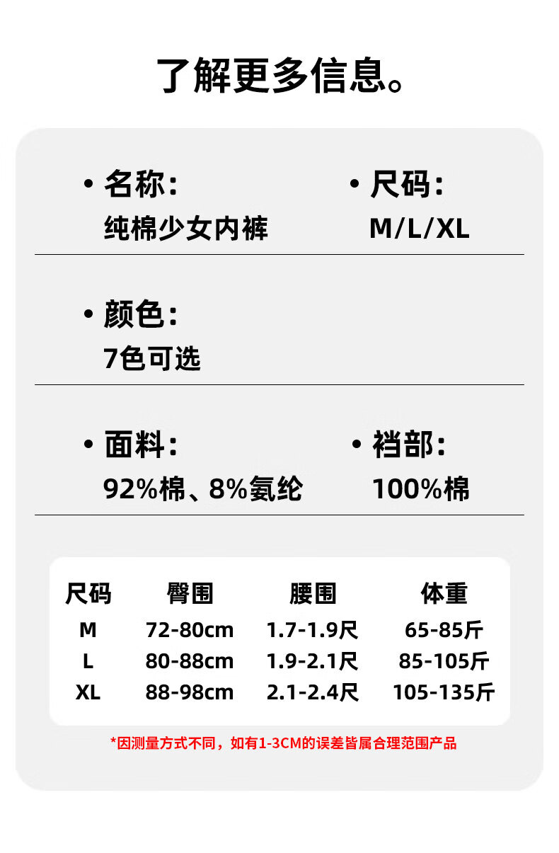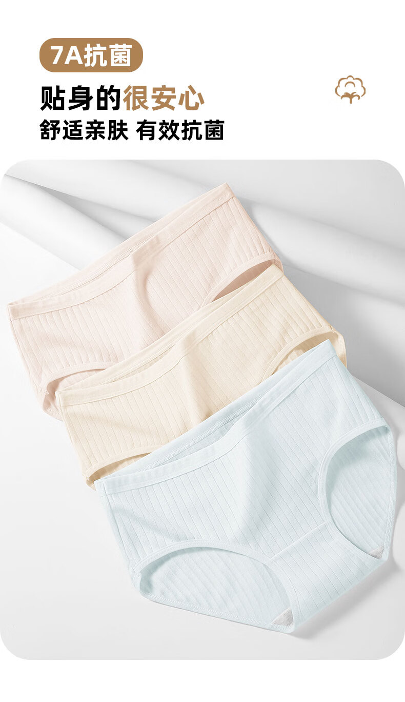都市丽人女士内裤女7A抑菌底档舒适透气吸汗加宽不夹臀中腰甜美少女短裤 粉色+灰色+蓝色 3条 XL 建议【105-135斤】