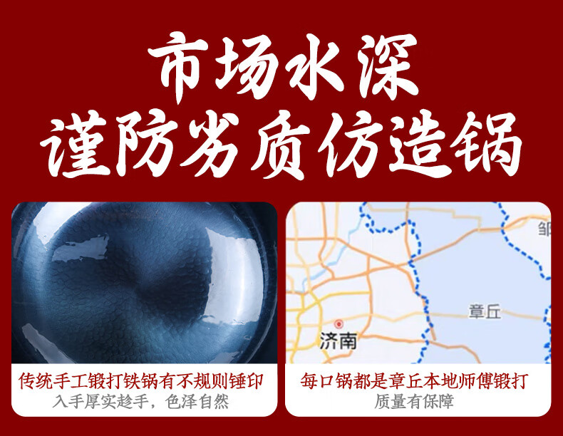 臻古朴章丘手工铁锅炒锅圆底老式炒锅已开锅家用无涂层不粘炒菜锅电磁炉 宗师镜面铁锅 30cm