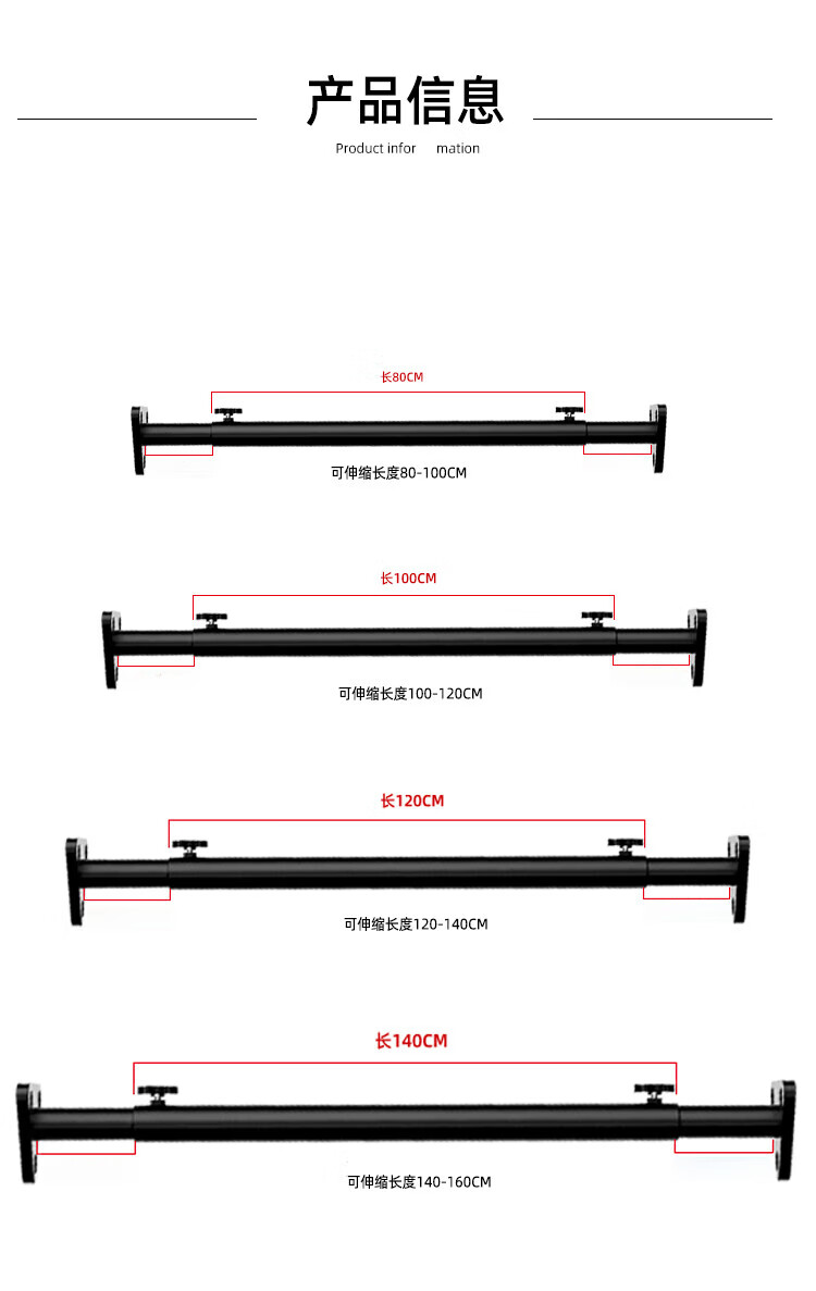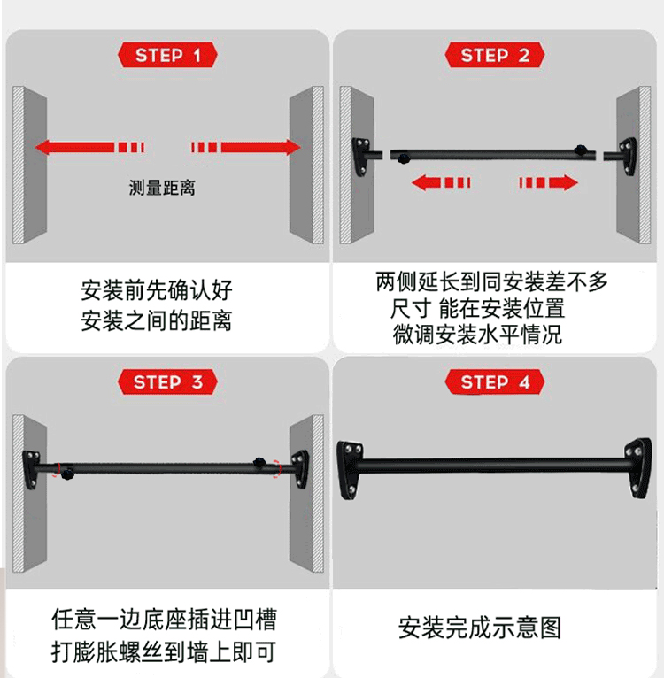 振飞单杠家用室内引体向上成人儿童健身器材家庭可调节墙体打孔固定杆 80-100cm(安装间距)