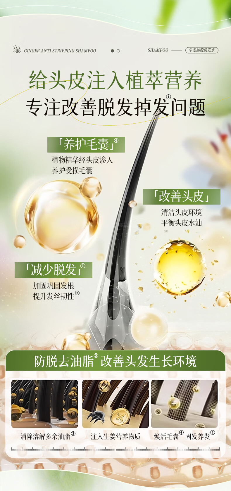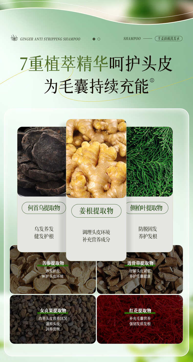 滋源控油去屑洗发水无患子清爽蓬松生姜防脱洗头膏男女士无硅油洗发露 控油蓬松洗发水300g送400g