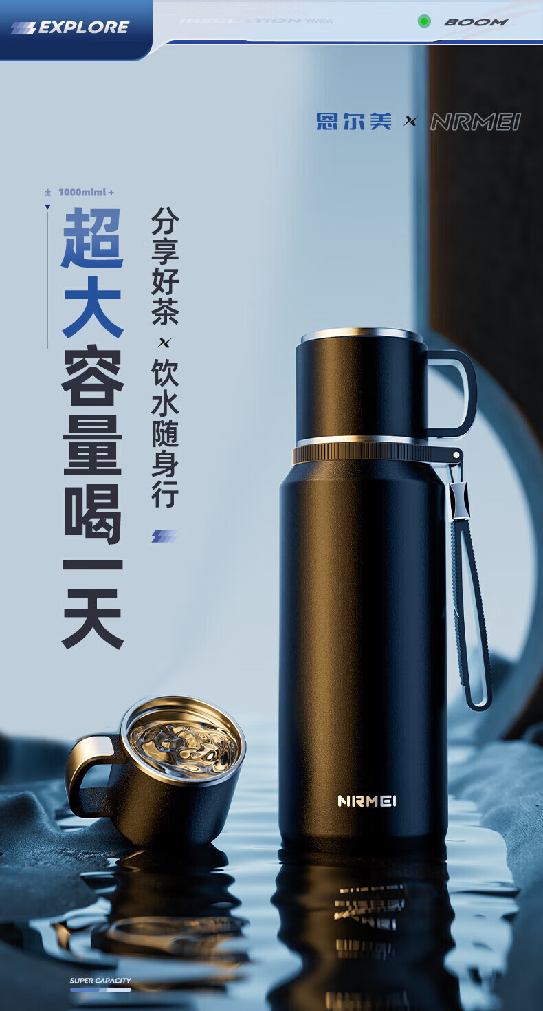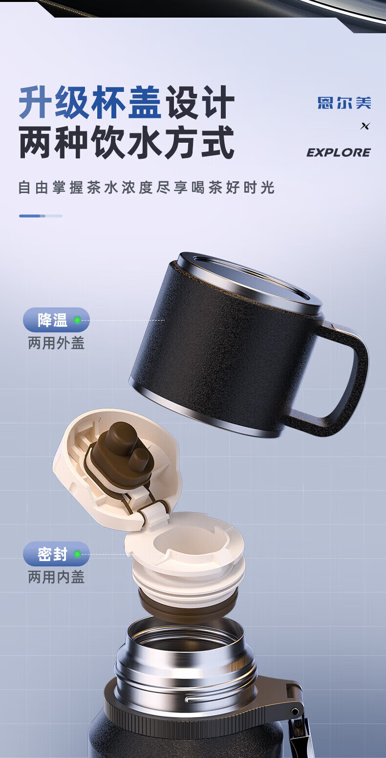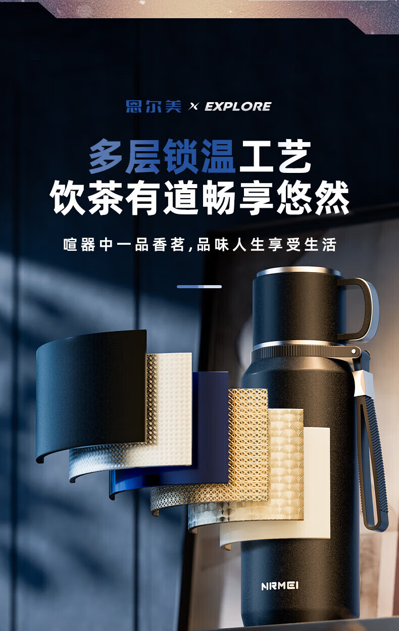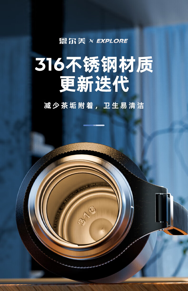 恩尔美(nRMEi)保温杯大容量茶水分离焖泡茶杯316不锈钢男士便携高档水杯新款 【流光银】800毫升/茶水分离