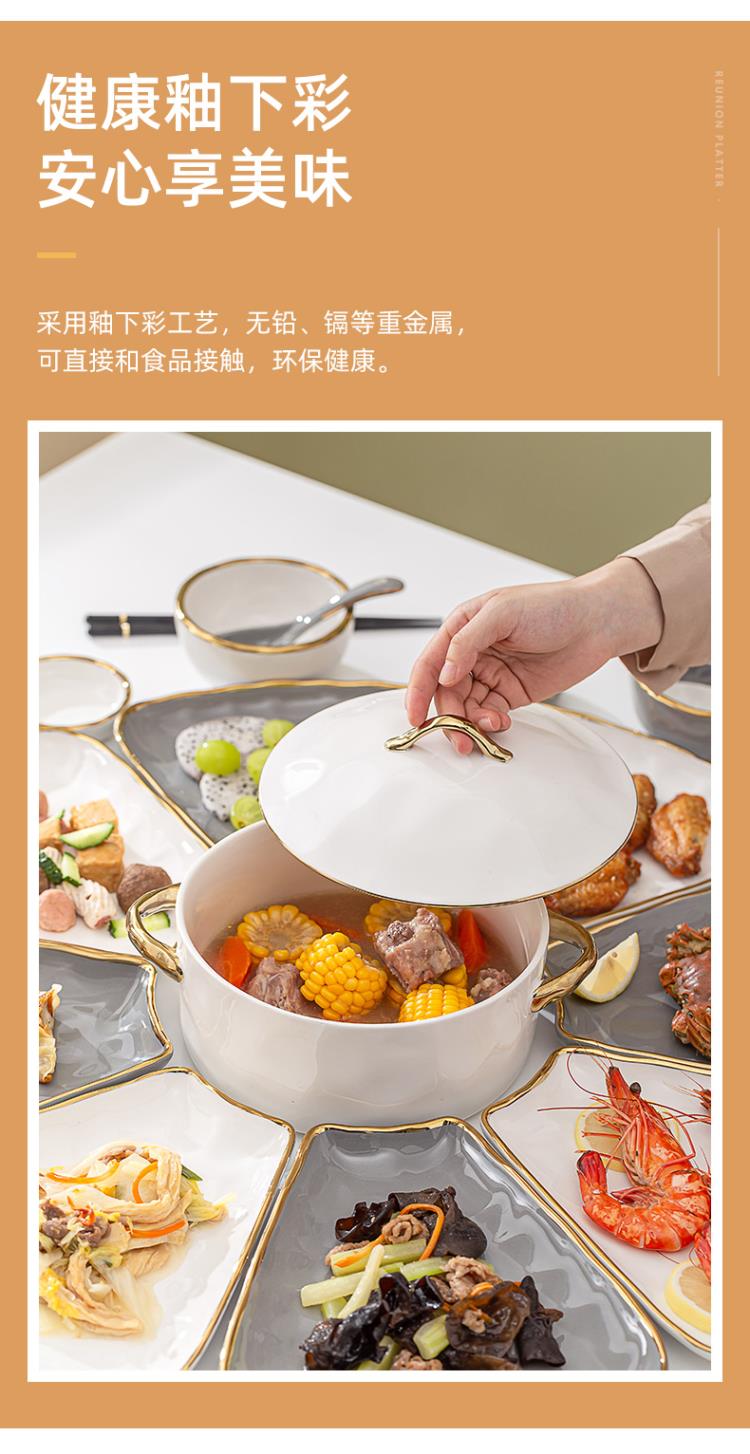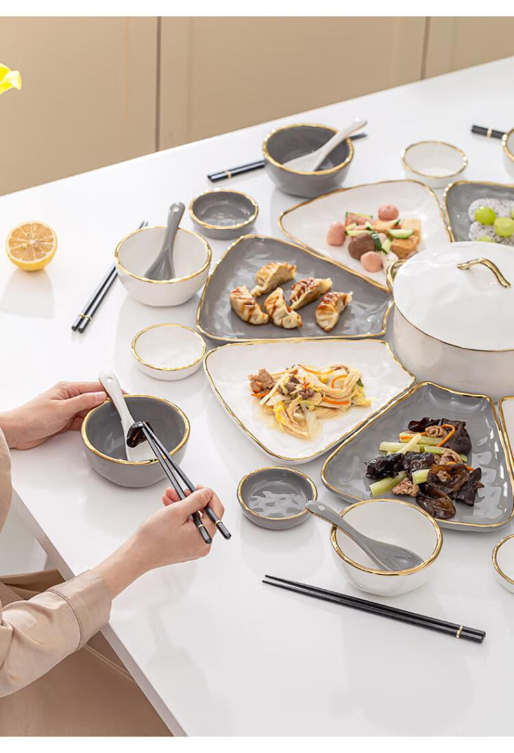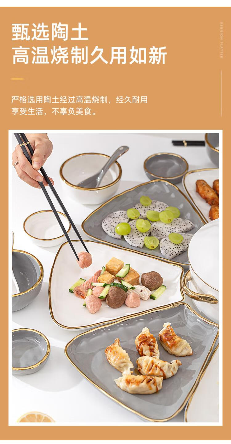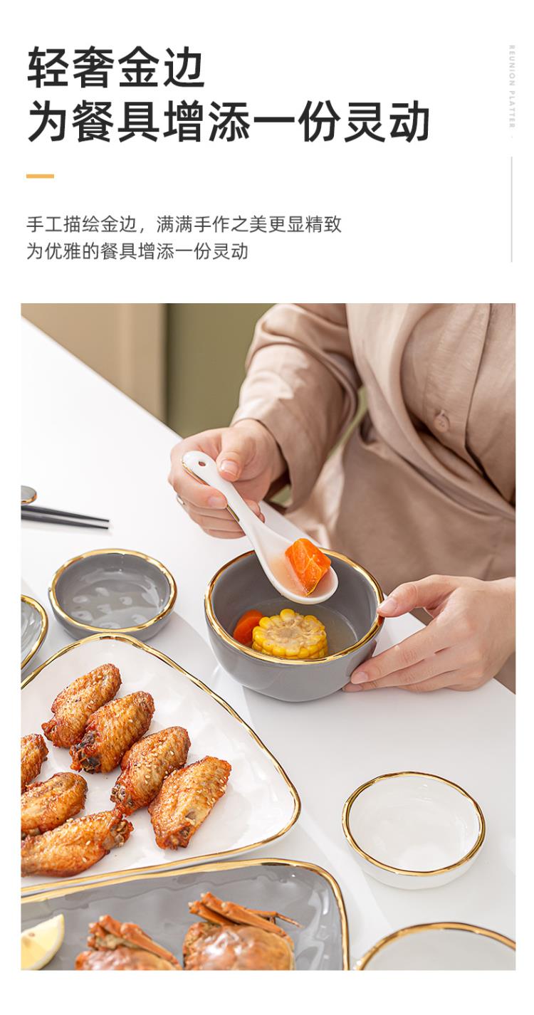 英格丽(INGRI)陶瓷拼盘餐具组合套装家用圆桌团圆家庭聚餐菜盘子碗乔迁新居送礼 白金汤碗9件套