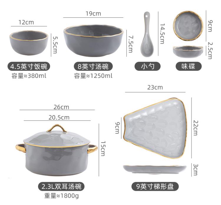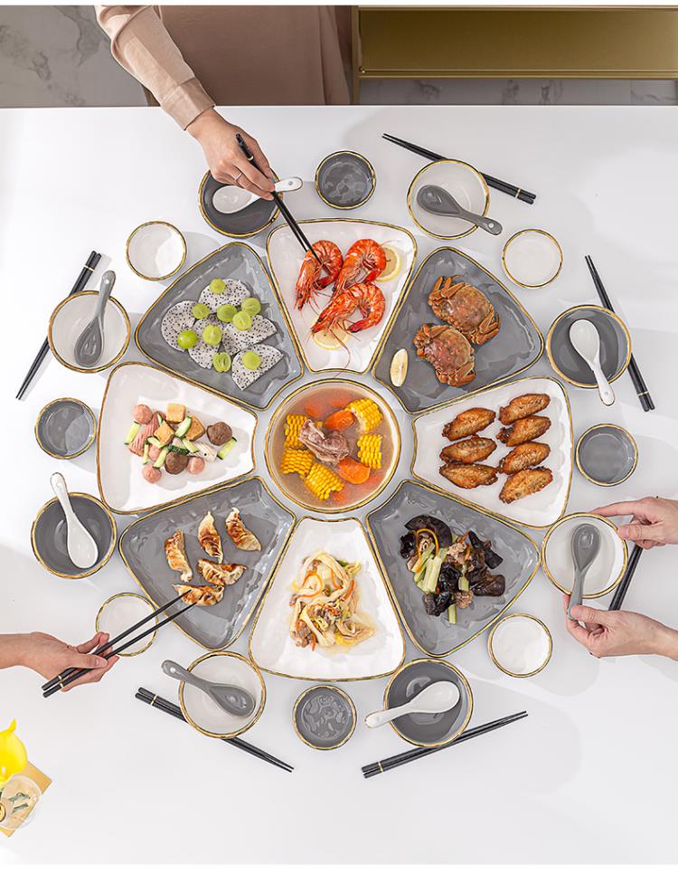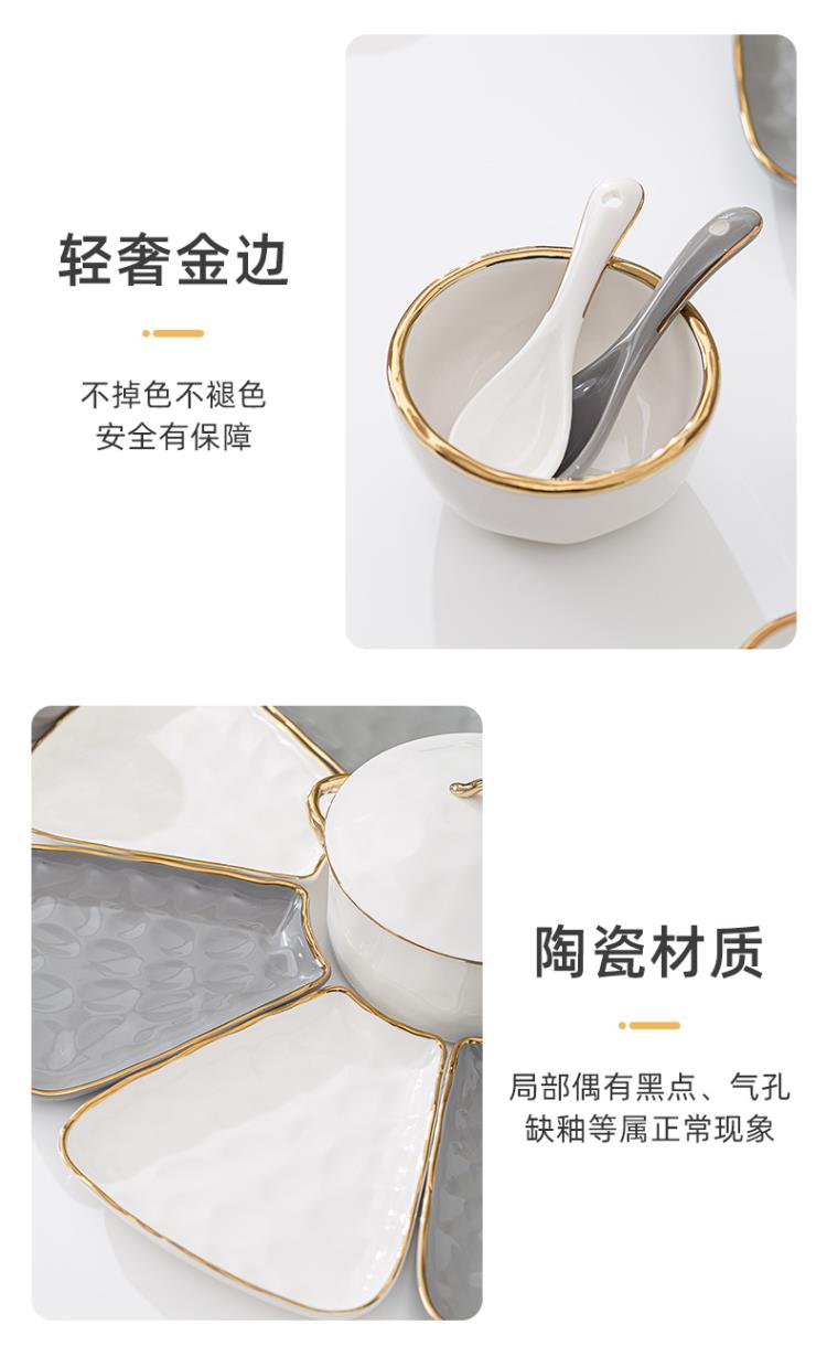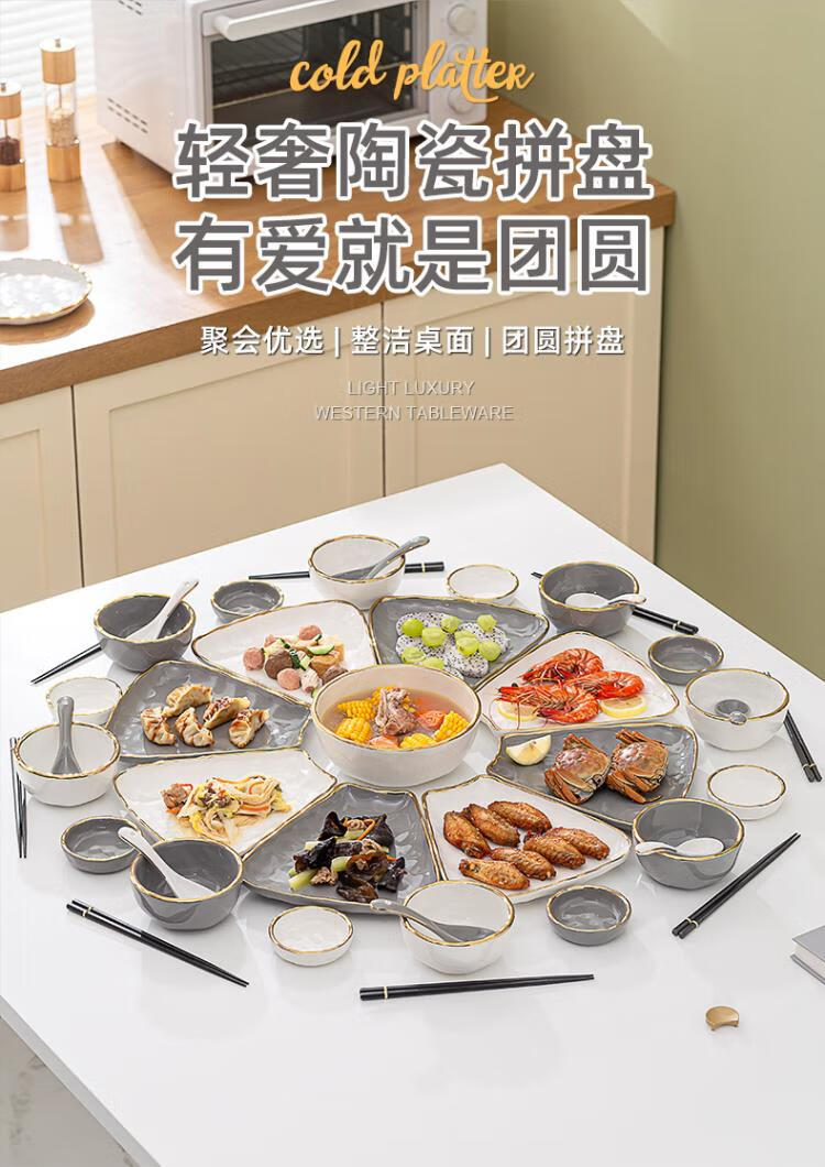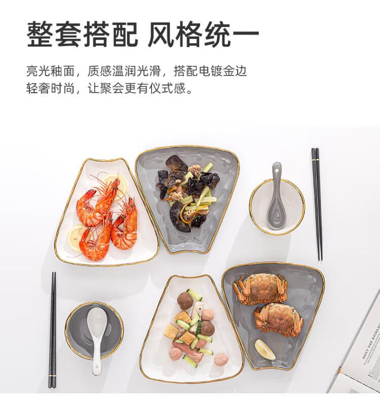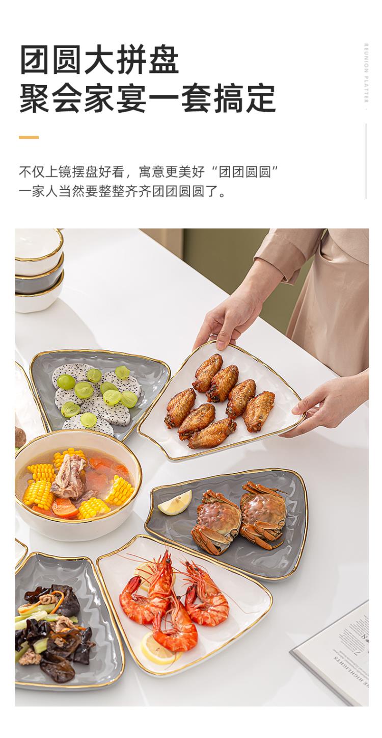 英格丽(INGRI)陶瓷拼盘餐具组合套装家用圆桌团圆家庭聚餐菜盘子碗乔迁新居送礼 白金汤碗9件套