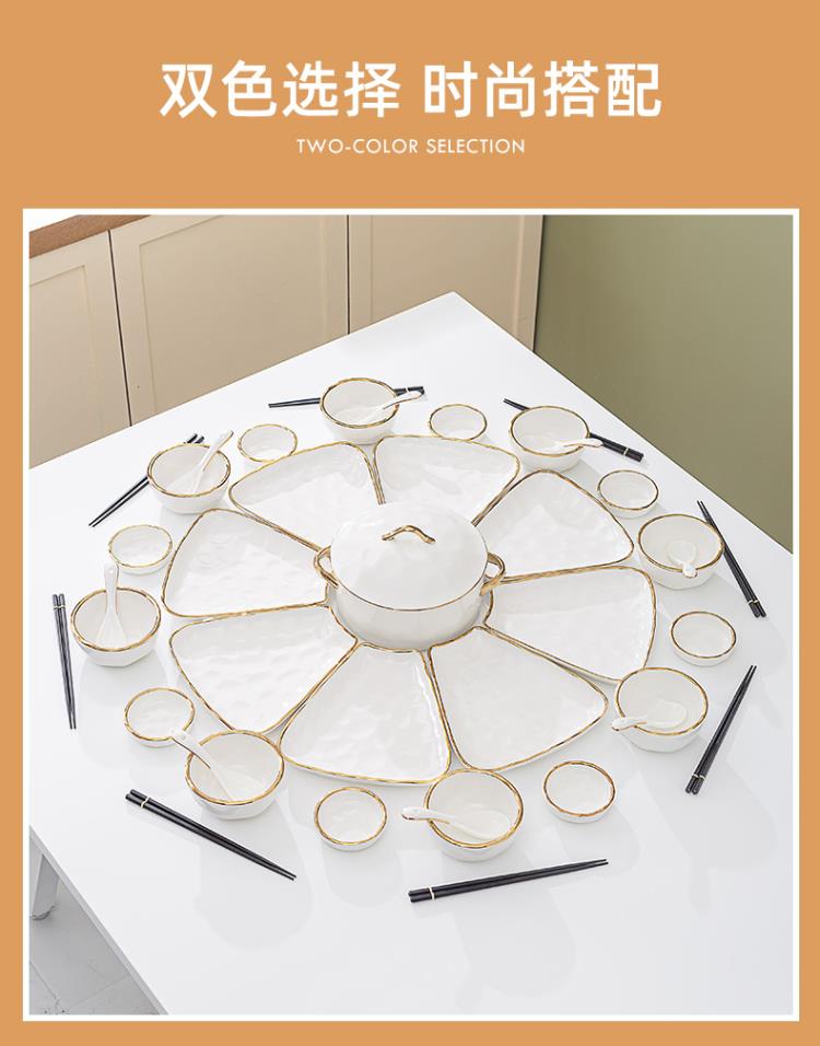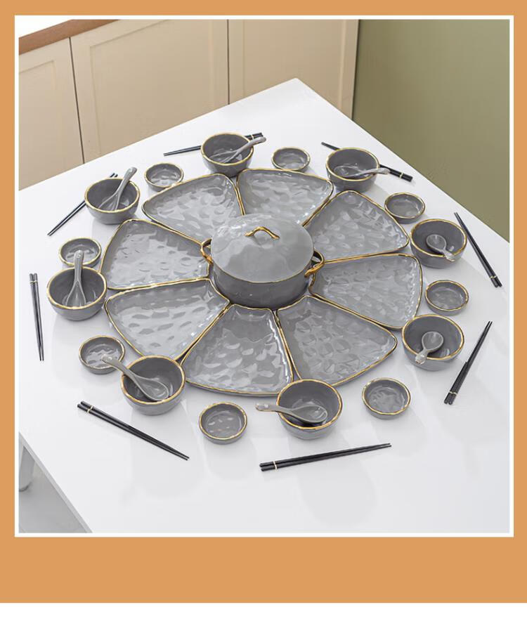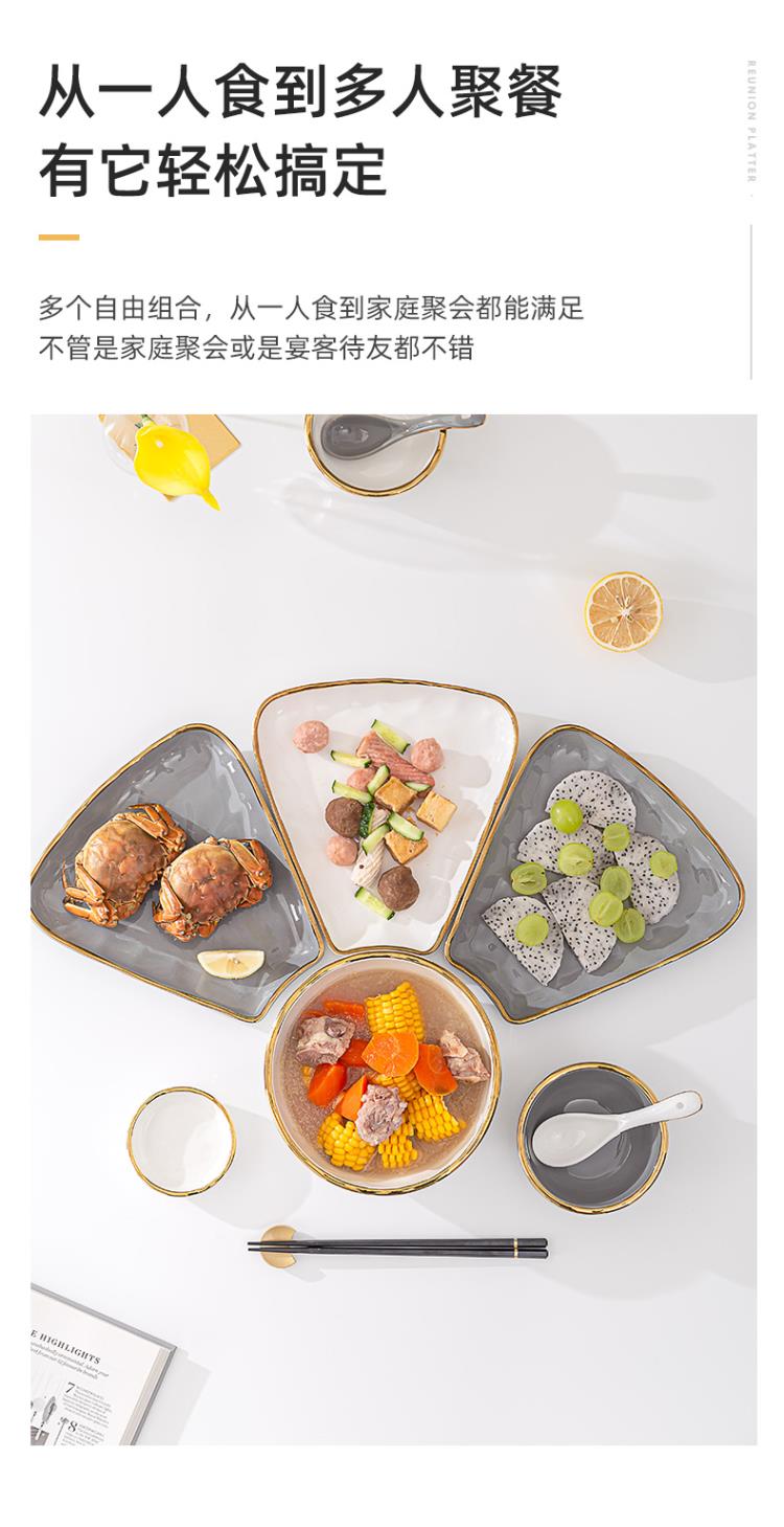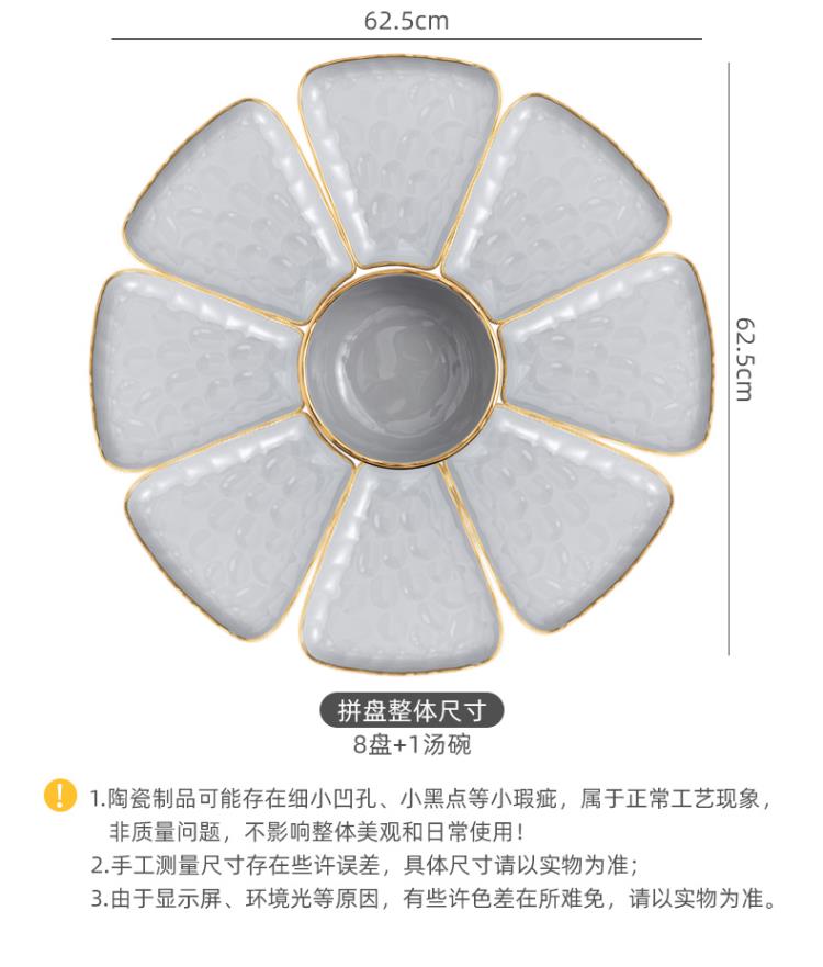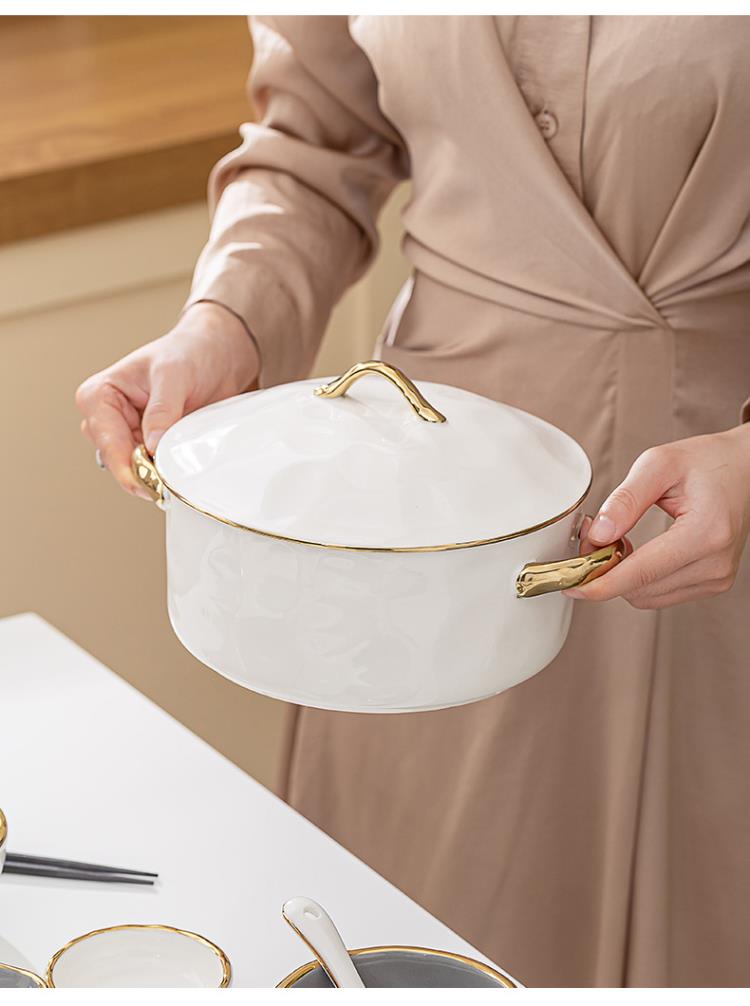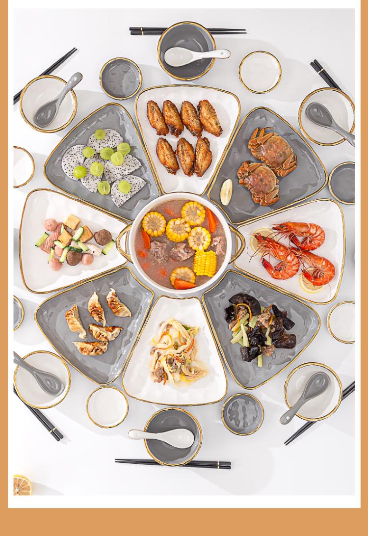 英格丽(INGRI)陶瓷拼盘餐具组合套装家用圆桌团圆家庭聚餐菜盘子碗乔迁新居送礼 白金汤碗9件套