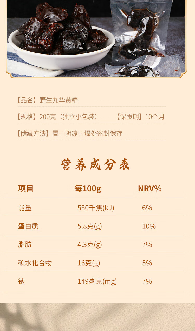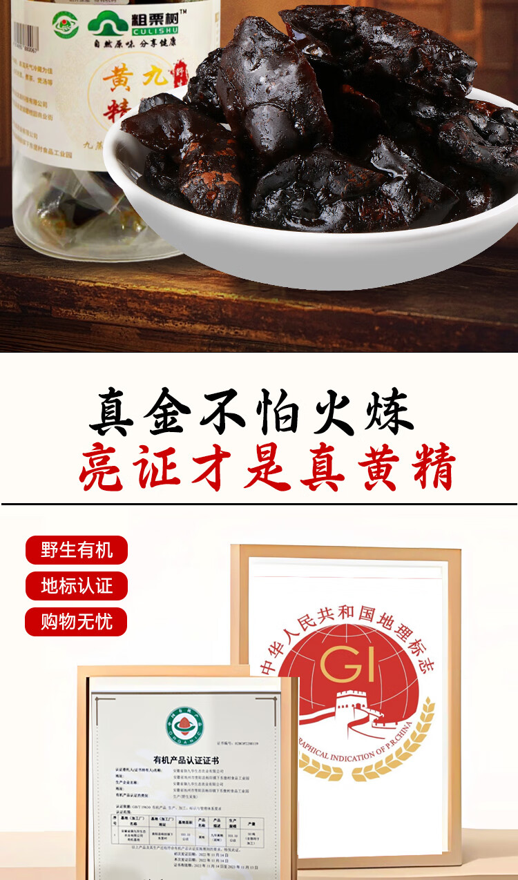 粗栗树【野生有机认证】九华黄精九蒸九晒野生黄精即食中秋礼品源头直发 200g*1罐体验装