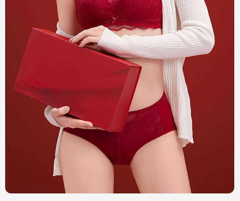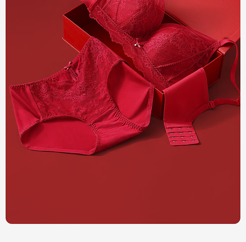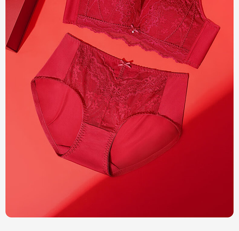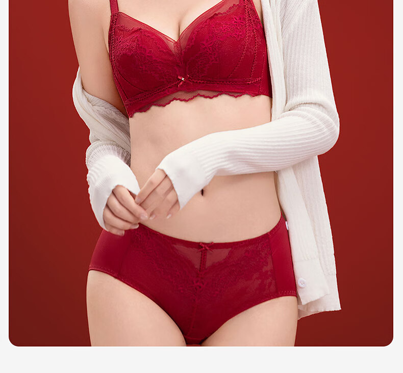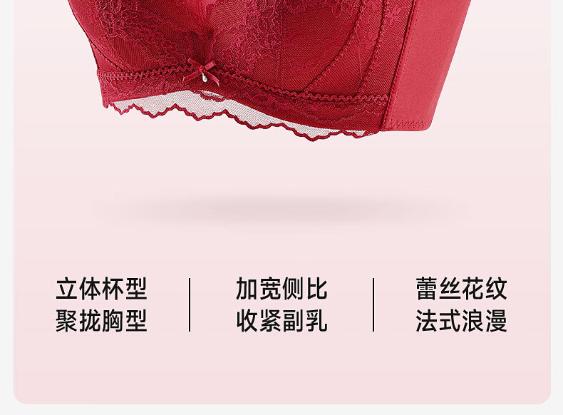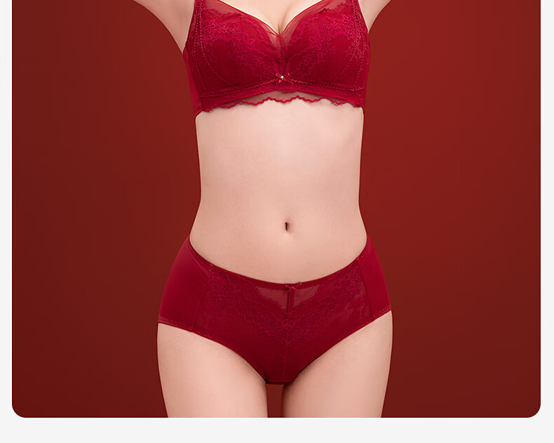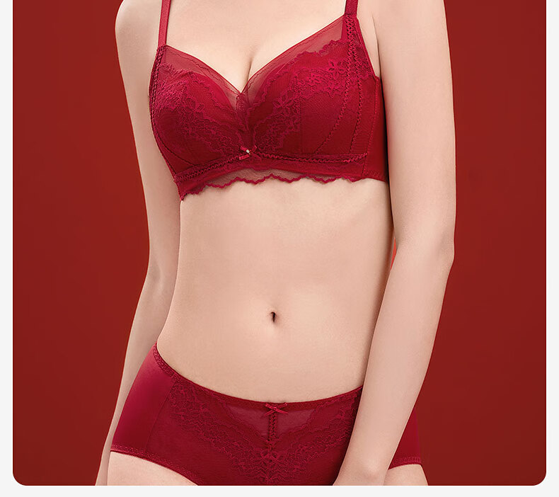 都市丽人本命年蕾丝内衣套装新款马年大红色小胸法式刺绣内裤女结婚送礼 浆果红 75B 34