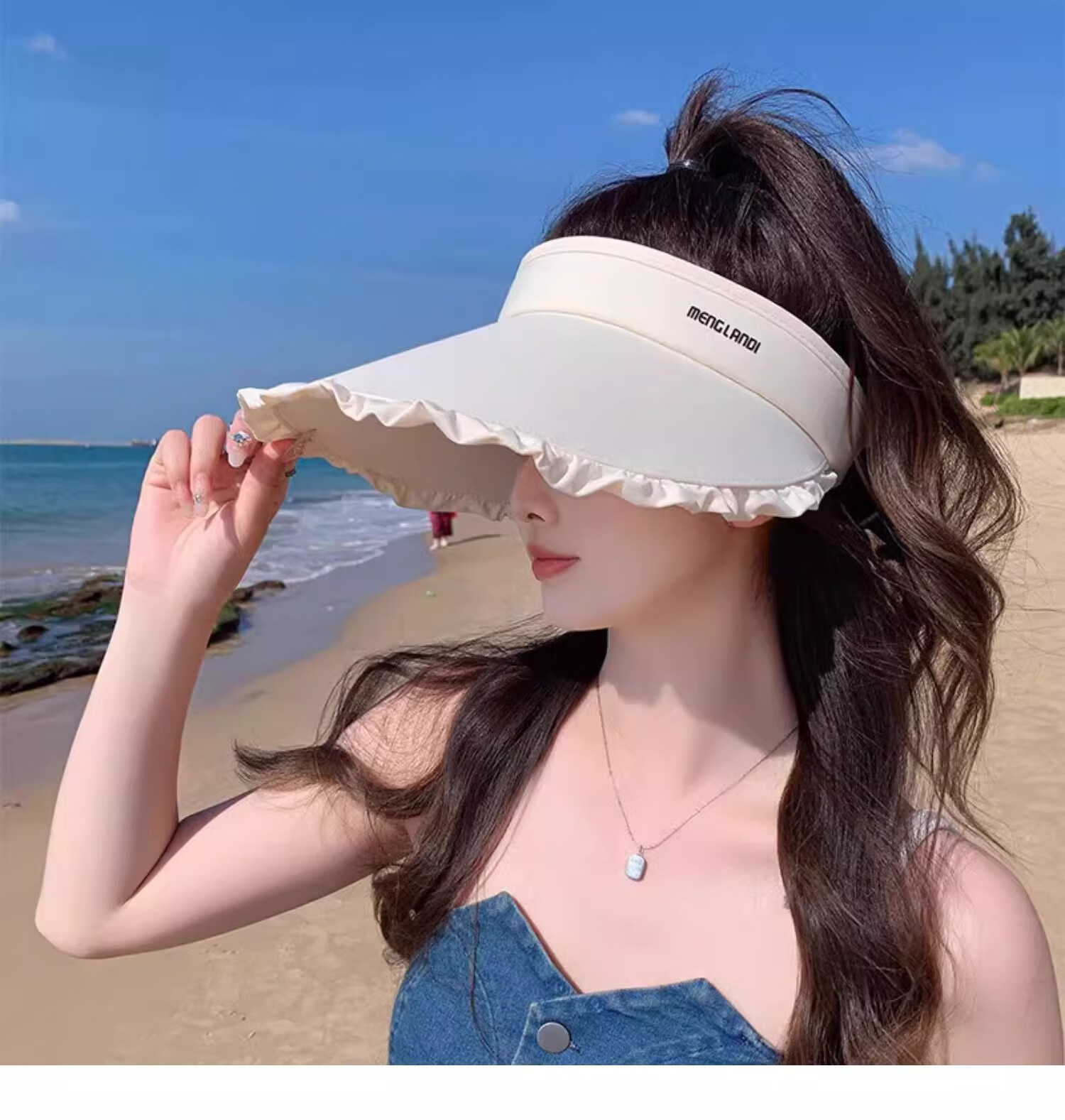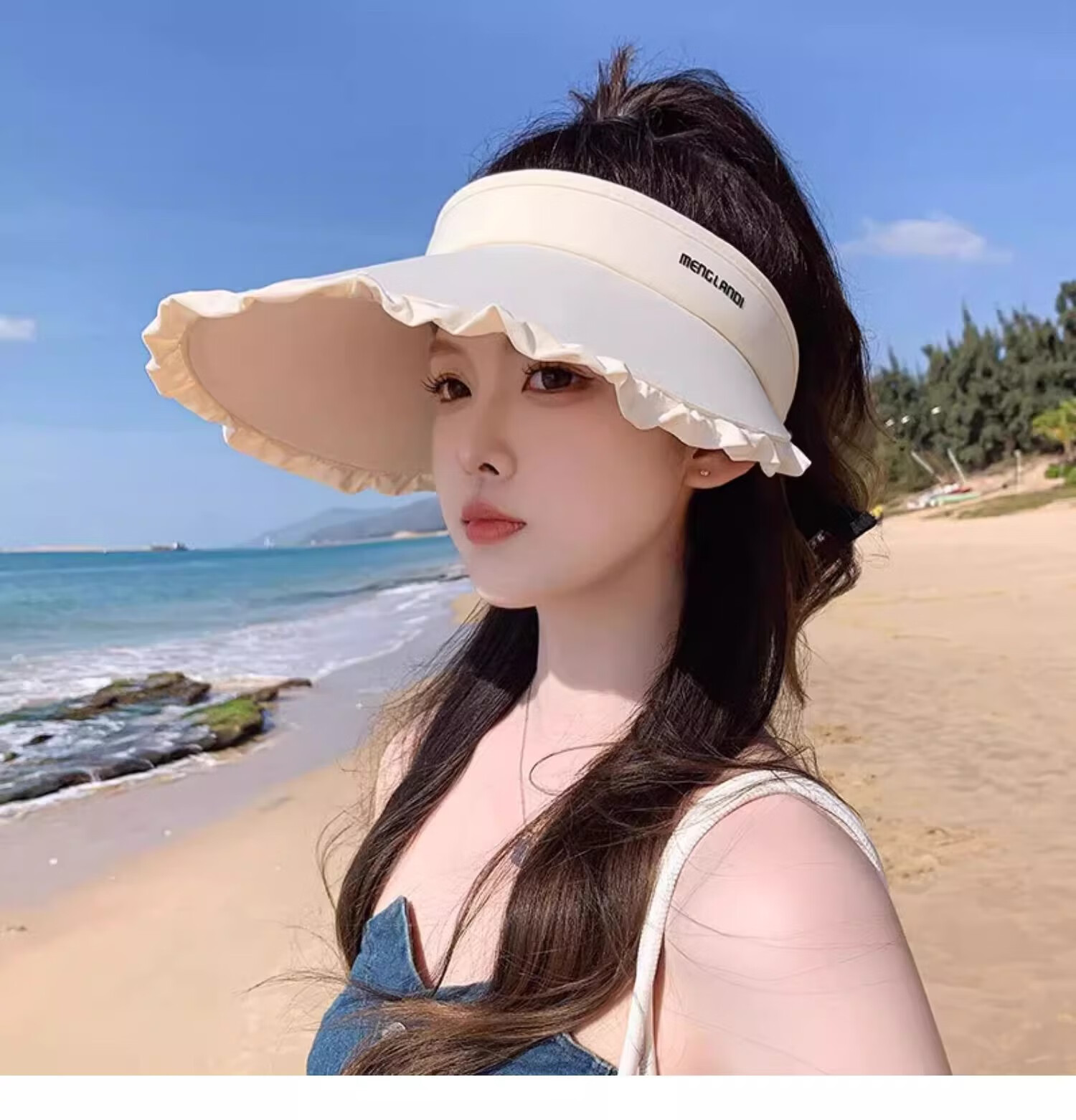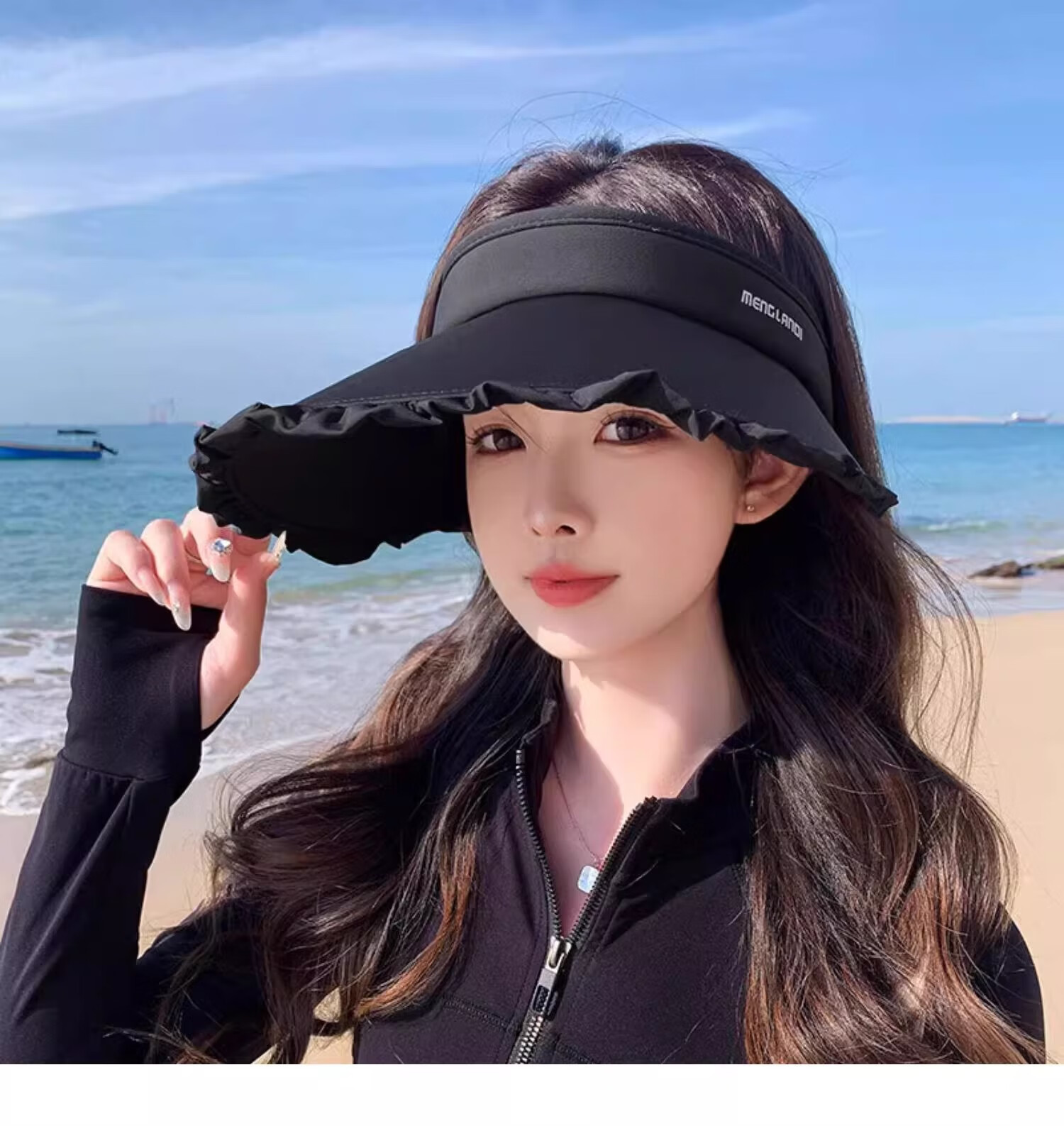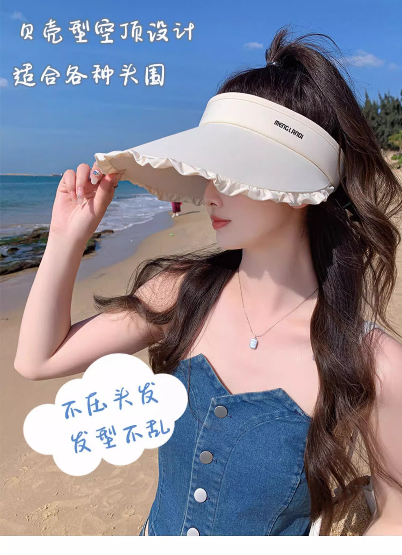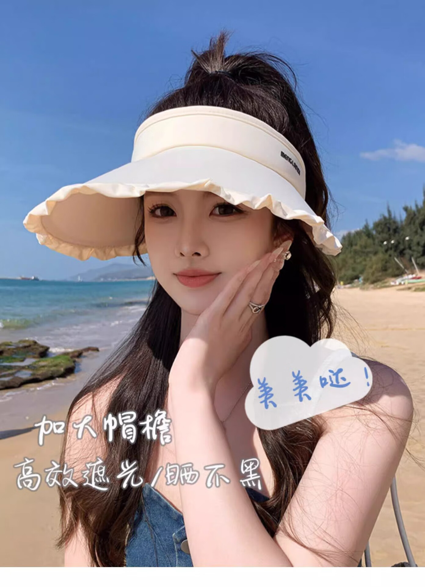 【精选直发】新款防晒帽女士夏天骑车运动冰丝空顶遮阳帽大檐太阳 粉色【可折叠】 (1个装) 均码