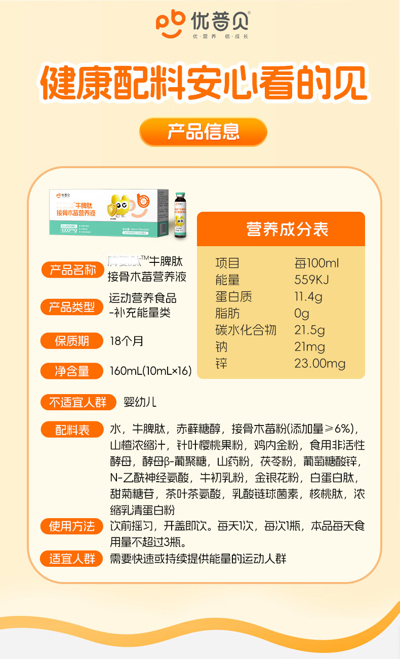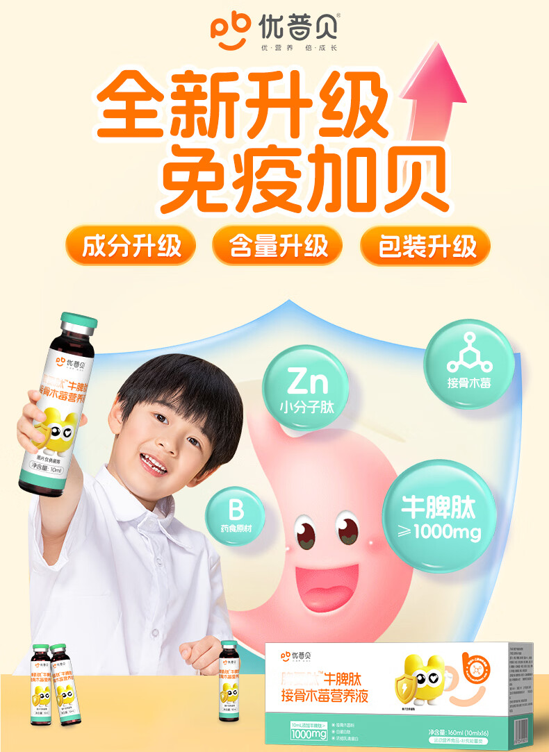 优普贝脾氨肽牛脾肽儿童口服液增强免疫力接骨木莓小分子多肽营养调理 【增强抵抗力】 16支*1盒 体验装【没用可退】
