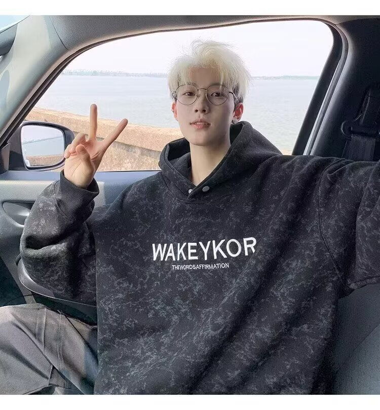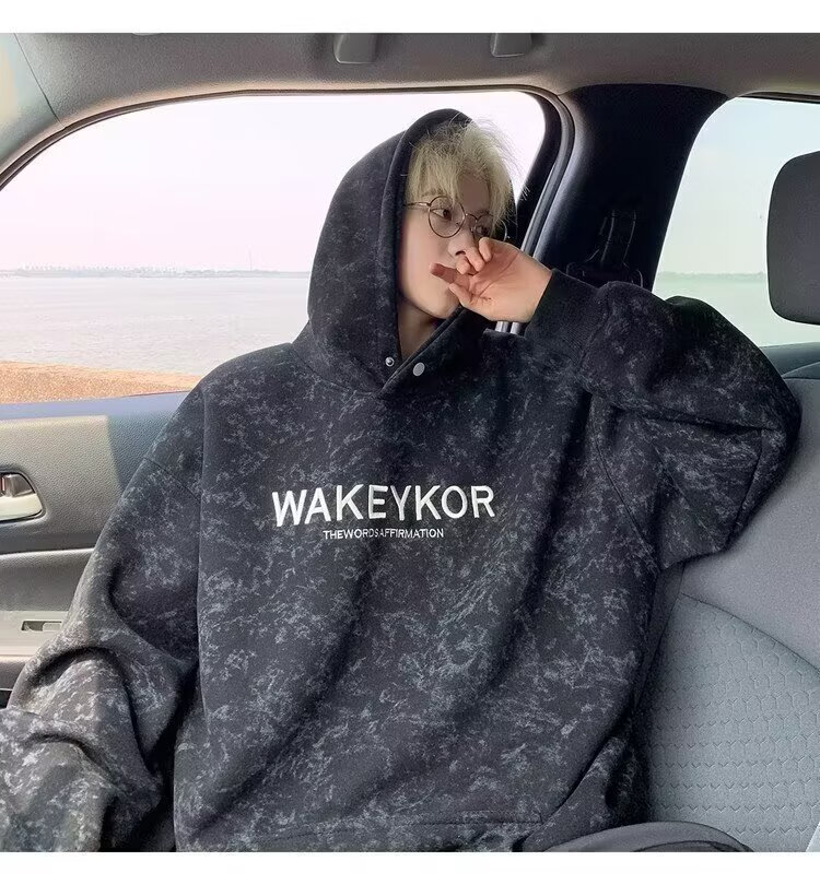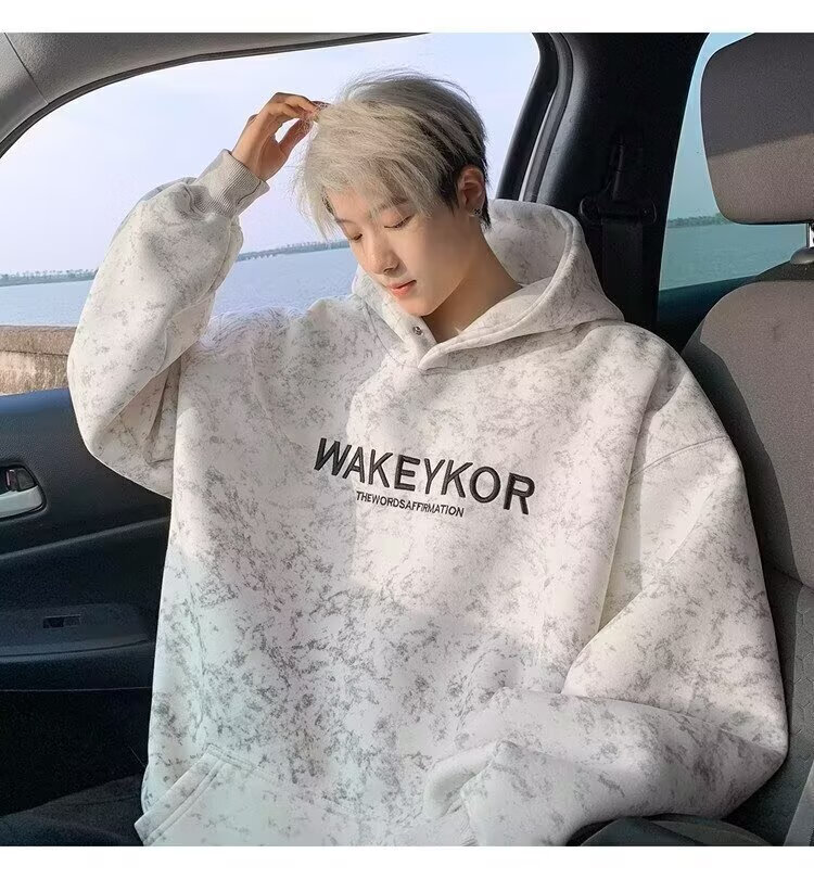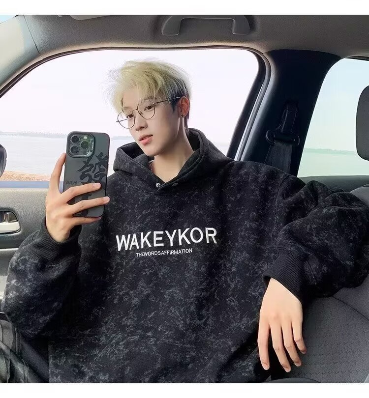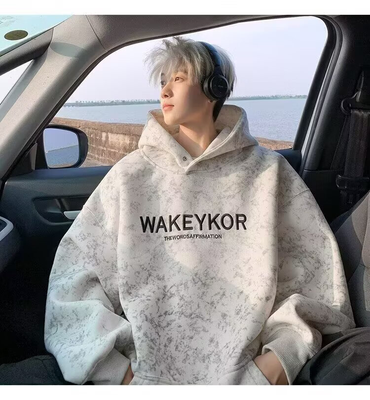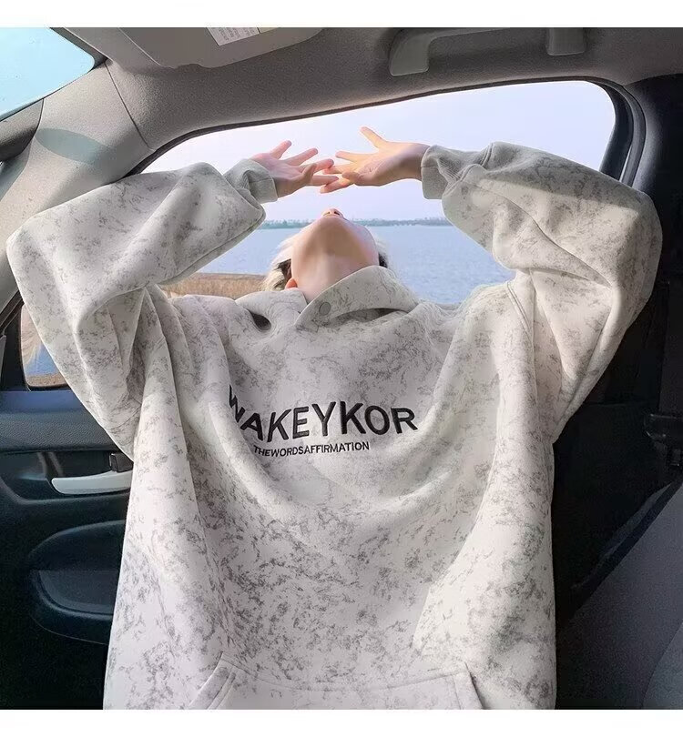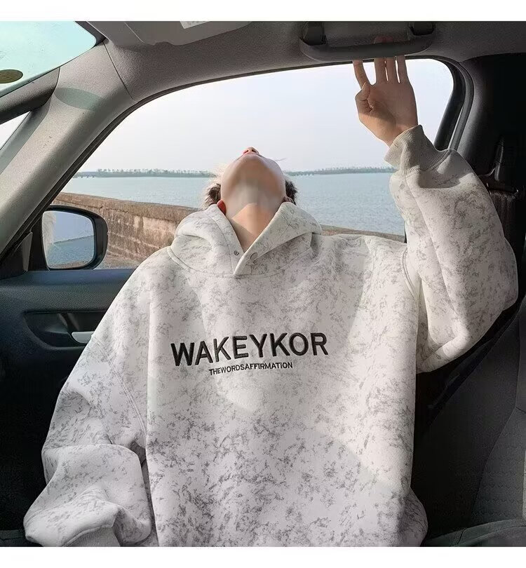 POUM美式高街卫衣男士秋冬潮牌休闲加绒男装上衣2025新款情侣帽衫外套 JCF-H975杏色 加绒 M