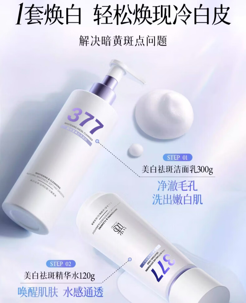 谜草集377护肤品套装祛斑美白提亮去黄水乳套装精华水次抛洗面奶 377美白洁面慕斯500ml