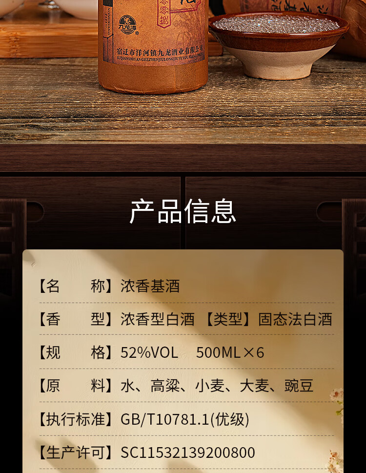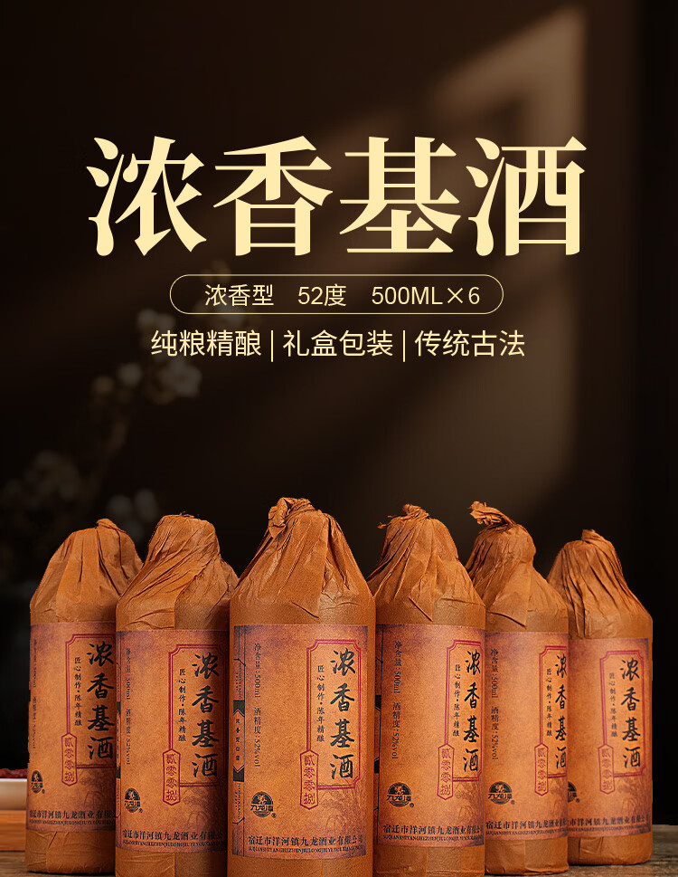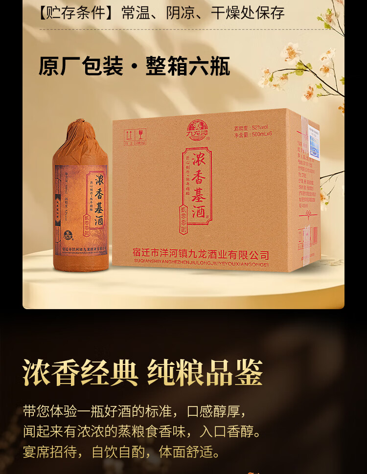 九龙潭浓香基酒浓香型52度纯粮固态发酵白酒500ml*6瓶 52度 500mL 6瓶 整箱6瓶装