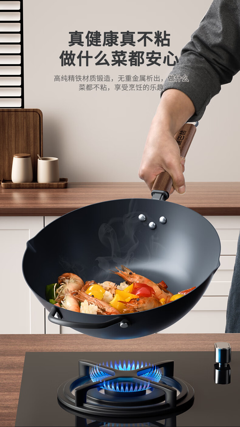 谭铁匠章丘手工铁锅官方旗舰正品熟铁炒菜锅家用无涂层不易粘老式炒锅 古法锻打宗师黑锅【5-9人用】(送五重好礼) 38cm