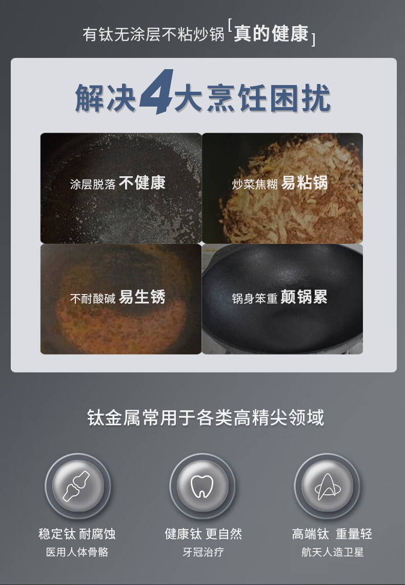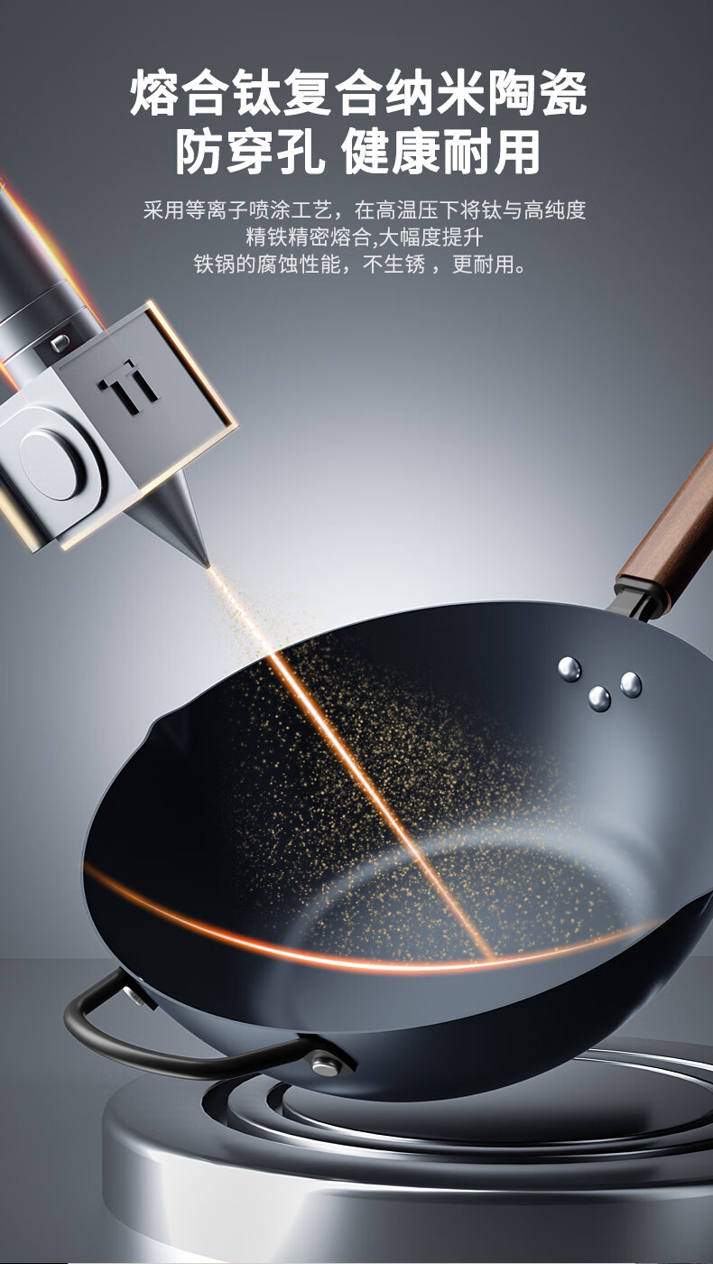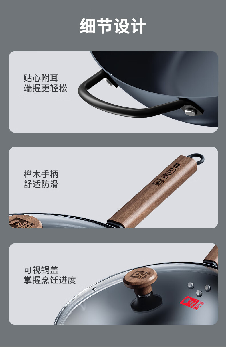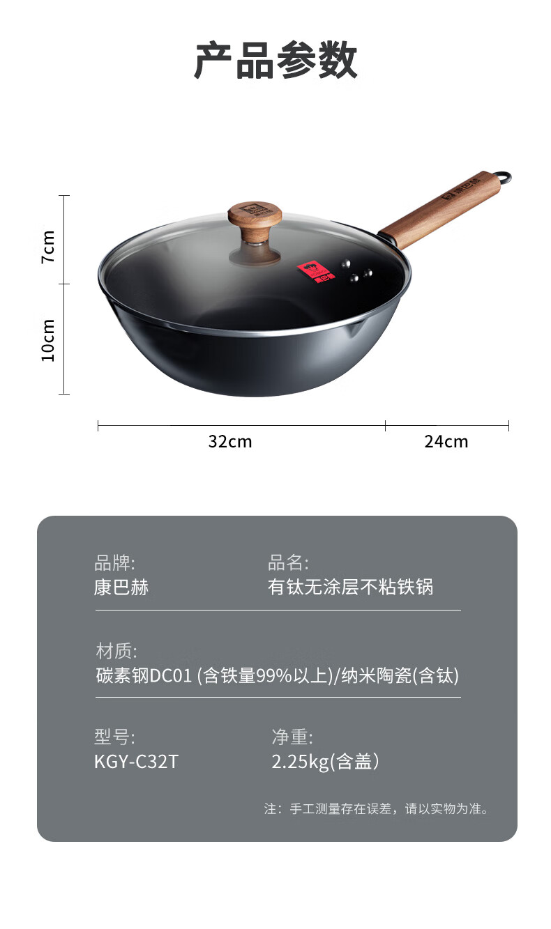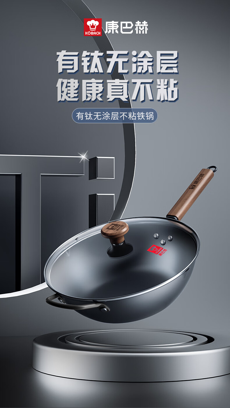 康巴赫有钛无涂层炒锅家用平底炒菜锅含钛铁锅32cm 平底钛铁锅 32cm