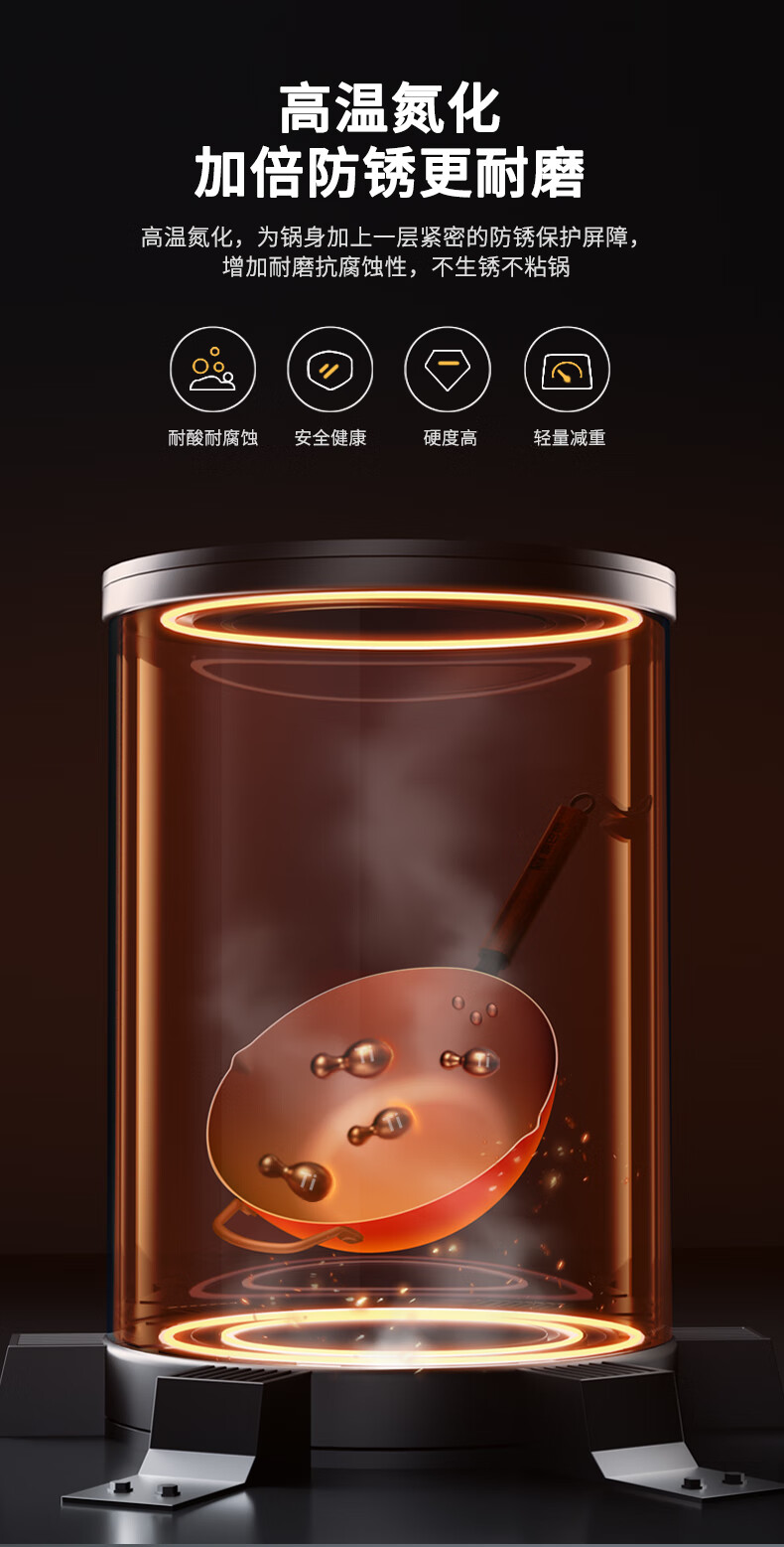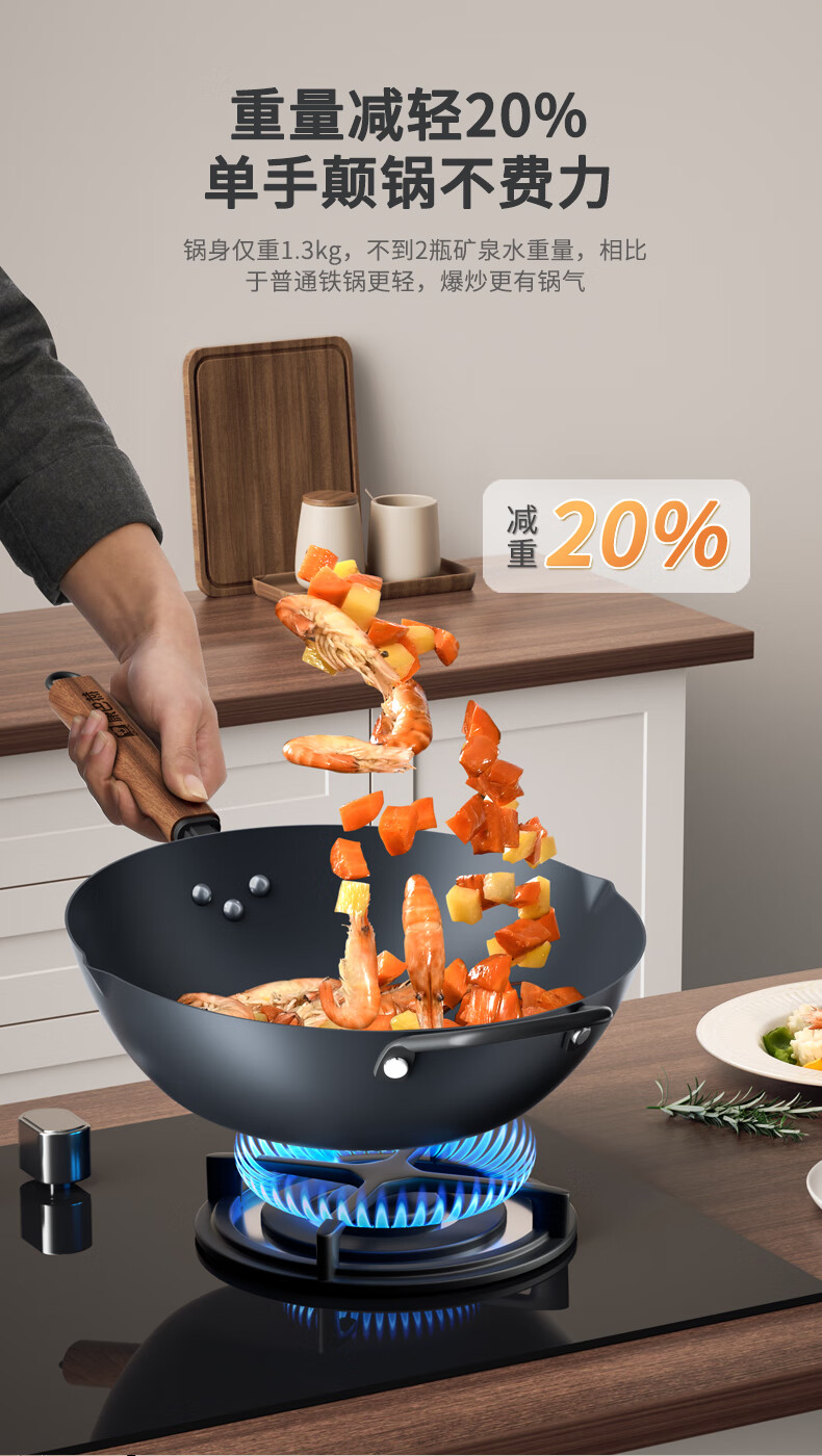 谭铁匠正宗章丘手工铁锅炒菜锅家用炒锅无涂层不易粘锅熟铁锅燃气灶用锅 大师镜面款【六万八千锤】2-4人使用 32cm