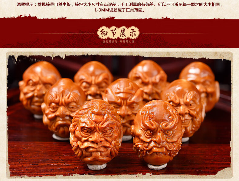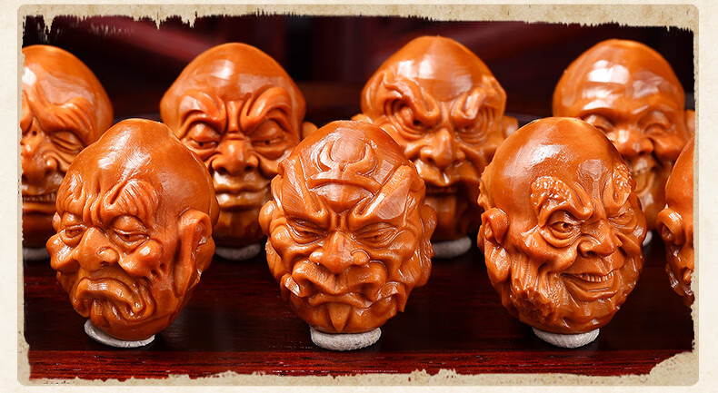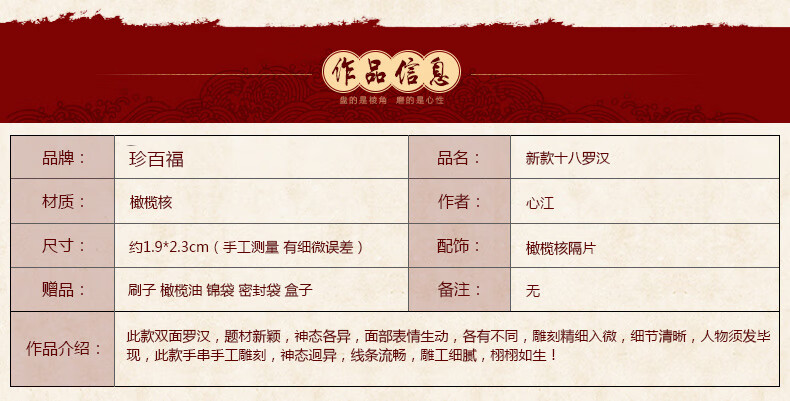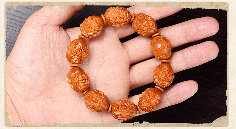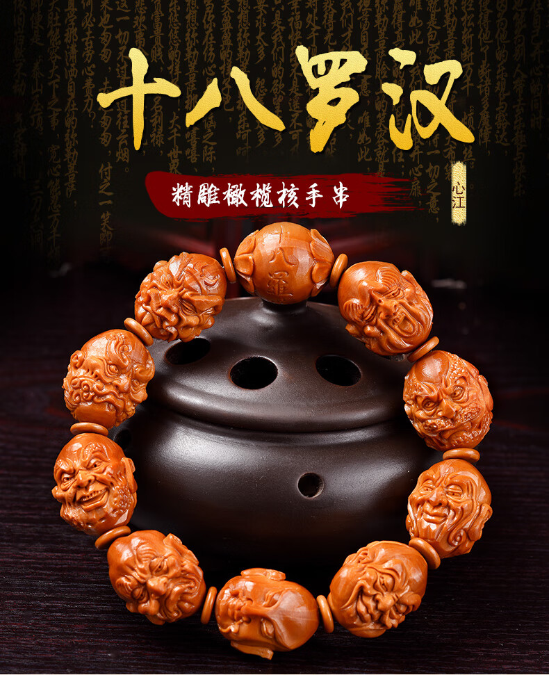 珍百福橄榄核手串 十八罗汉 文玩橄榄核雕手串男 心江手工刻 1.9*2.3cm