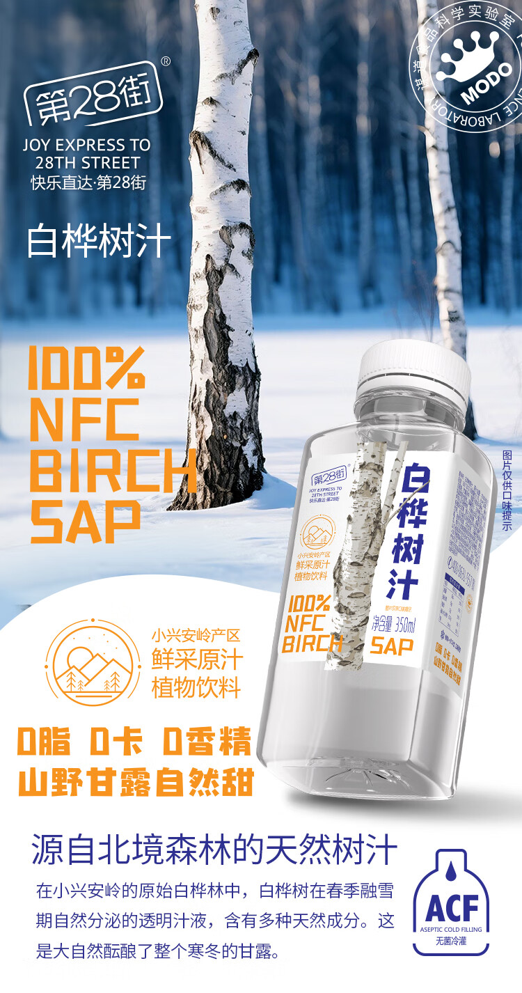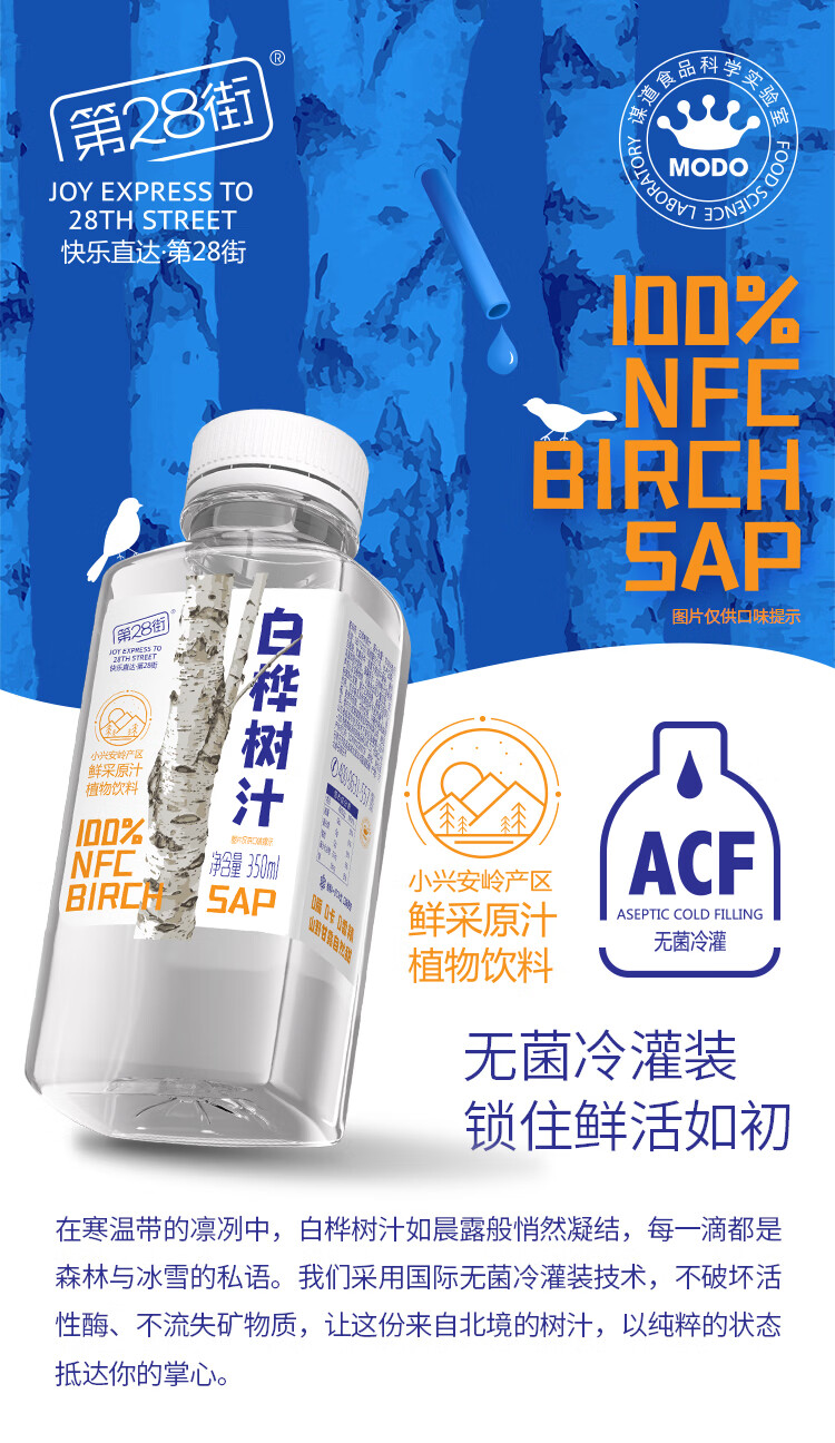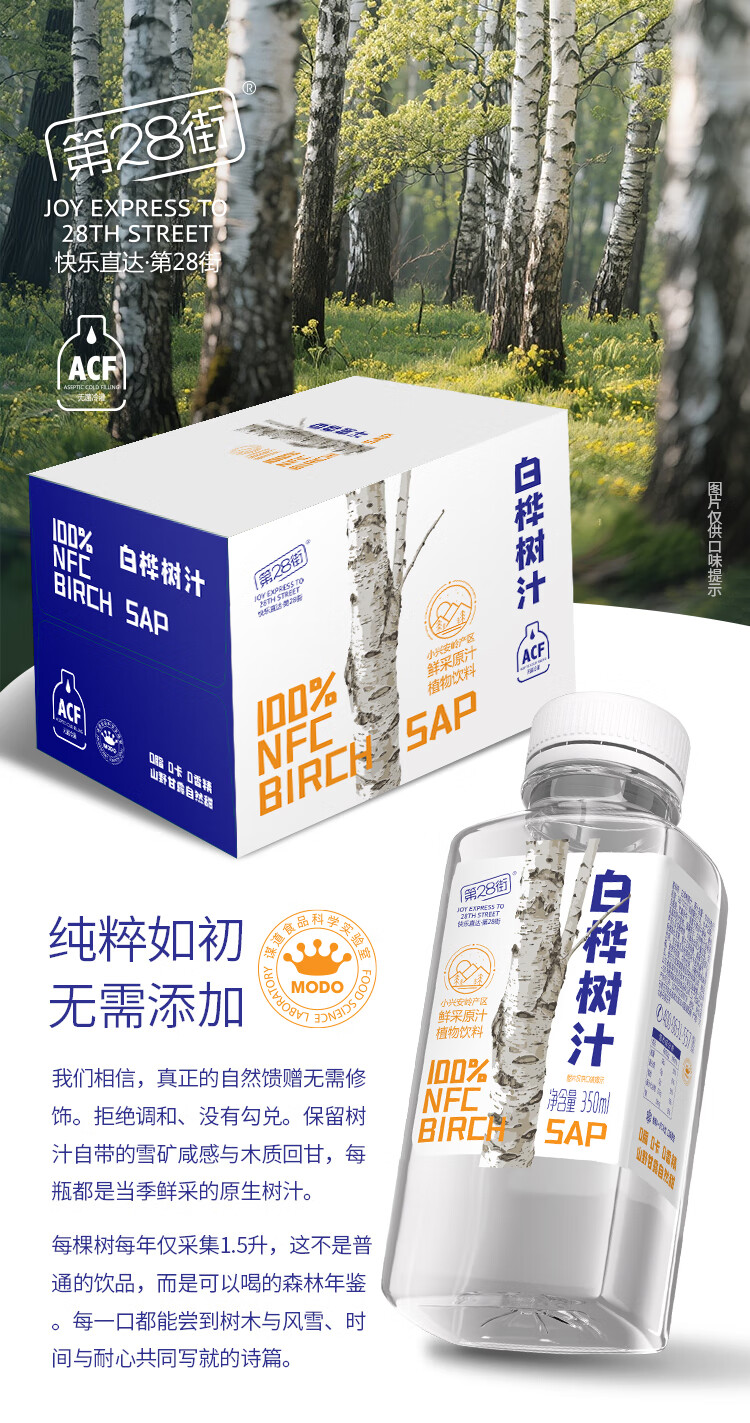 第28街100%白桦树汁NFC原汁原液天然小兴安岭植物饮料0卡脂肪无糖果蔬汁 100%白桦树汁(尝鲜)6瓶