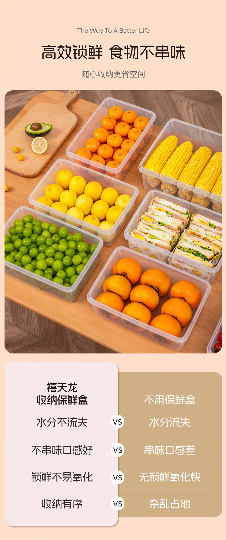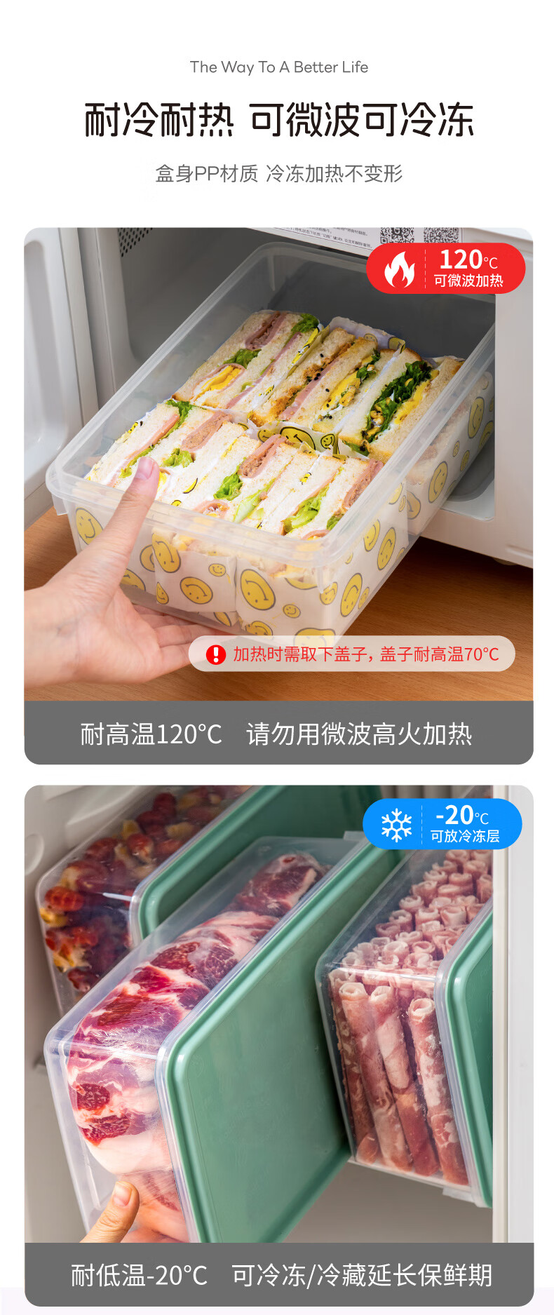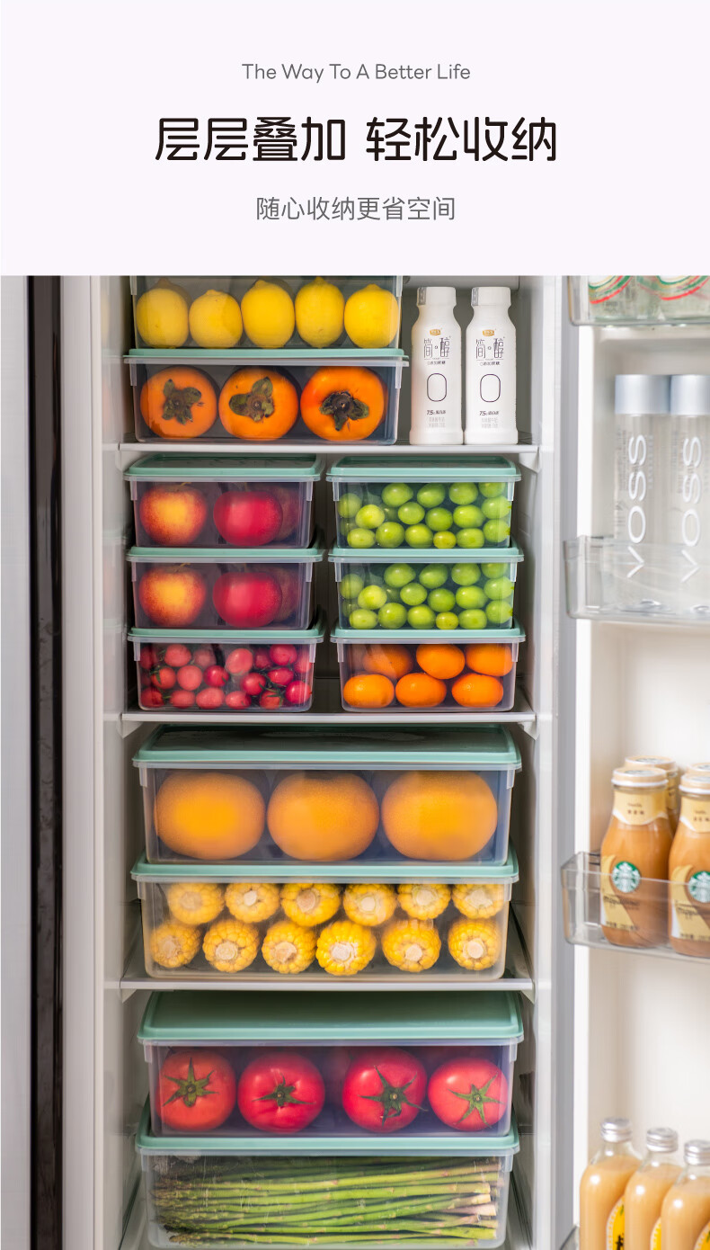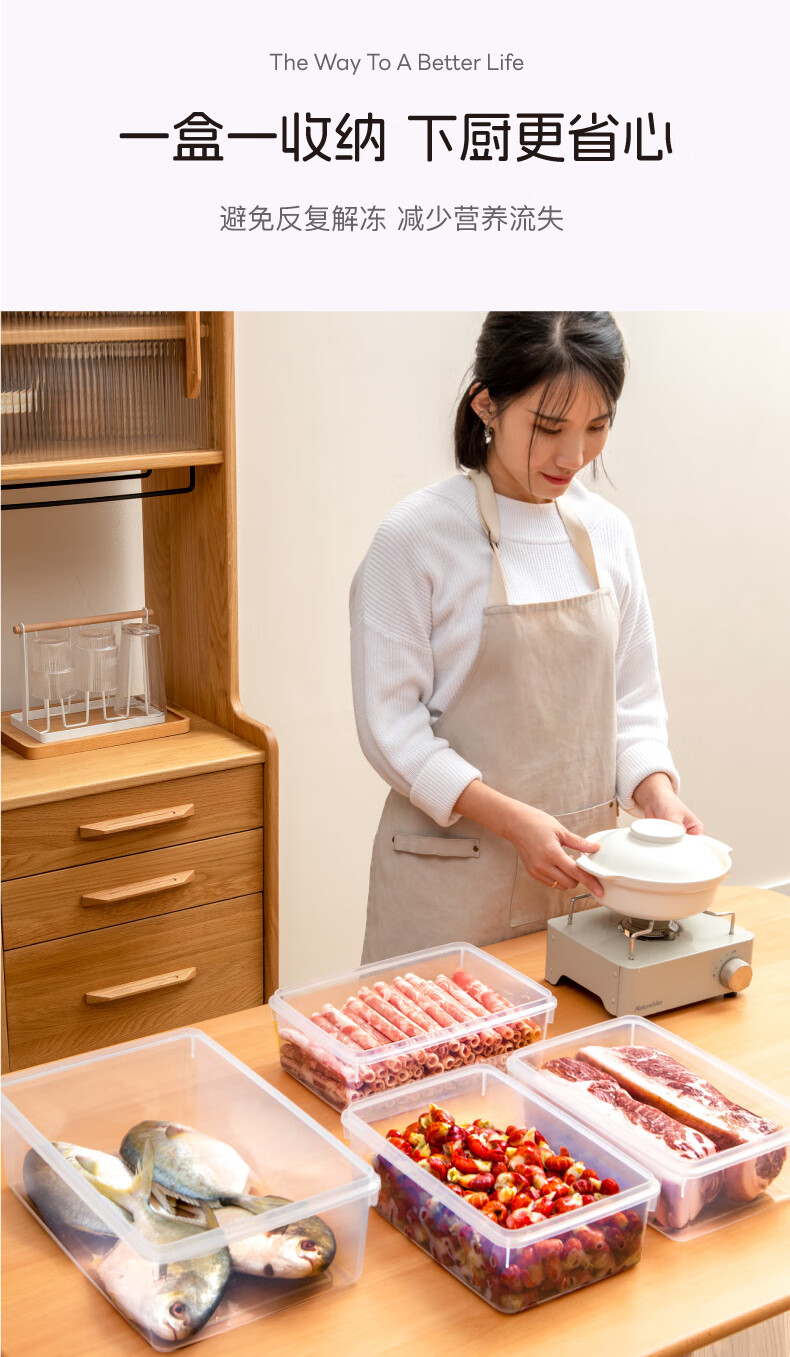 禧天龙冰箱收纳盒保鲜盒食品级密封保鲜冷冻专用厨房水果蔬菜鸡蛋储物盒 4L【食品级材质】2只装