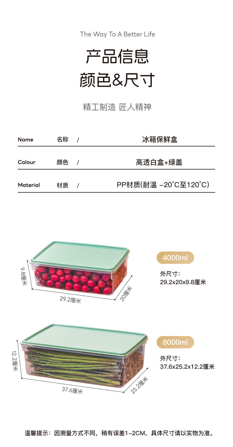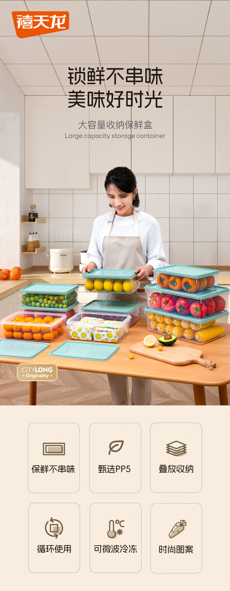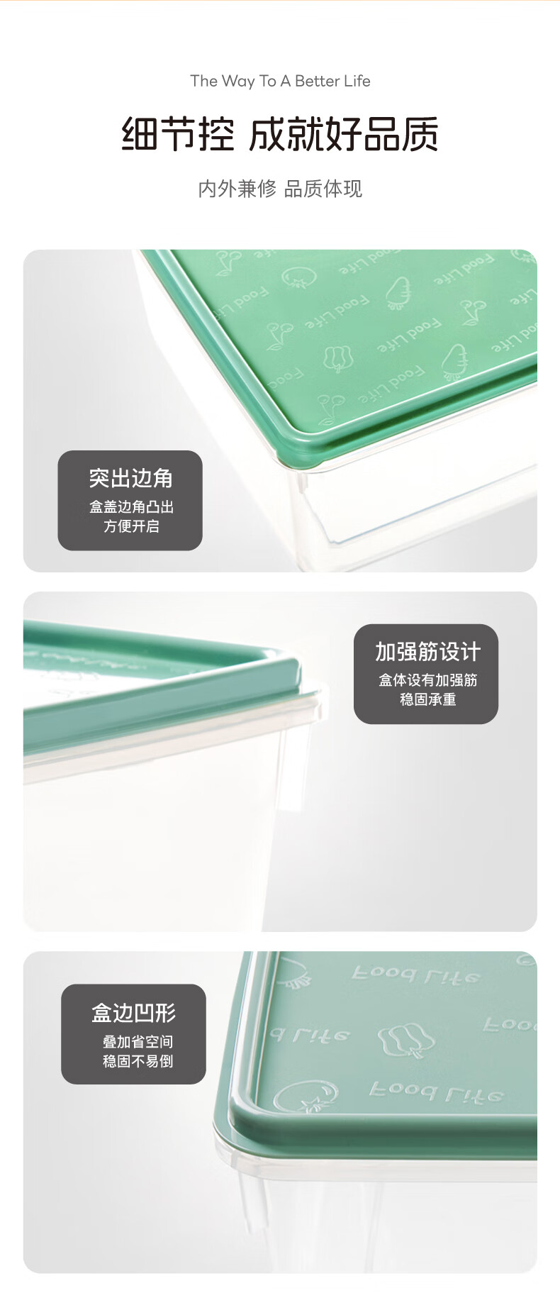 禧天龙冰箱收纳盒保鲜盒食品级密封保鲜冷冻专用厨房水果蔬菜鸡蛋储物盒 4L【食品级材质】2只装