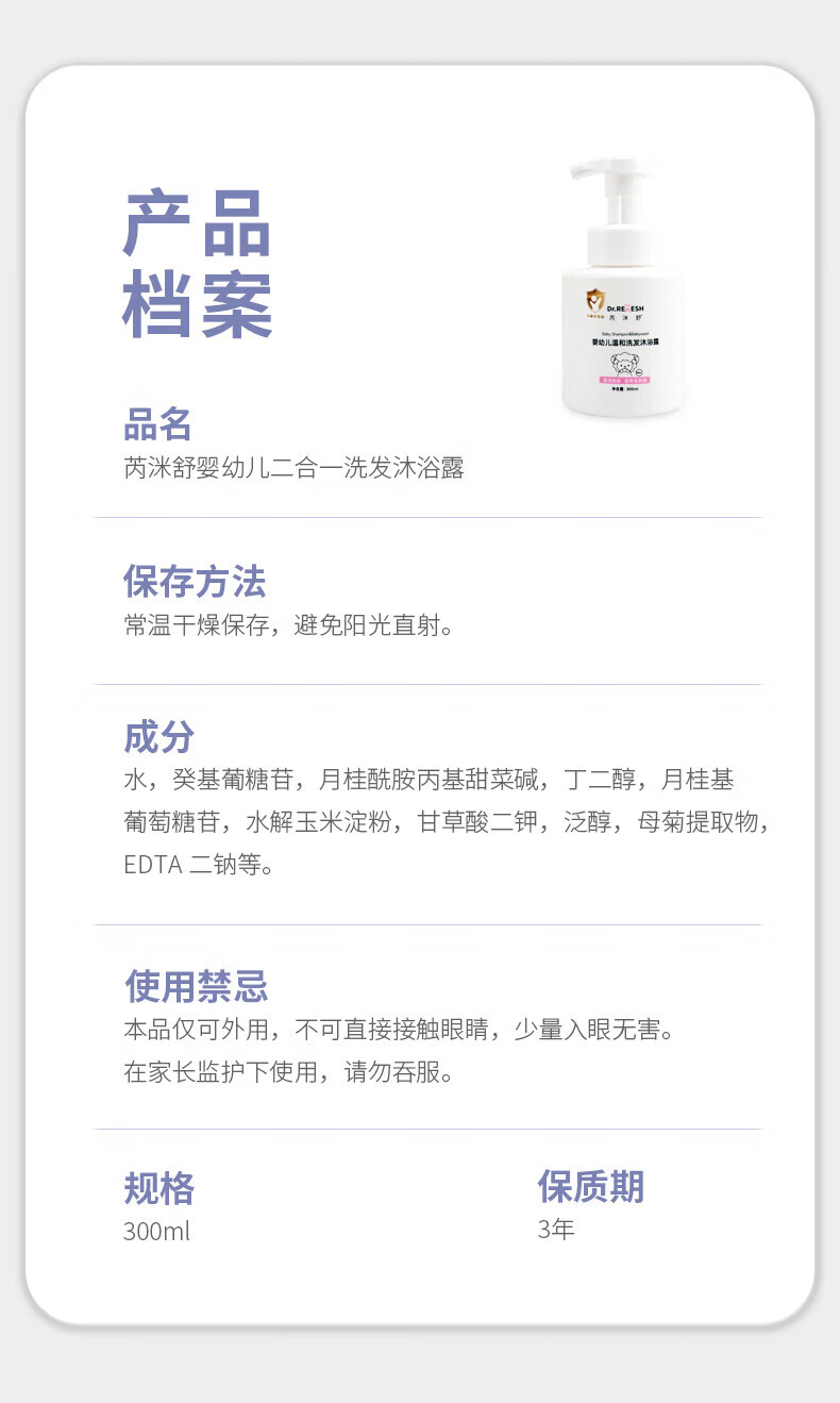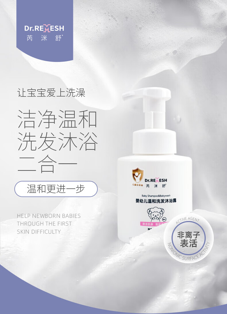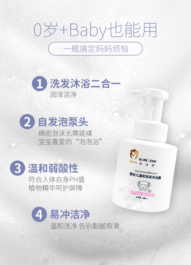 芮洣舒婴幼新生儿童洗发沐浴露泡泡二合一宝宝非离子温和 300ml