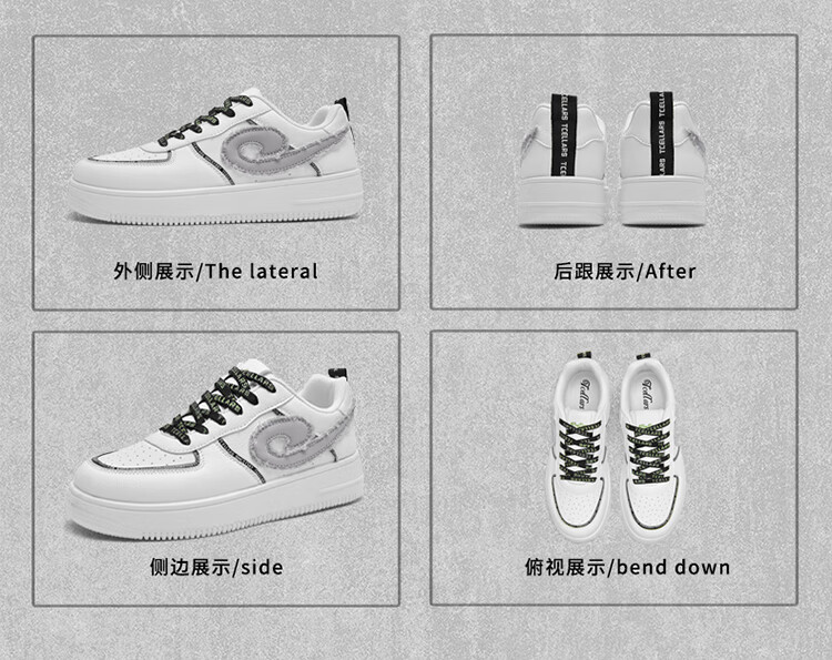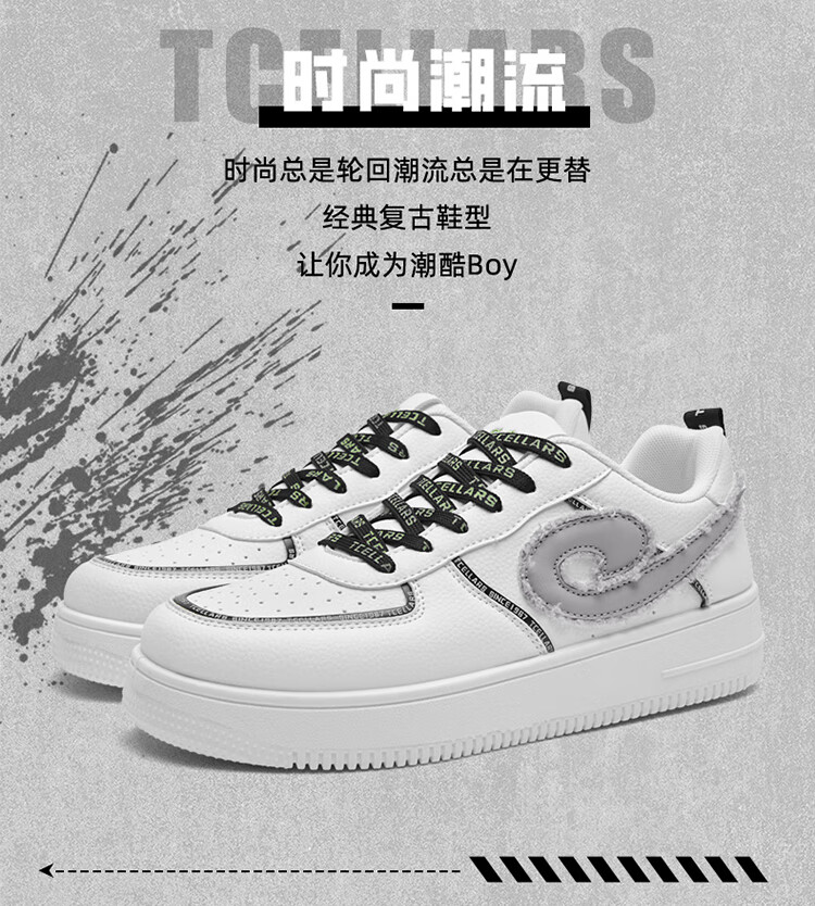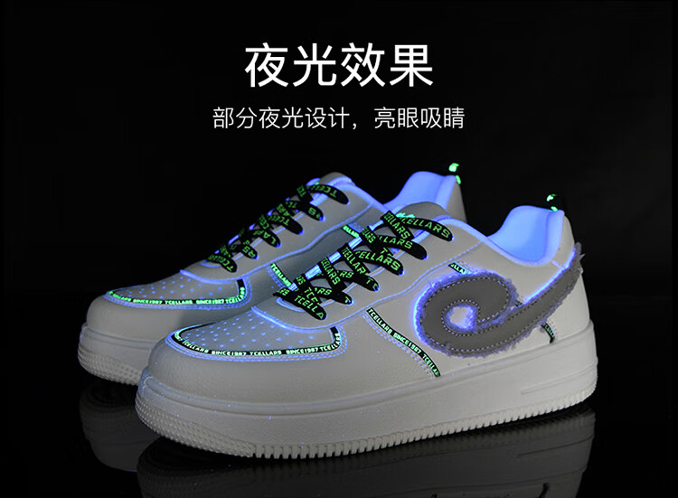 Tcellars板鞋男鞋2026春季新款荧光潮鞋低帮厚底增高运动休闲鞋子男款 影风白 39