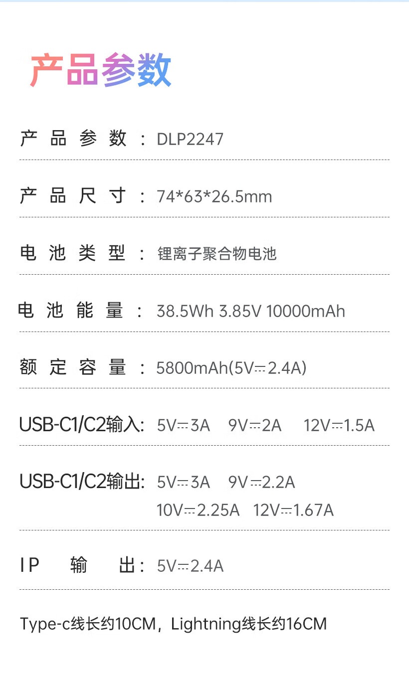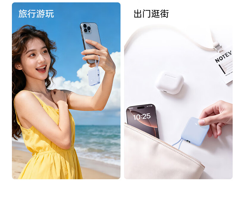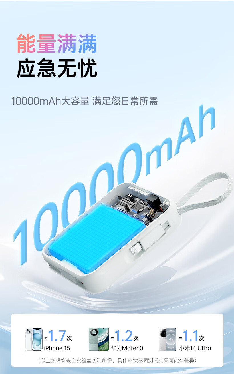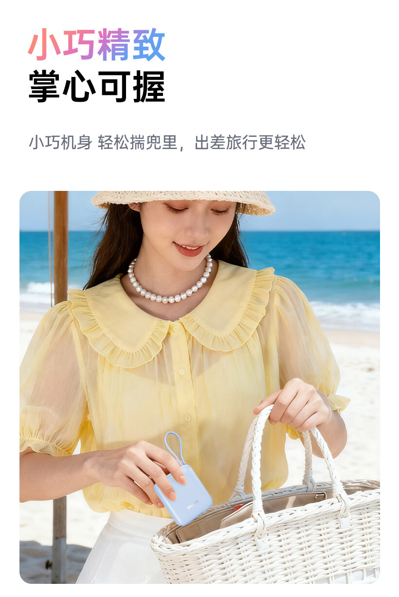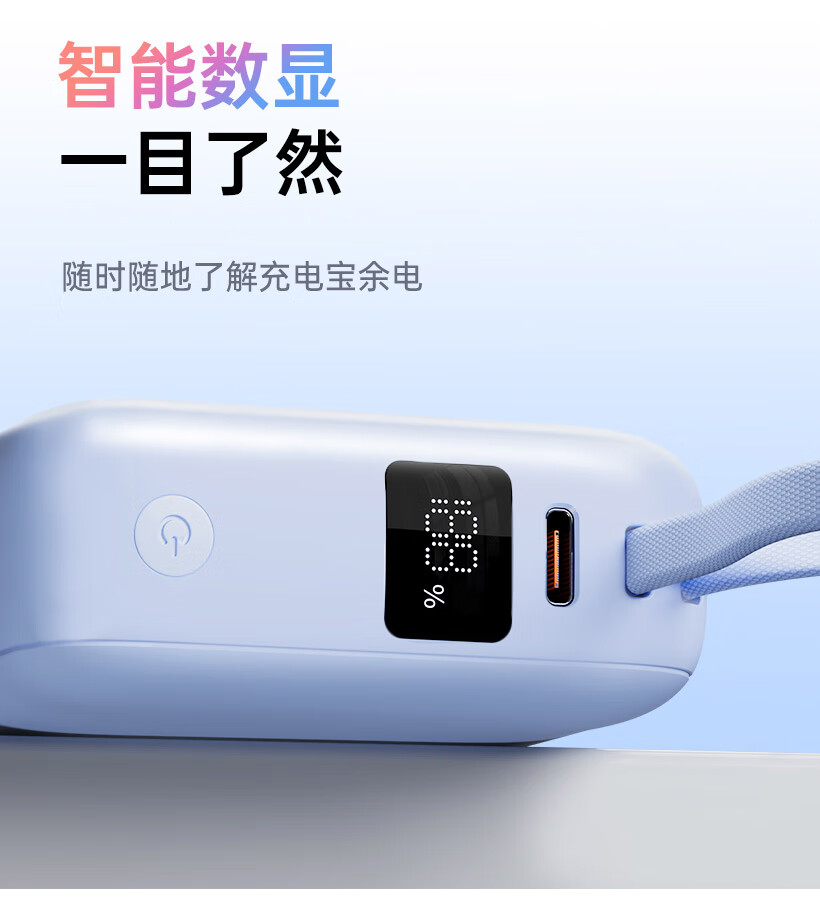 飞利浦3C认证可上飞机充电宝自带线22.5W超级快充迷你小巧便携10000毫安时移动电源适用苹果16 17华为