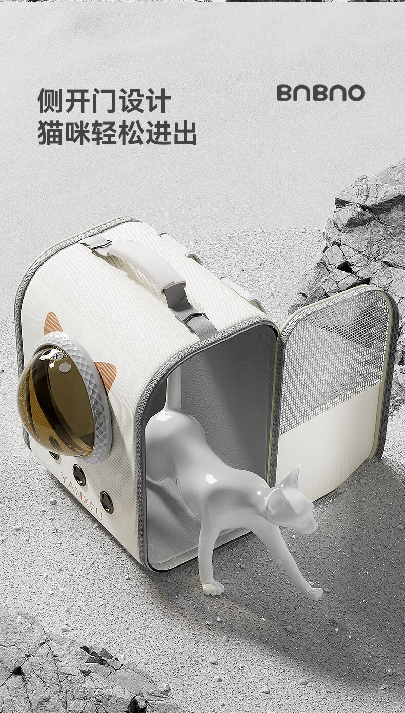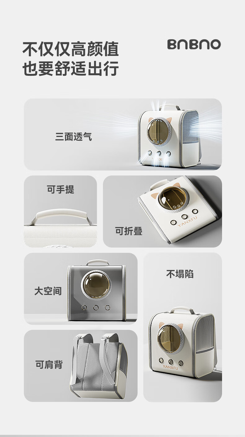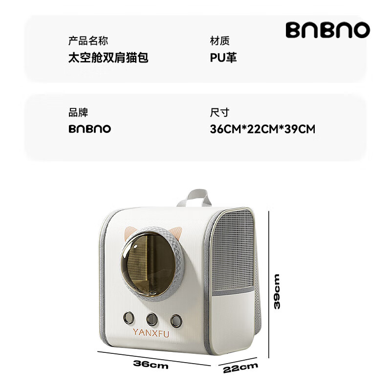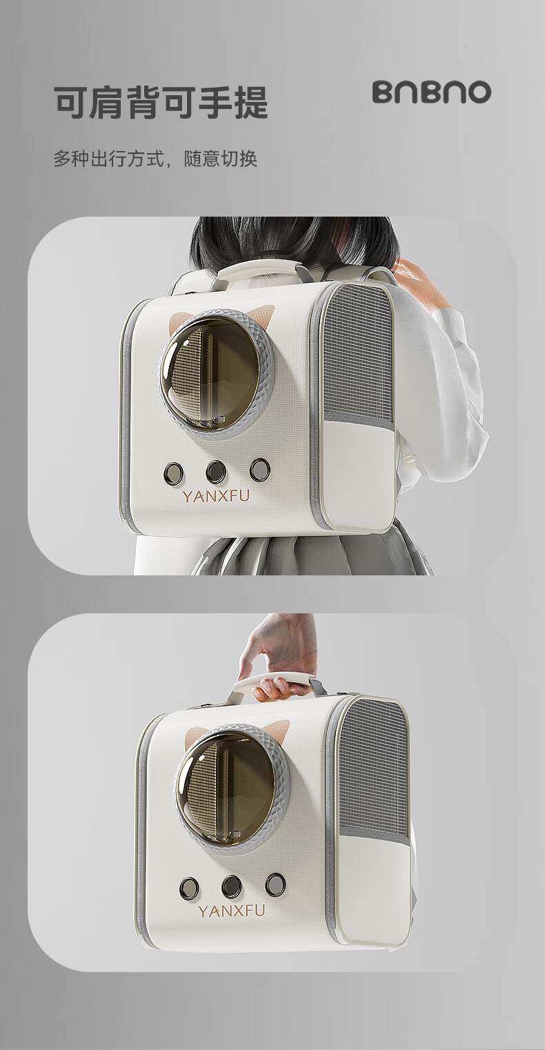 BNBNO猫包大容量宠物便捷外出透气太空舱双肩手提布偶狗背包幼犬外出包