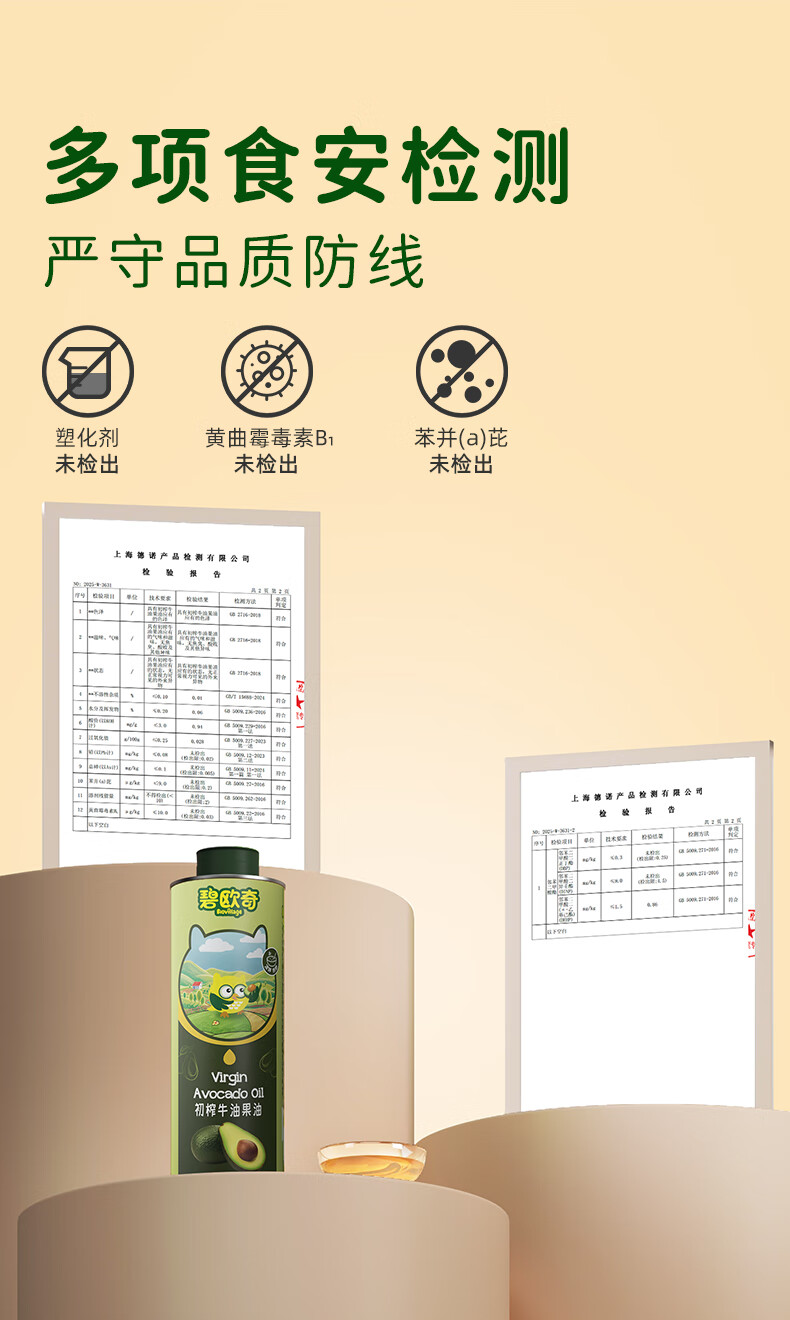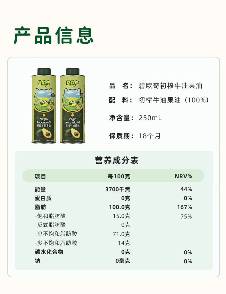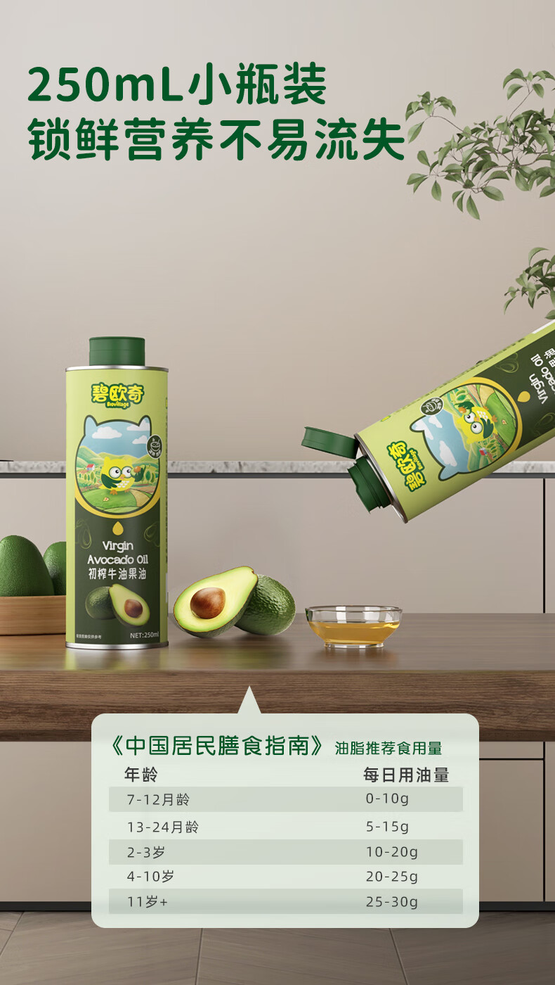 碧欧奇初榨牛油果油 宝宝辅食用油凉拌热炒佐餐送婴儿辅食食谱 牛油果油250ml