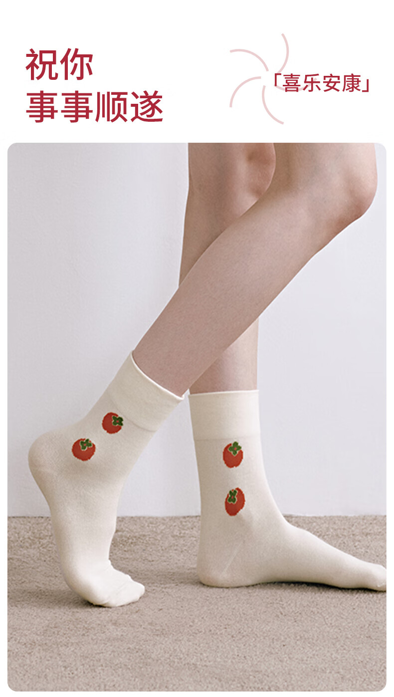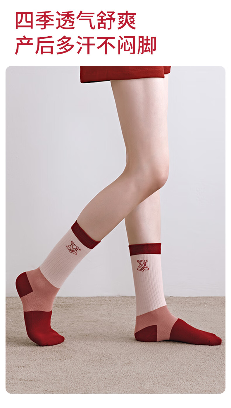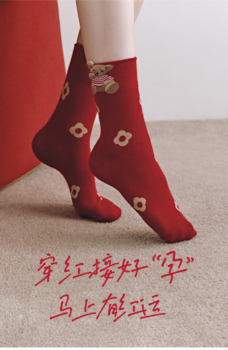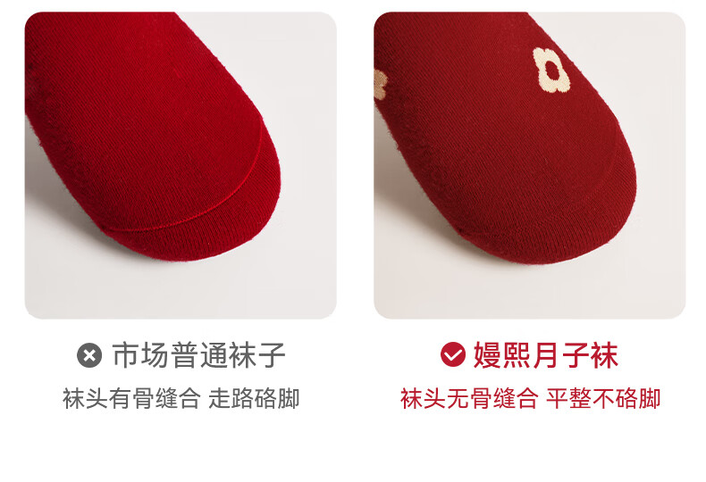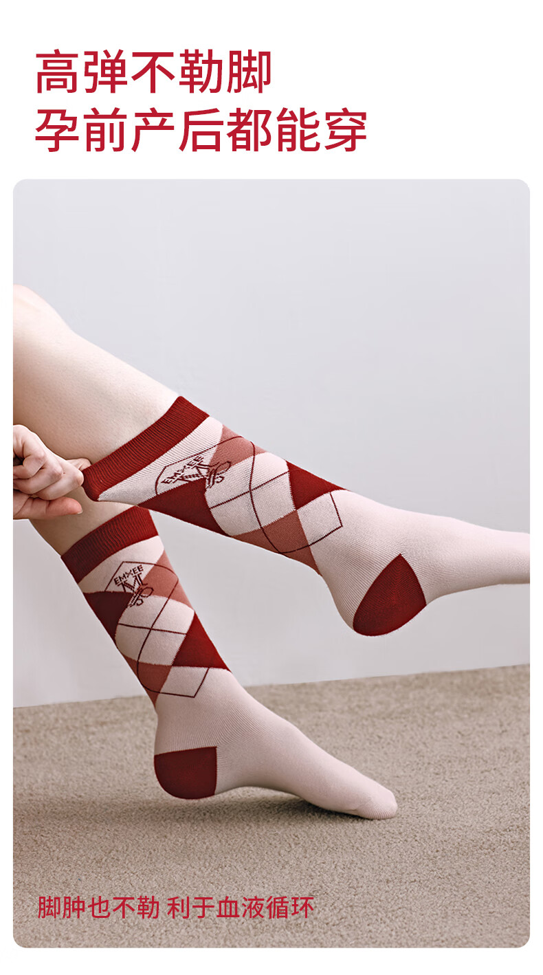 嫚熙(EMXEE)【礼遇礼盒】秋冬季费尔岛月子袜孕妇产后加厚保暖坐月子必用品女 熙望红+燕麦白 2双装 均码