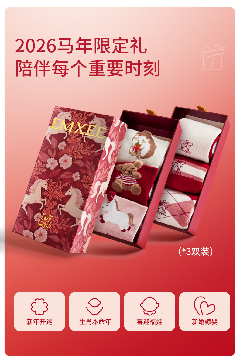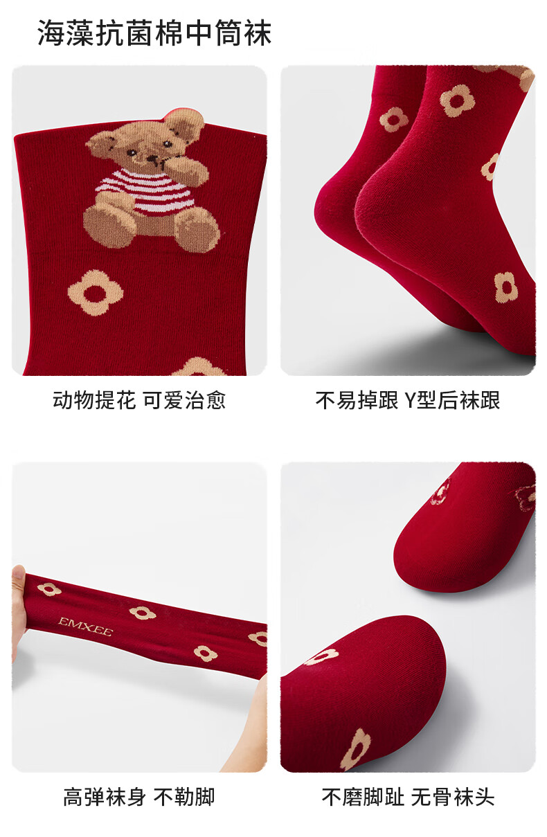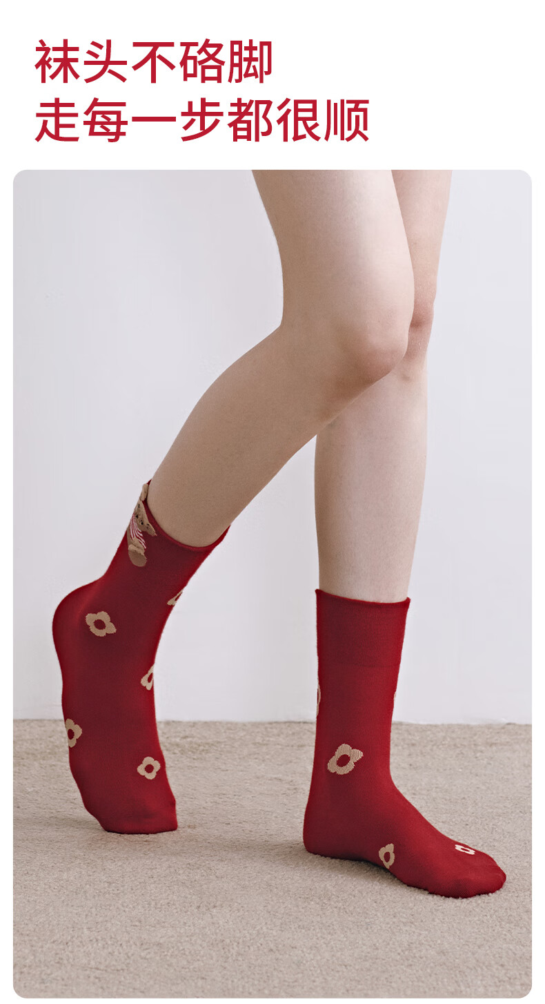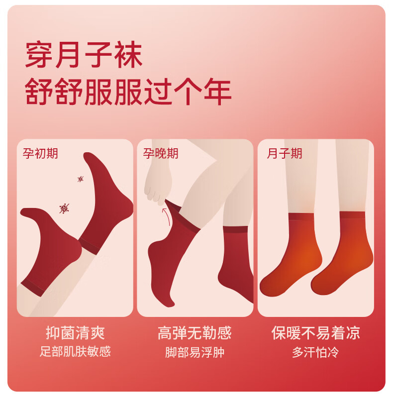 嫚熙(EMXEE)【礼遇礼盒】秋冬季费尔岛月子袜孕妇产后加厚保暖坐月子必用品女 熙望红+燕麦白 2双装 均码
