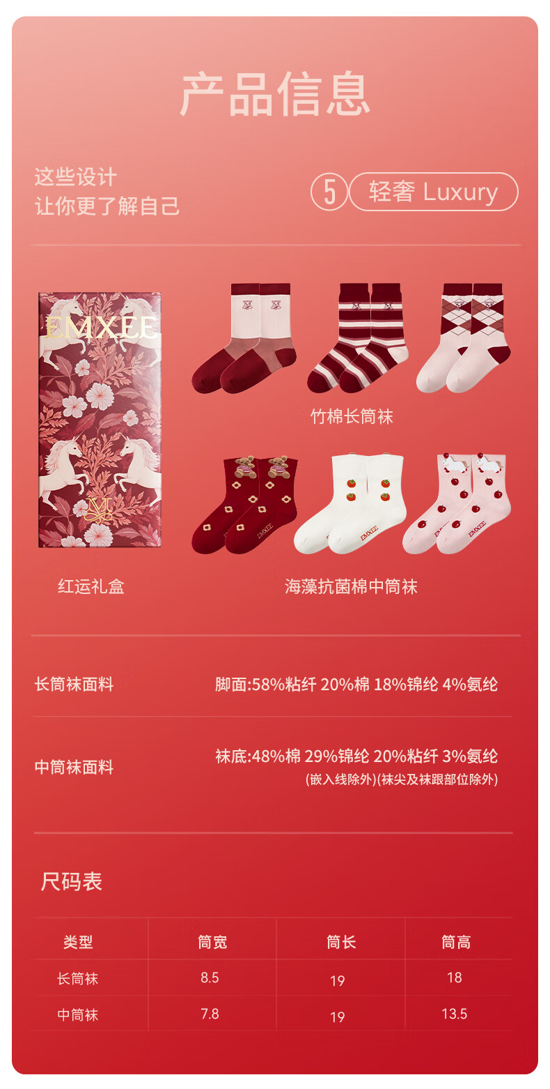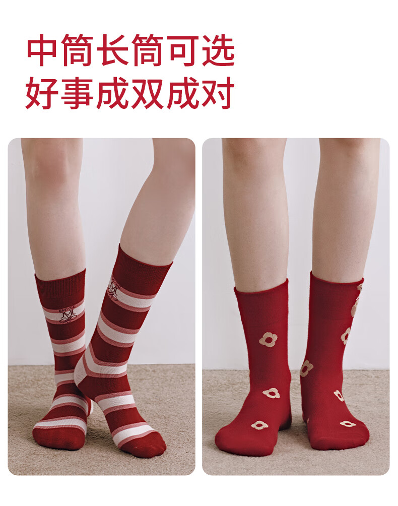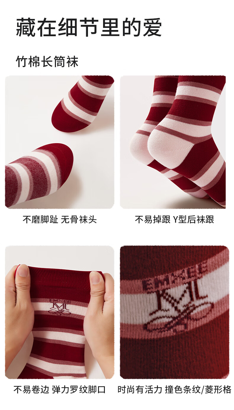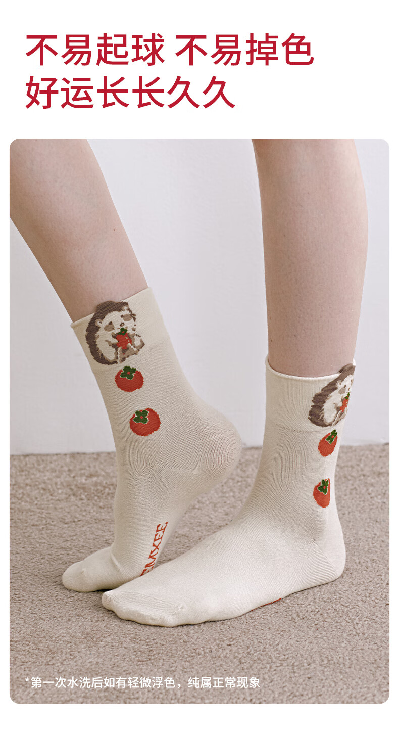 嫚熙(EMXEE)【礼遇礼盒】秋冬季费尔岛月子袜孕妇产后加厚保暖坐月子必用品女 熙望红+燕麦白 2双装 均码