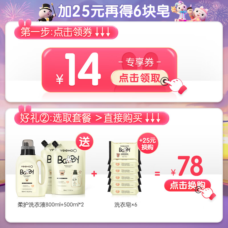 英氏(YEEHOO)婴儿洗衣液宝宝专用洗衣皂液儿童内裤天然酵素去污柔护洗衣液 洗衣液800ml*1+500ml*2