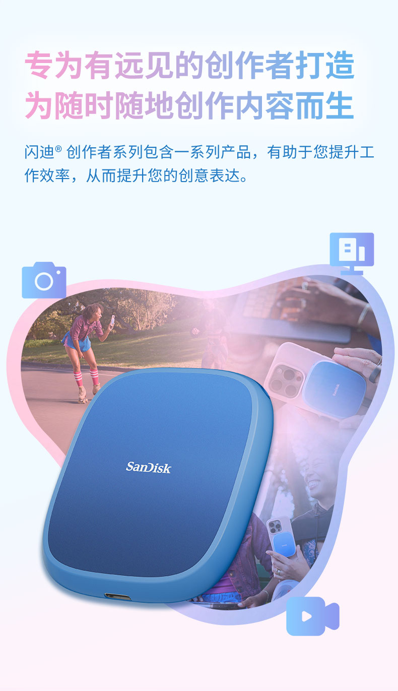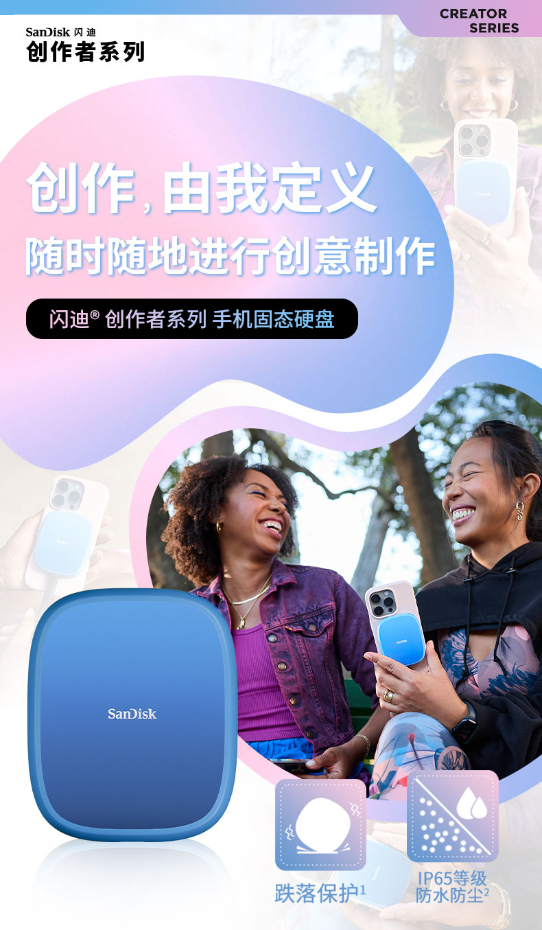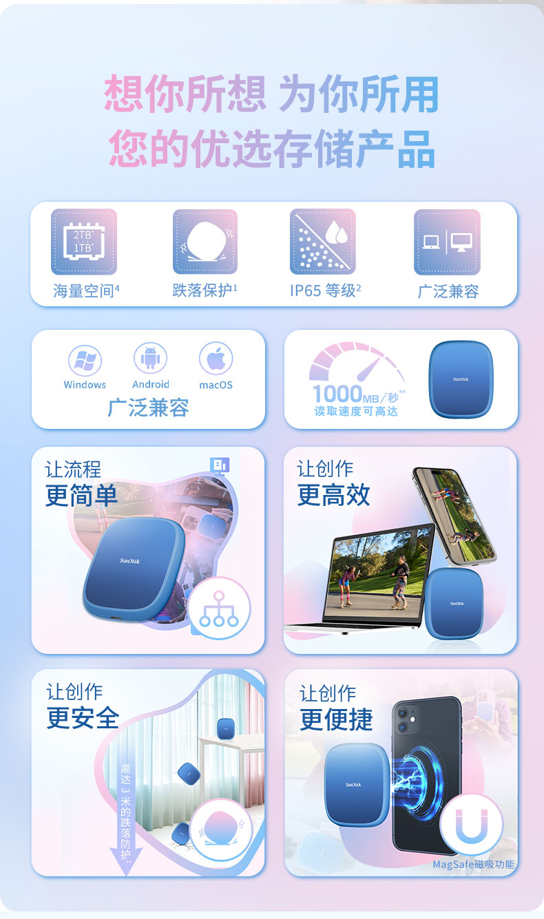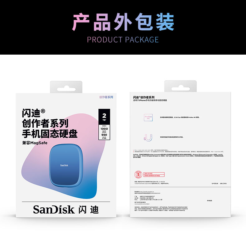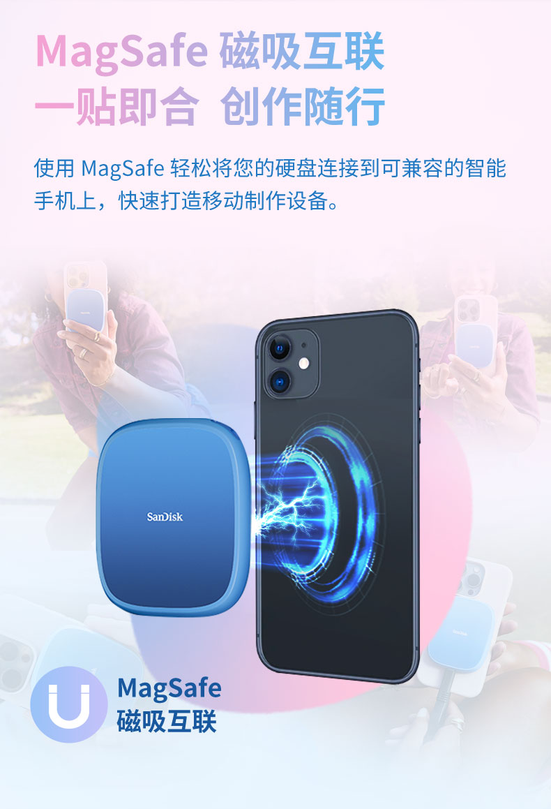 闪迪(SanDisk)创作者系列 E62C Type-C 磁吸移动固态硬盘 苹果手机直连笔记本外接SSD 渐变蓝 2TB | 1000MB/s