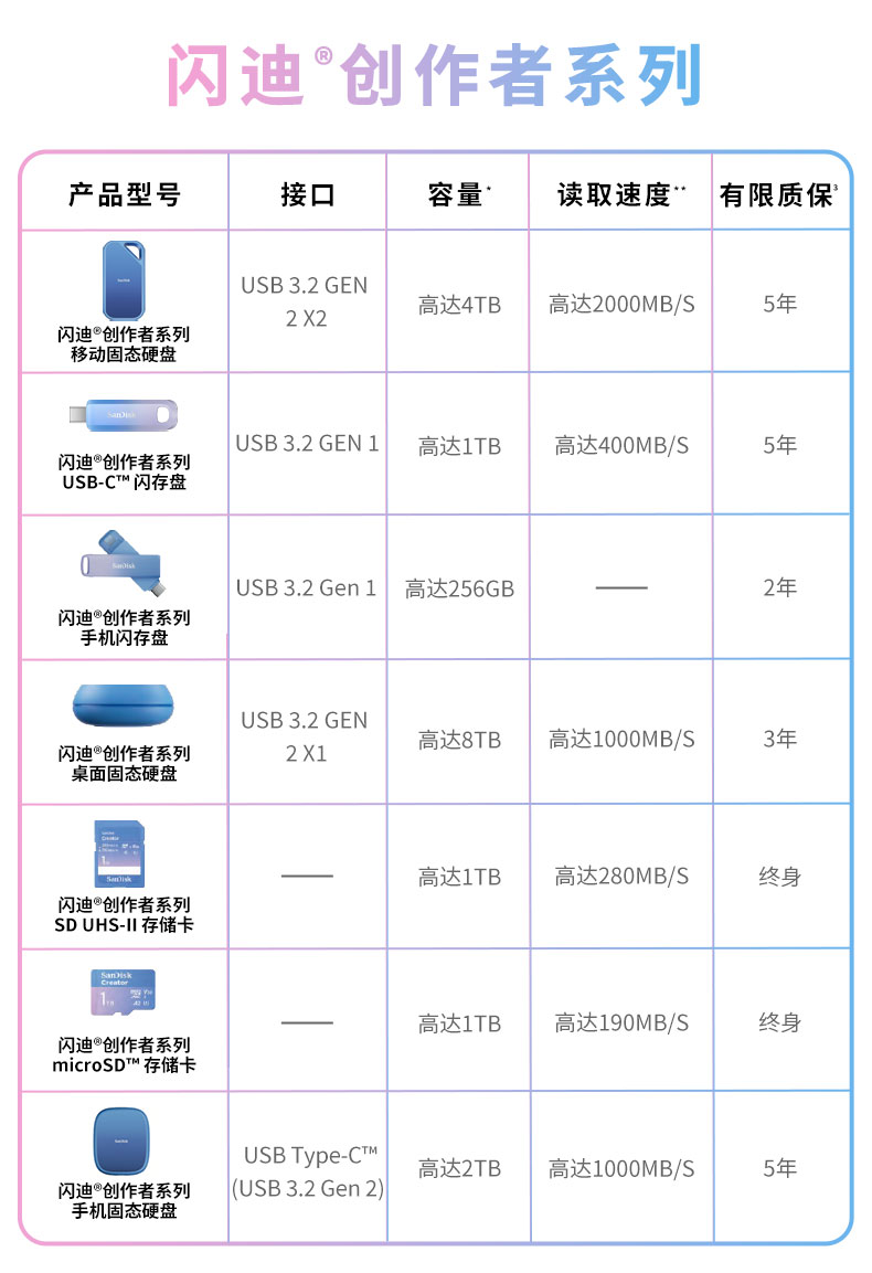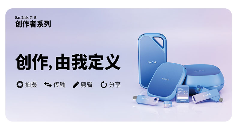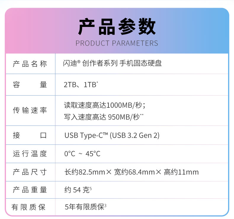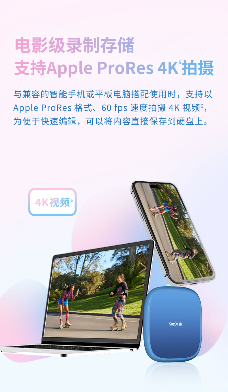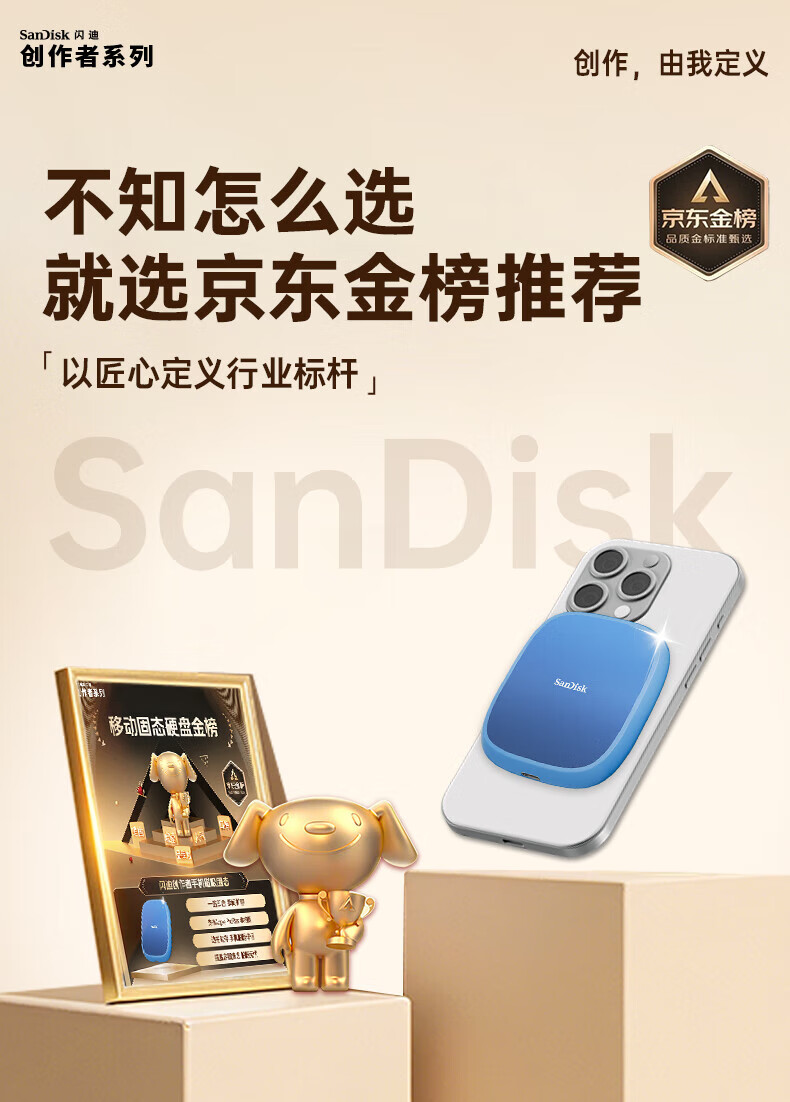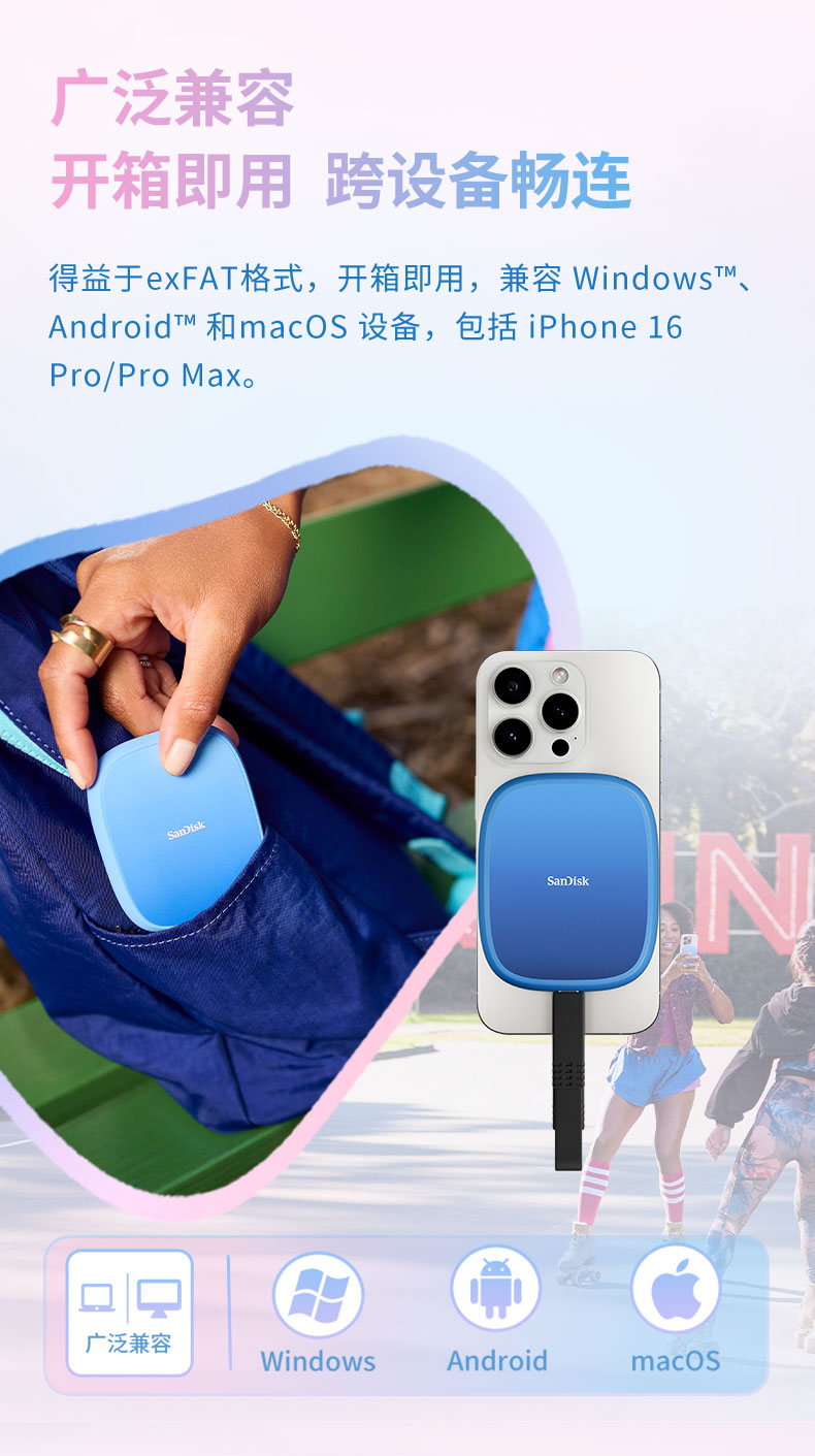 闪迪(SanDisk)创作者系列 E62C Type-C 磁吸移动固态硬盘 苹果手机直连笔记本外接SSD 渐变蓝 2TB | 1000MB/s
