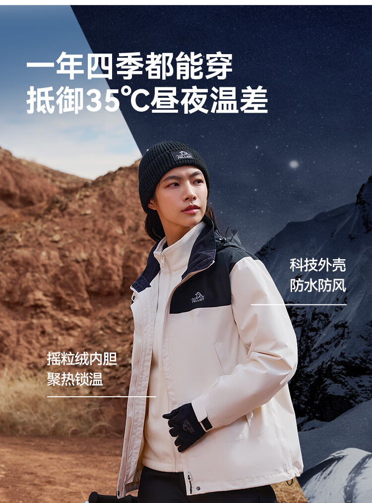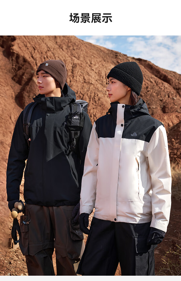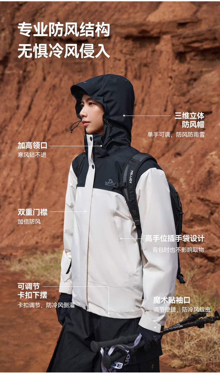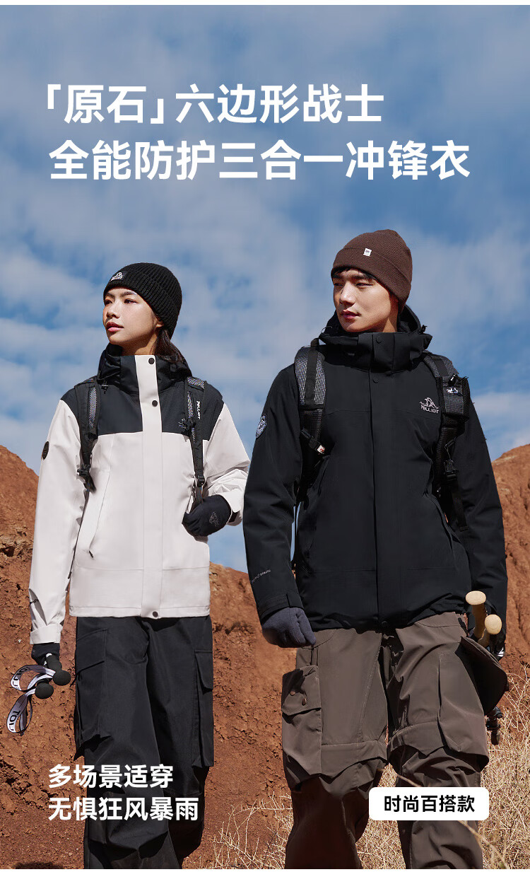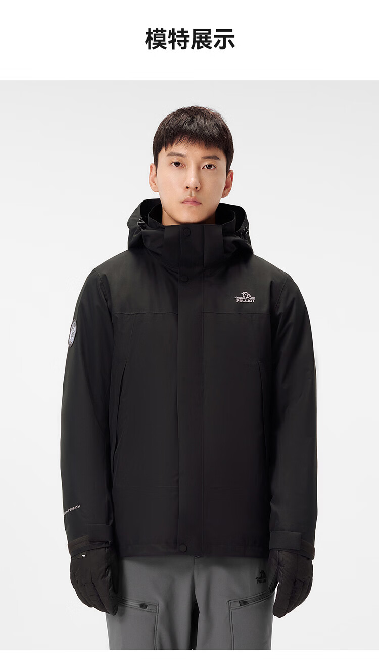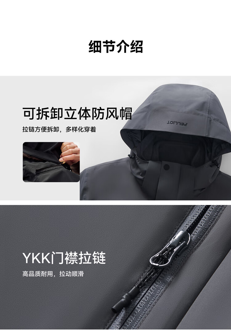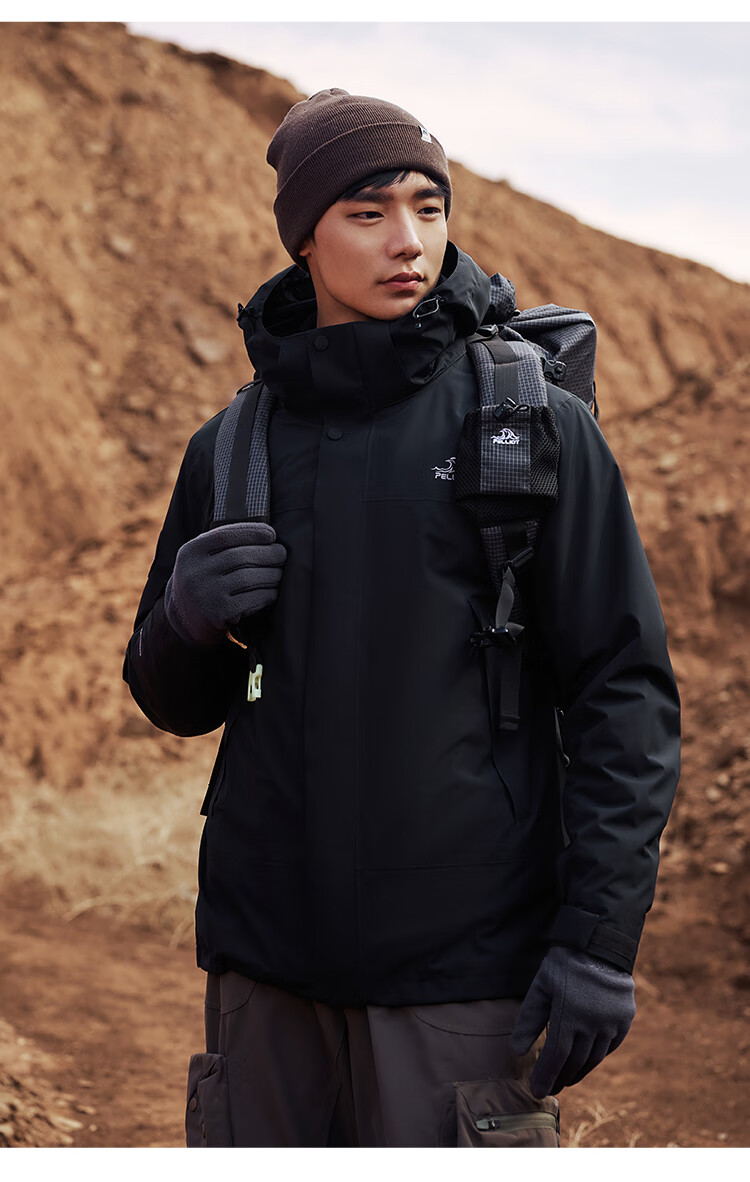 伯希和(Pelliot)[成毅同款]原石冲锋衣三合一男女秋冬户外保暖外套114301029黑L