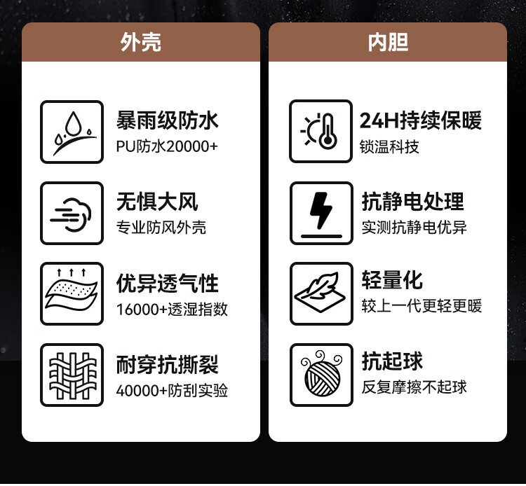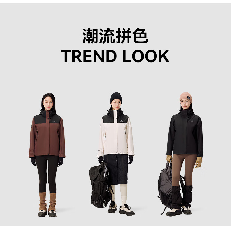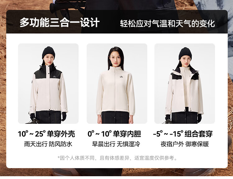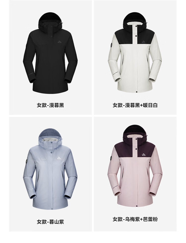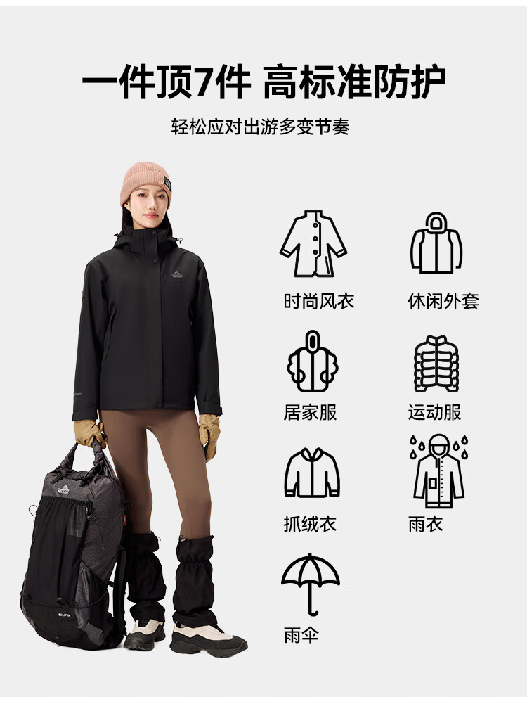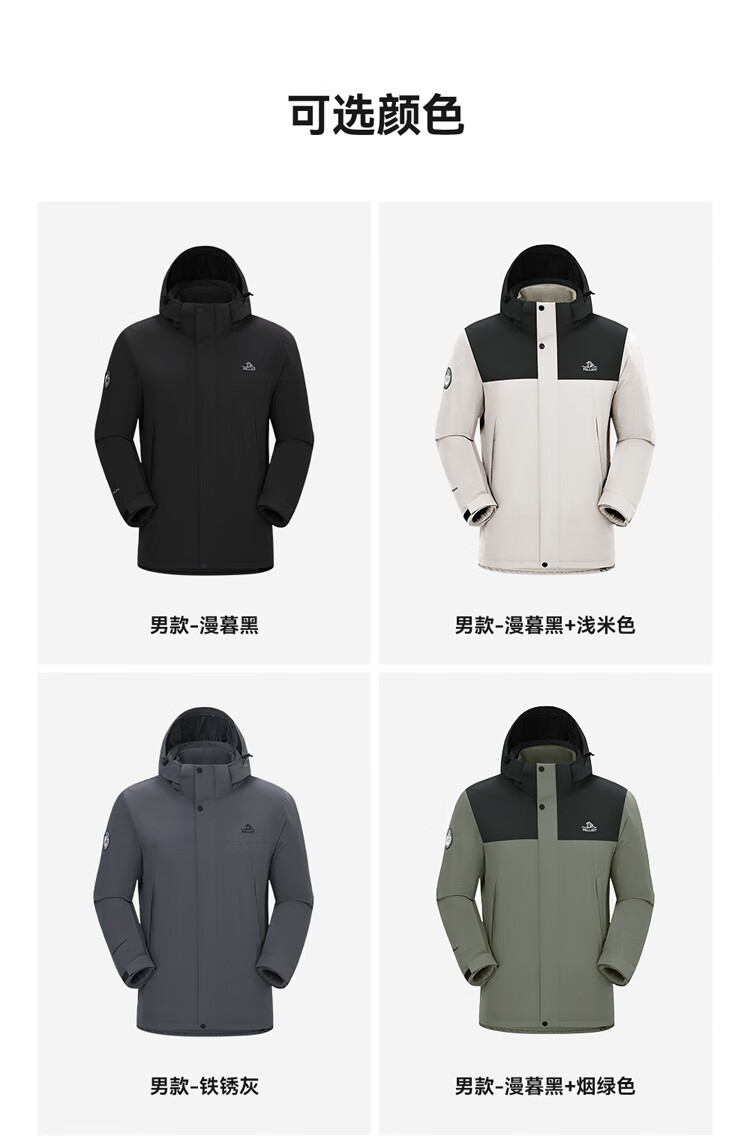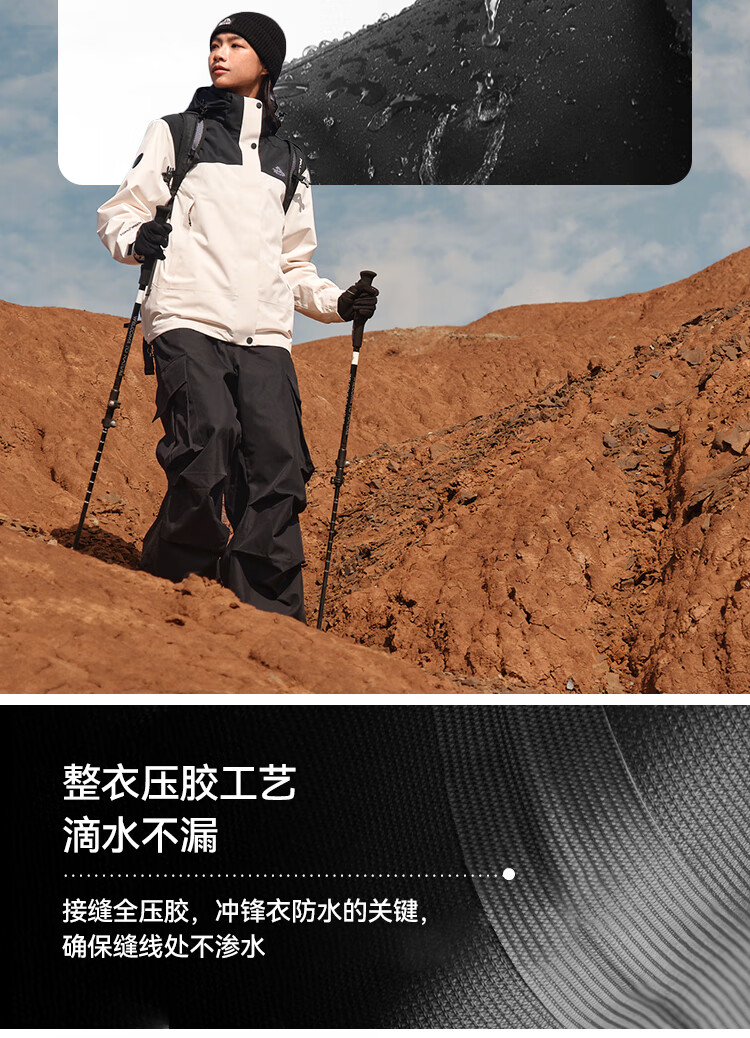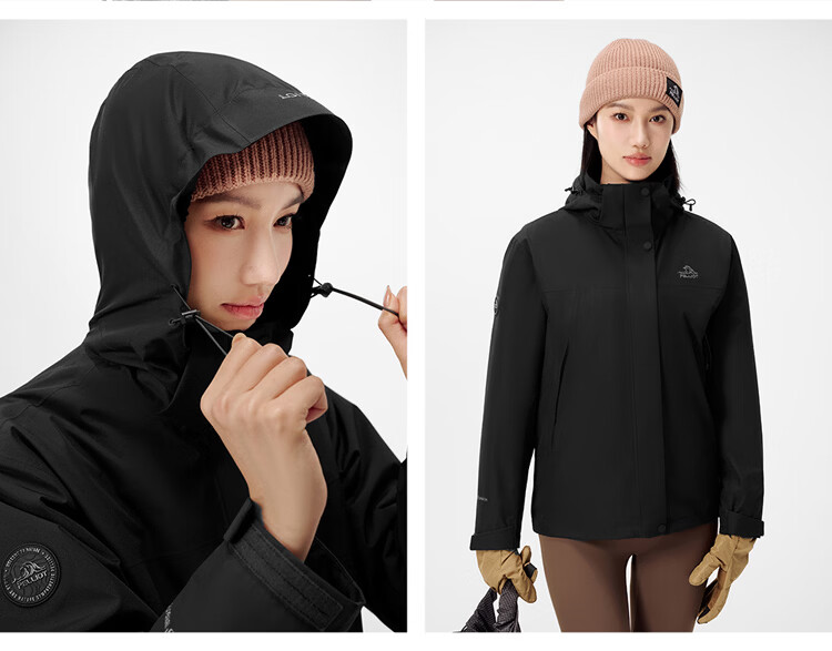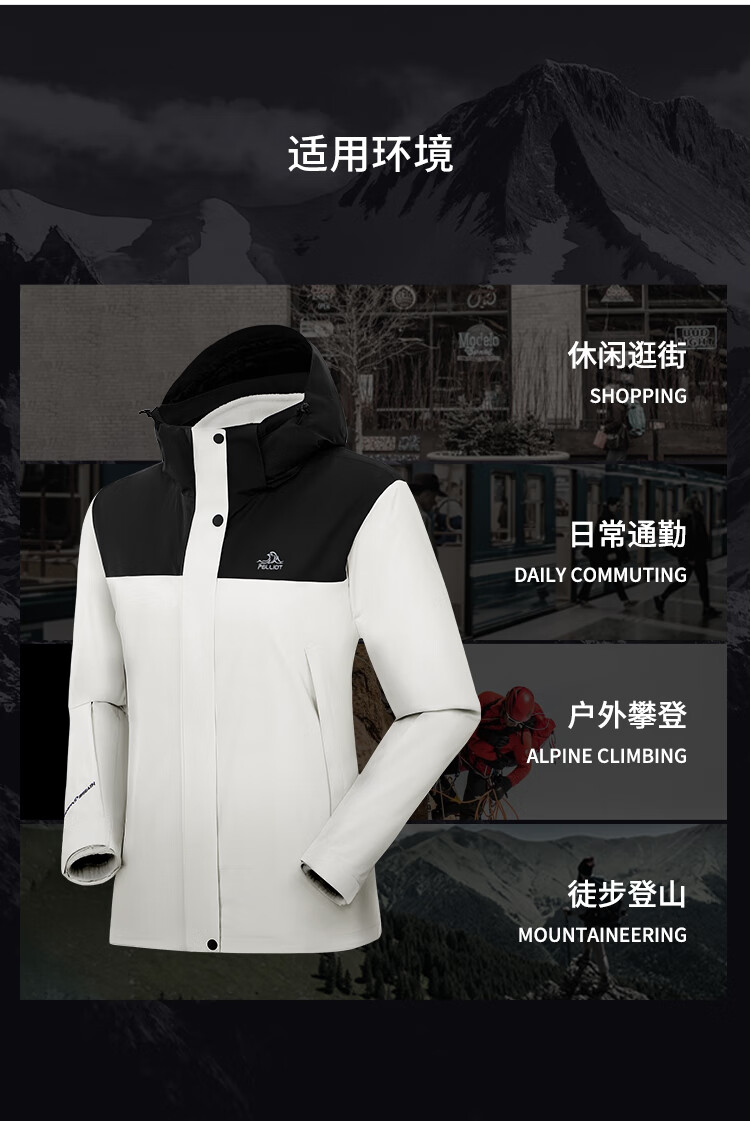 伯希和(Pelliot)[成毅同款]原石冲锋衣三合一男女秋冬户外保暖外套114301029黑L
