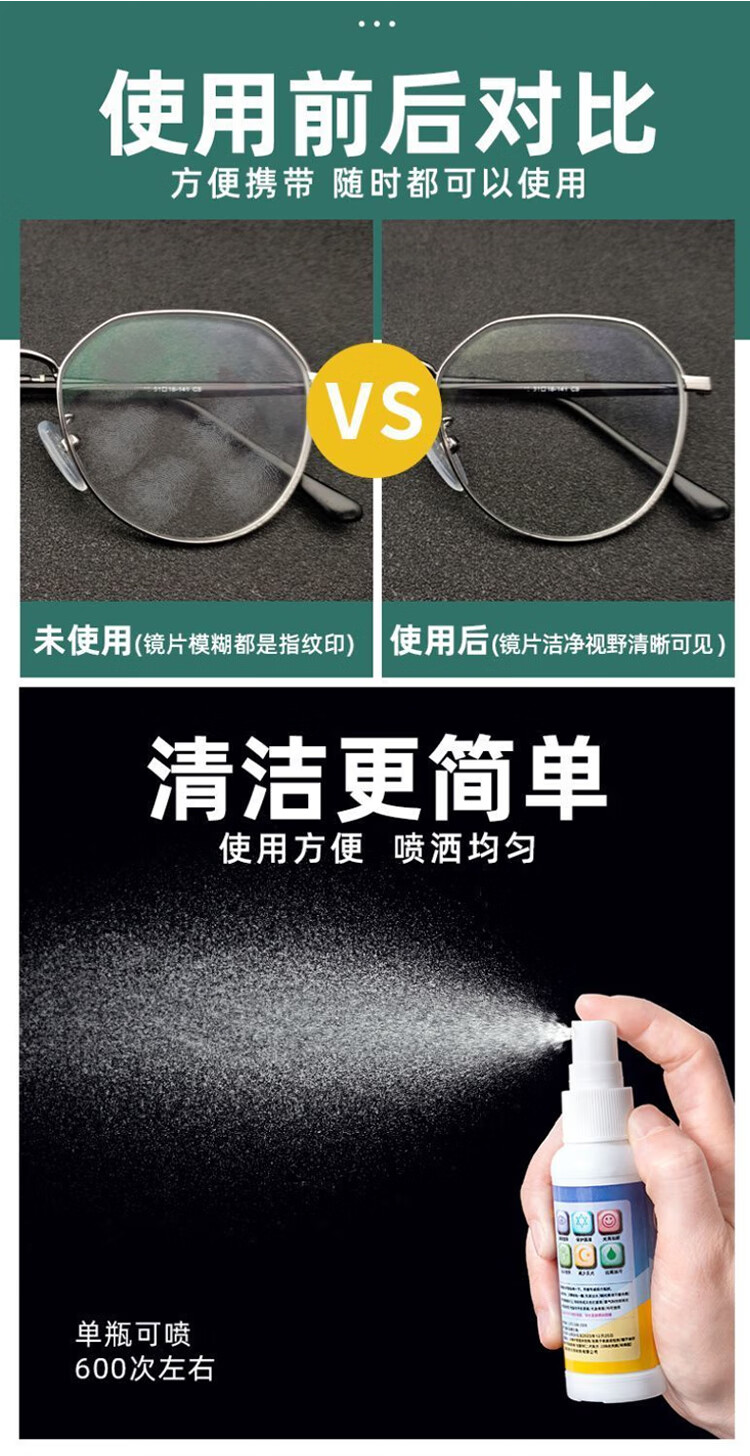 户外旅行眼镜清洗液免洗去油喷雾清洁剂镜片手机屏幕清洁水喷雾 1瓶装【眼镜液】