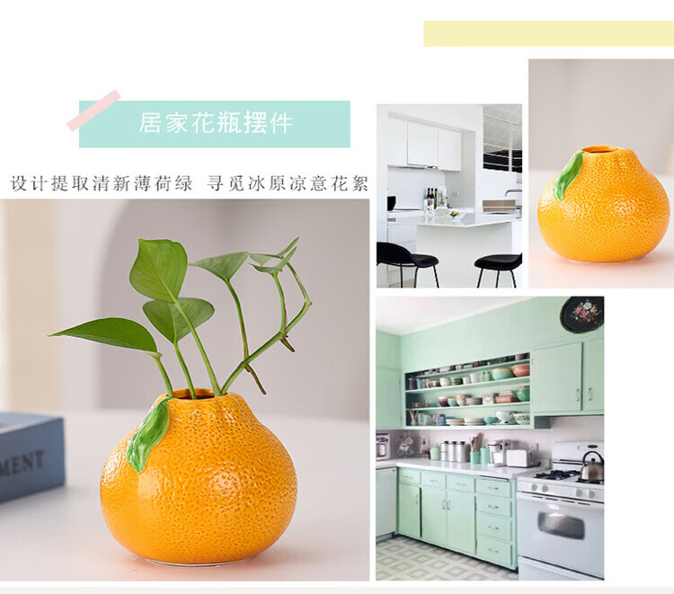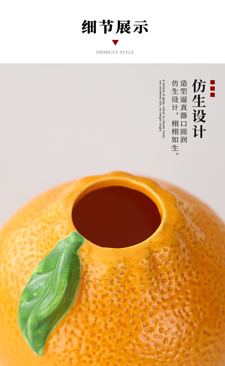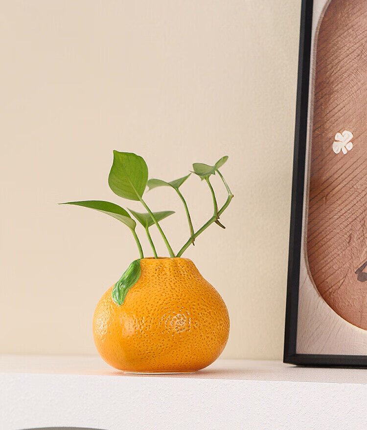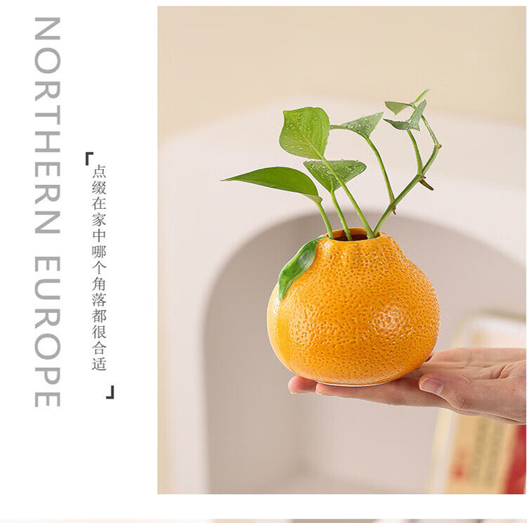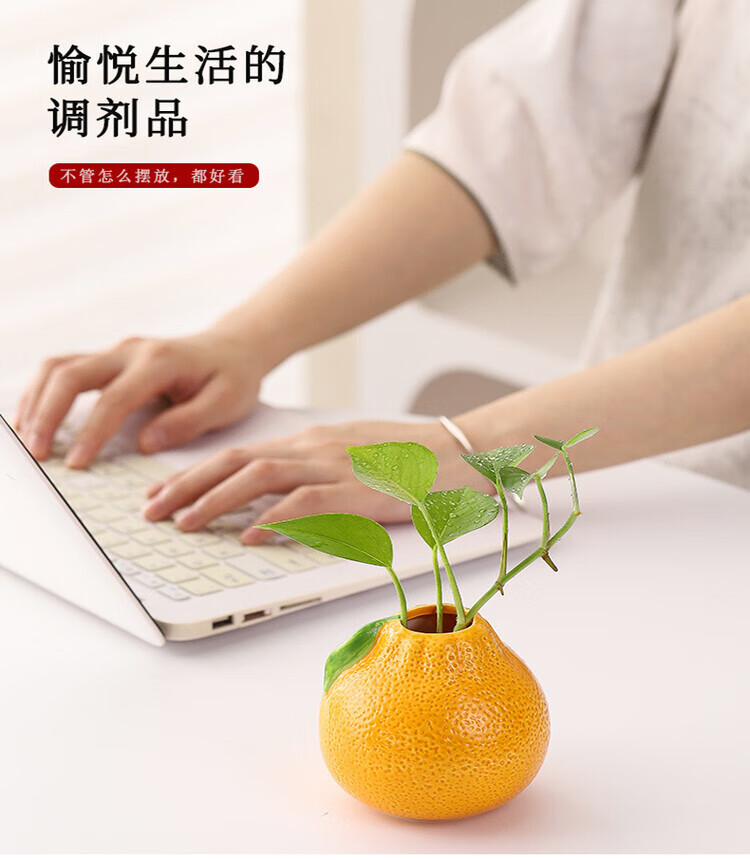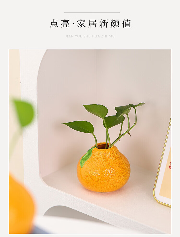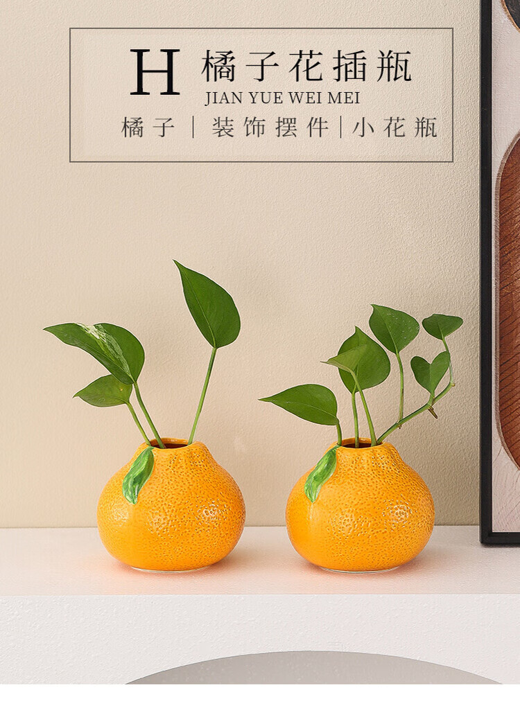 OYKTN自产自销水果橘子花瓶陶瓷创意水养绿萝水培花盆花器装饰摆件批发 小号橘子花瓶(1个)无绿植