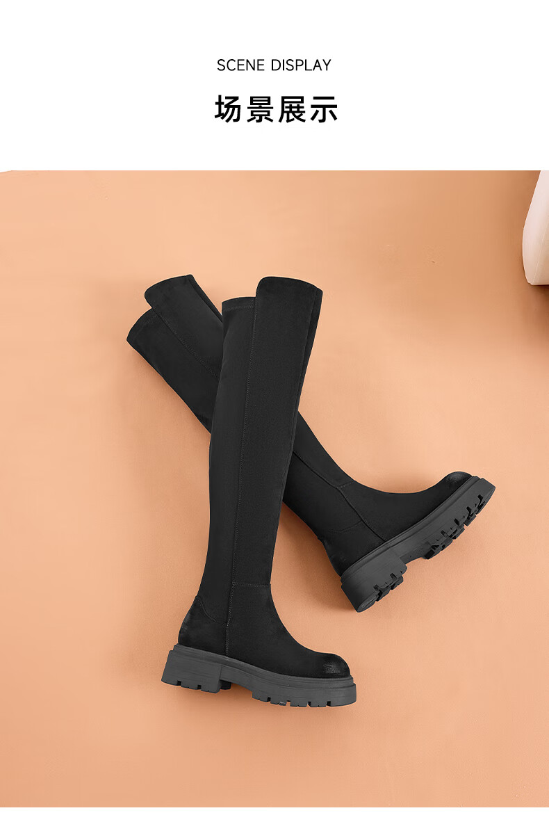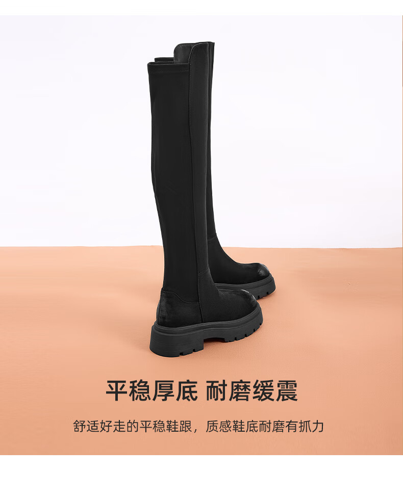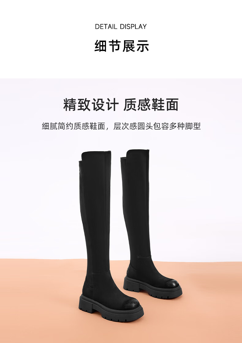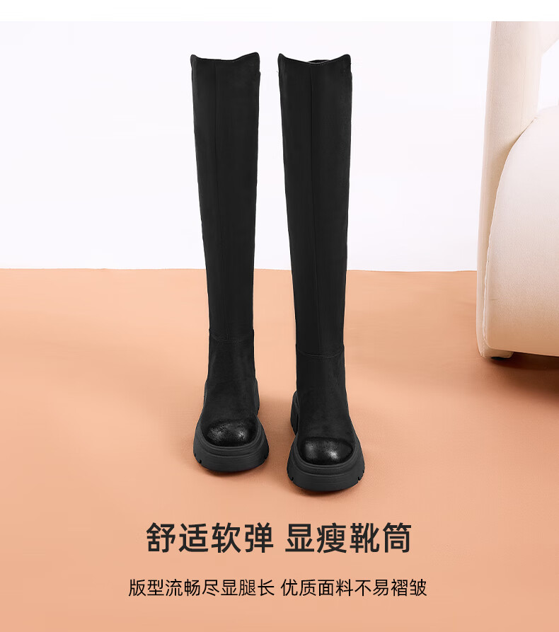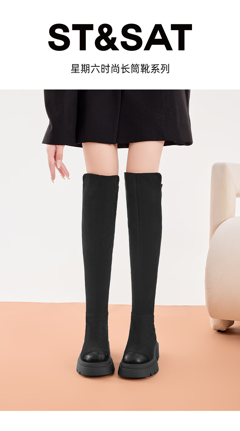 星期六(St&Sat)时尚过膝长筒靴女靴时尚百搭增高松糕底气质显高显瘦瘦靴子 黑色 37