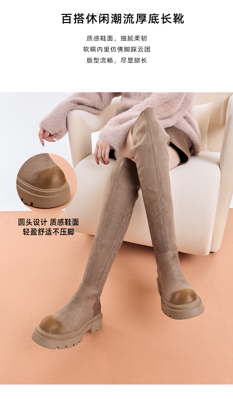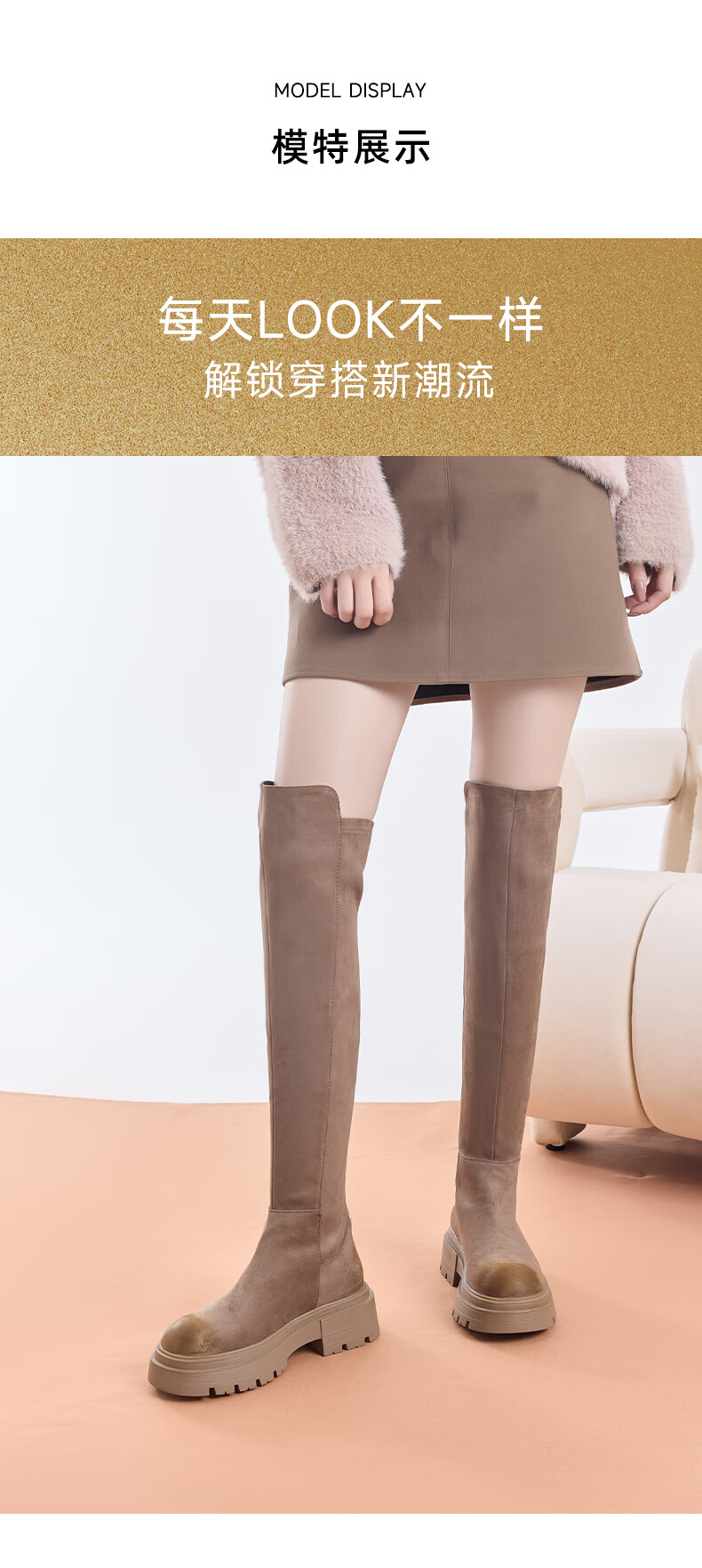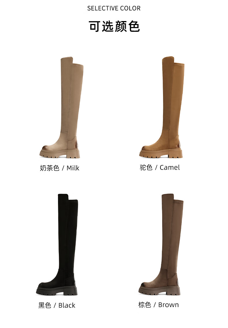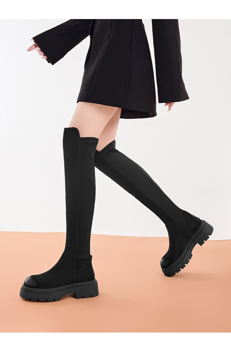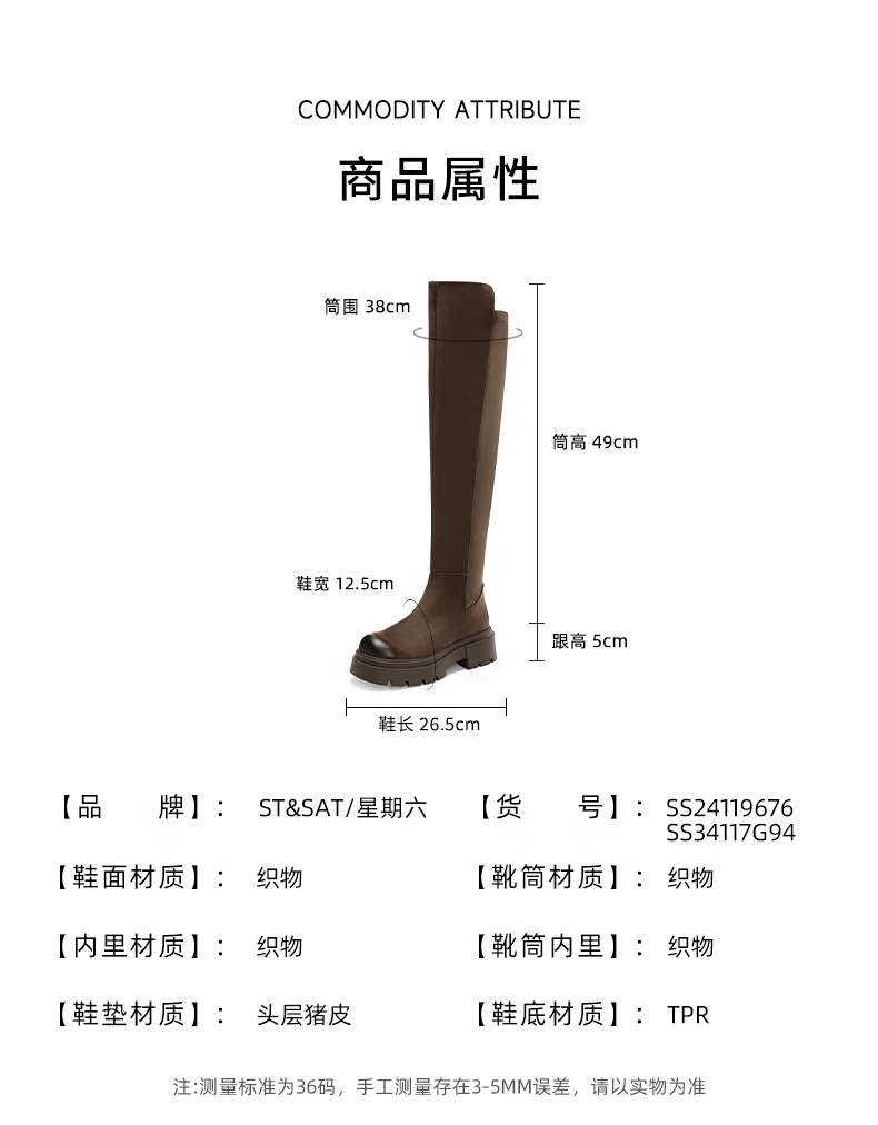 星期六(St&Sat)时尚过膝长筒靴女靴时尚百搭增高松糕底气质显高显瘦瘦靴子 黑色 37