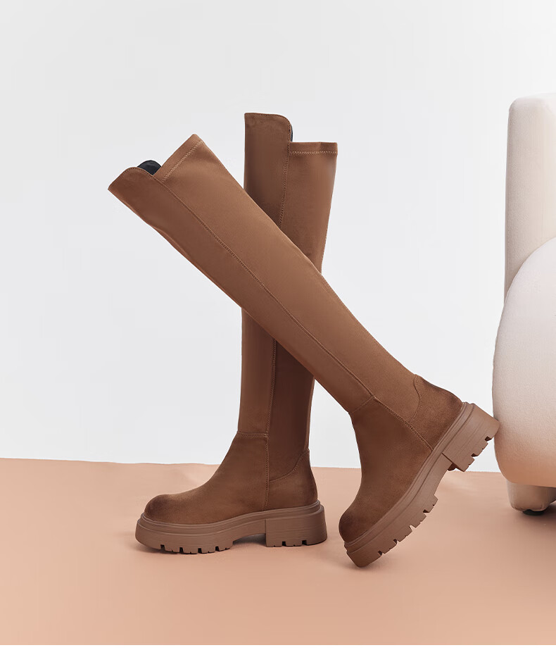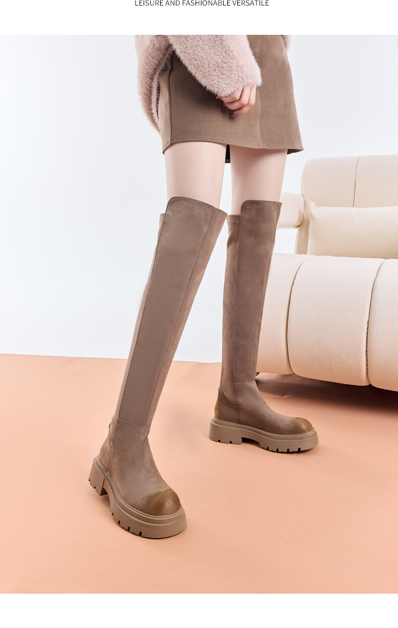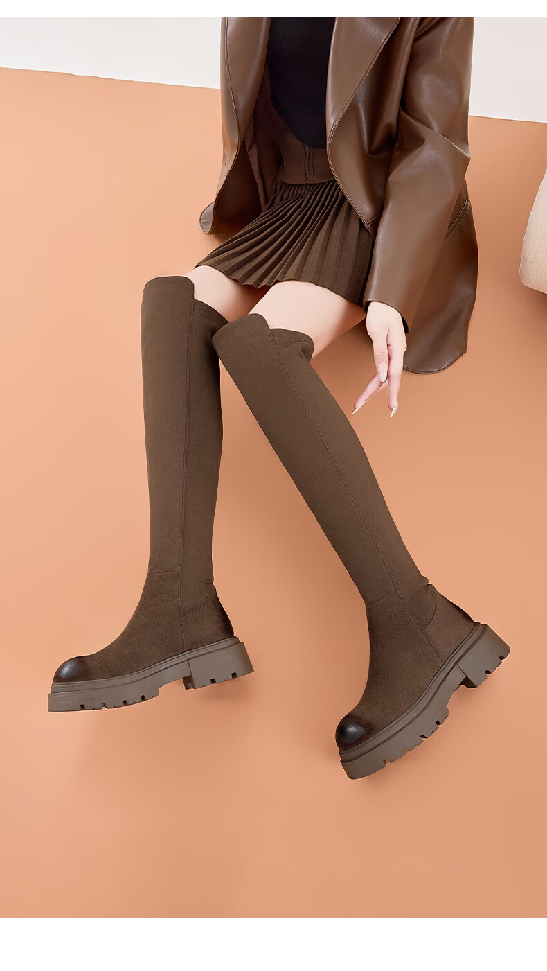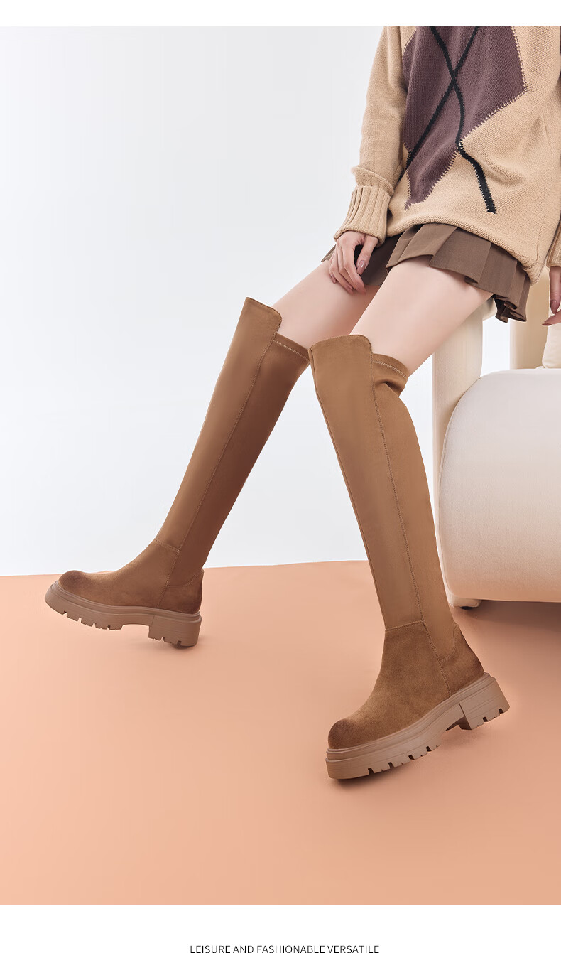 星期六(St&Sat)时尚过膝长筒靴女靴时尚百搭增高松糕底气质显高显瘦瘦靴子 黑色 37