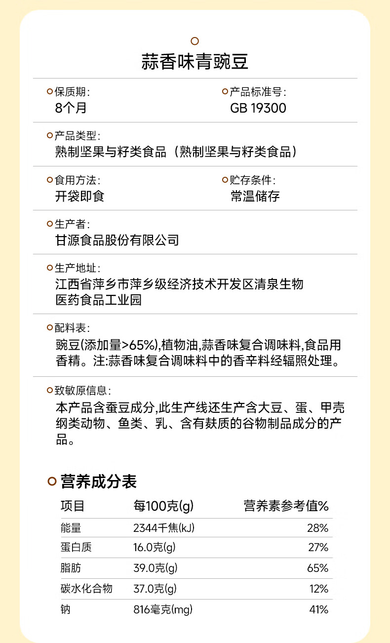 甘源牌蒜香味青豌豆青豆豌豆粒休闲零食坚果炒货酒友圈小吃食品量贩500g