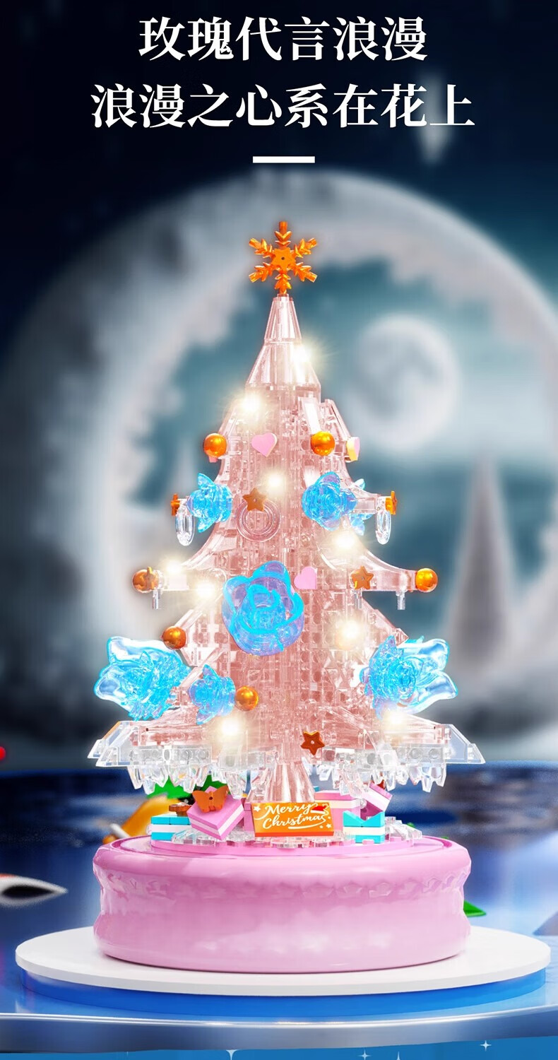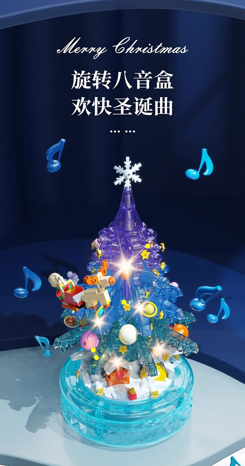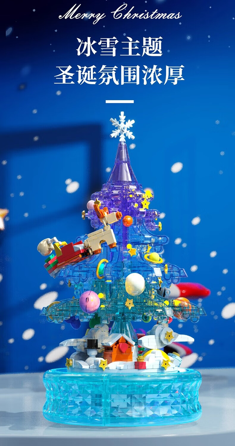 哲高多麦咔冰雪圣诞树灯光音乐盒八音盒儿童拼装积木拼插玩具礼物 冰雪圣诞树音乐盒
