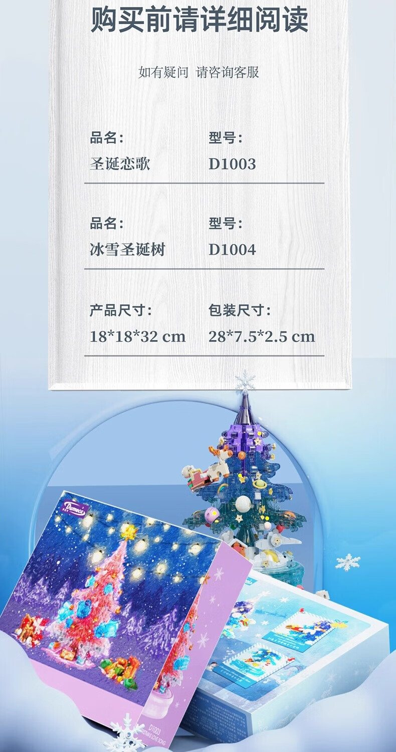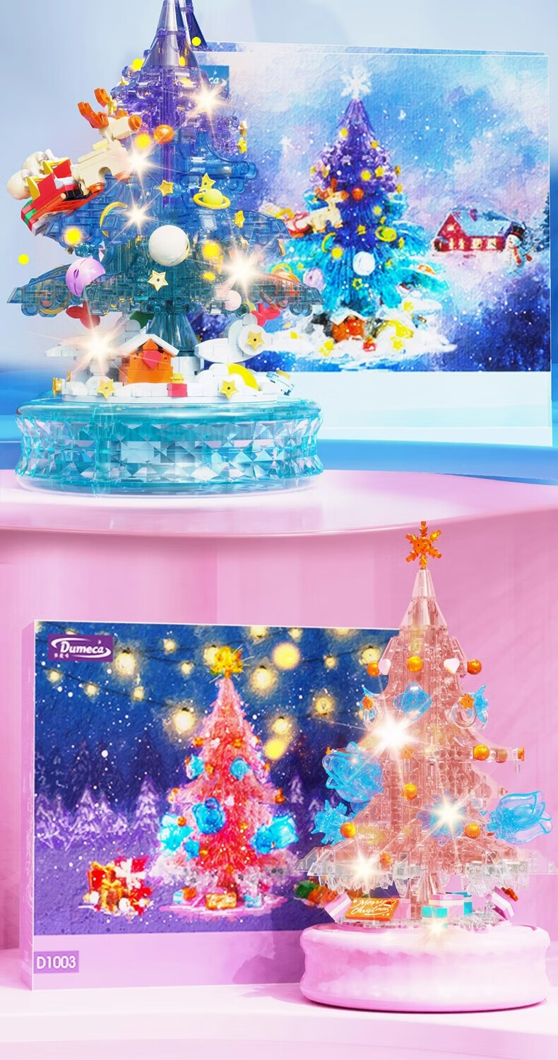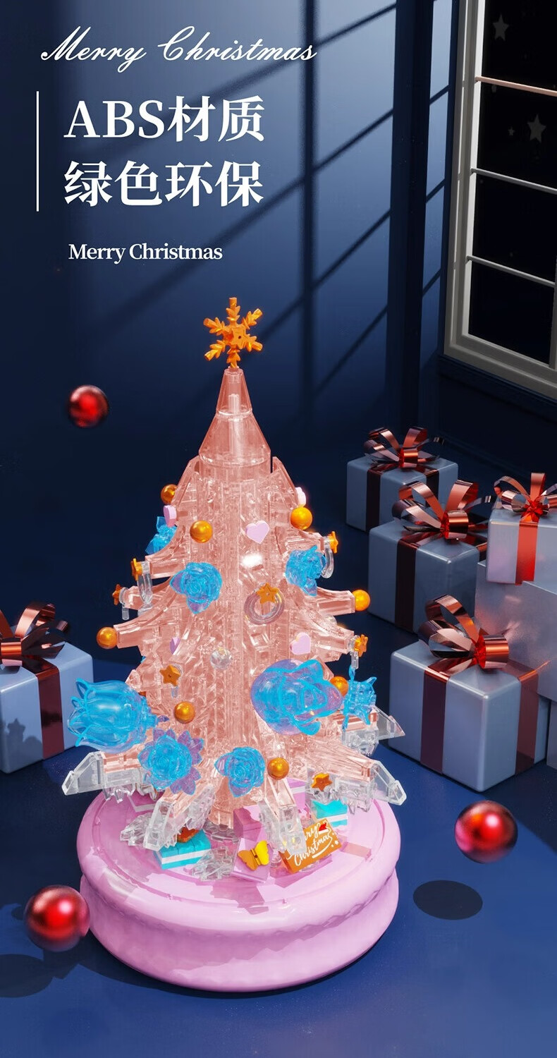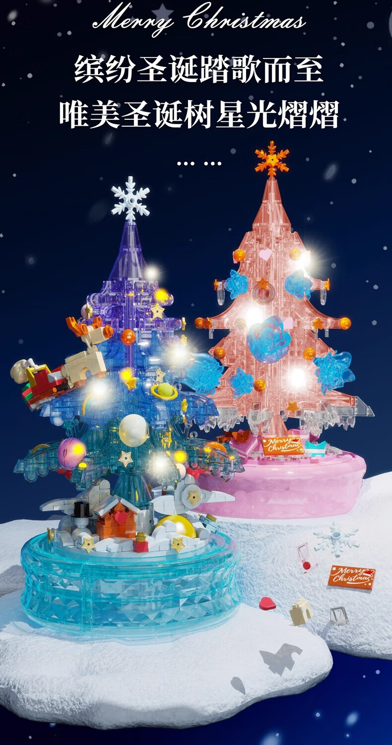 哲高多麦咔冰雪圣诞树灯光音乐盒八音盒儿童拼装积木拼插玩具礼物 冰雪圣诞树音乐盒