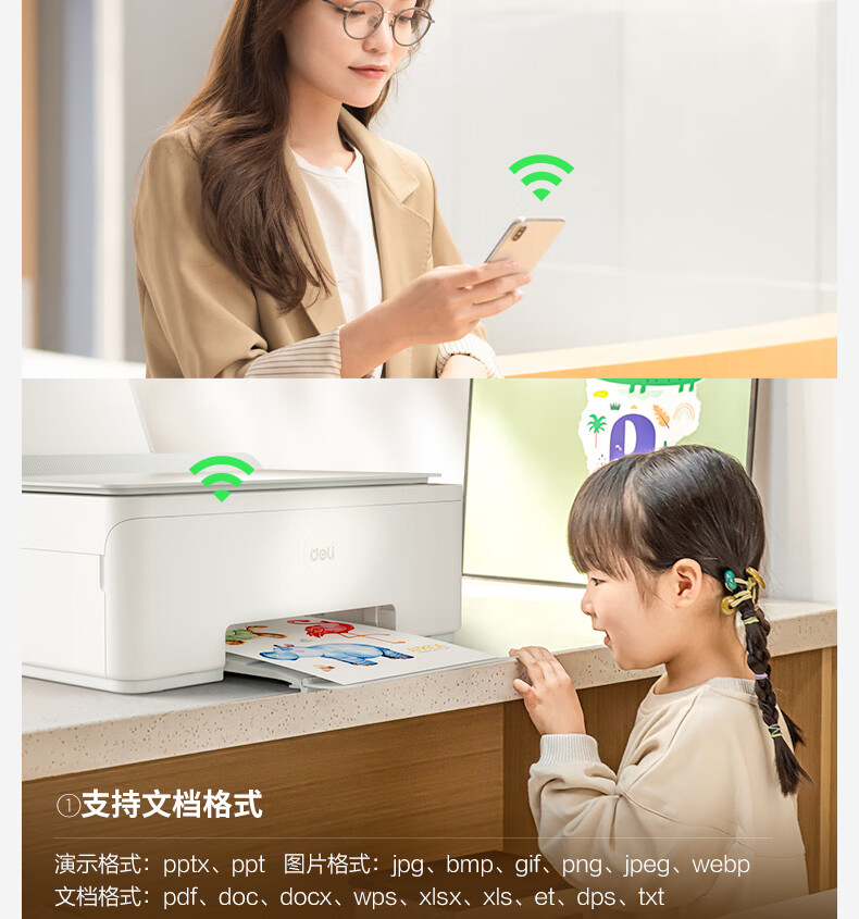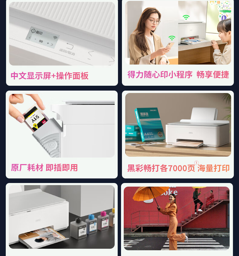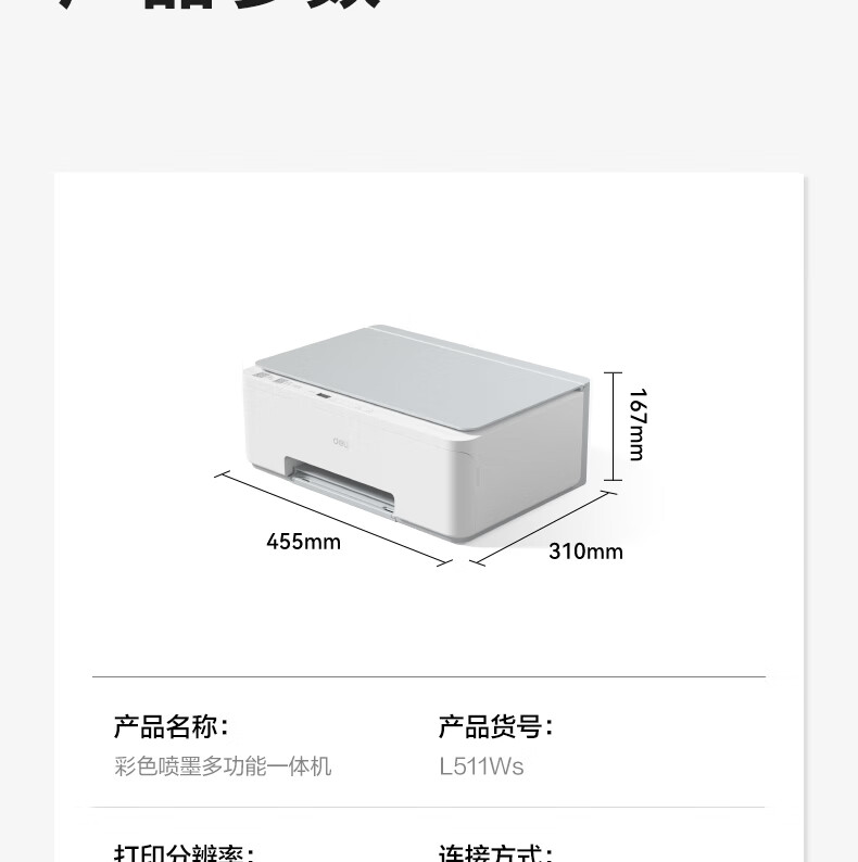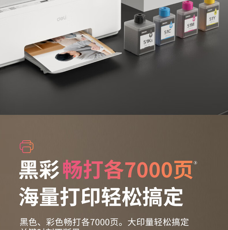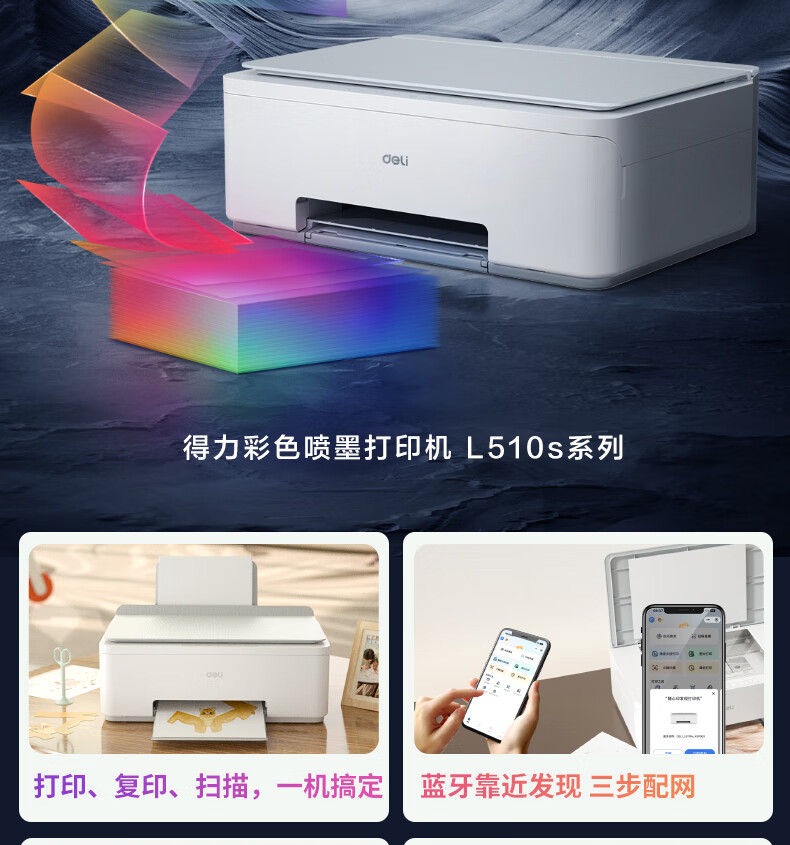 得力(deli)L511Ws打印机家用 家庭错题彩色打印 打卷子作业能连手机无线 复印扫描一体 墨仓式照片喷墨打印机