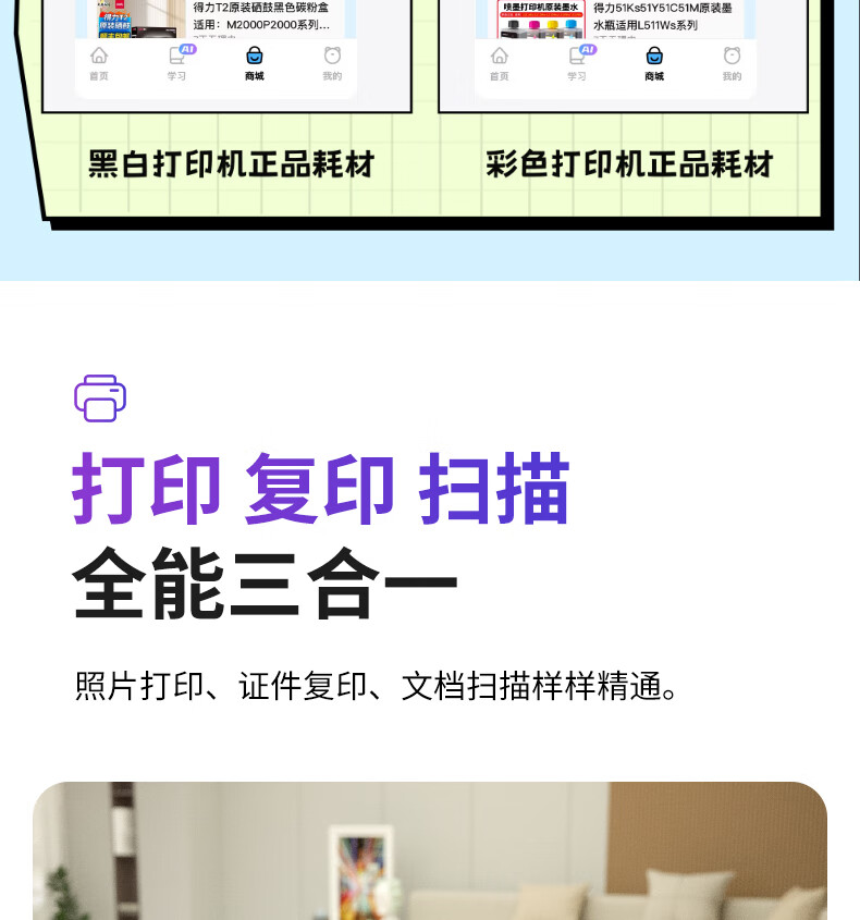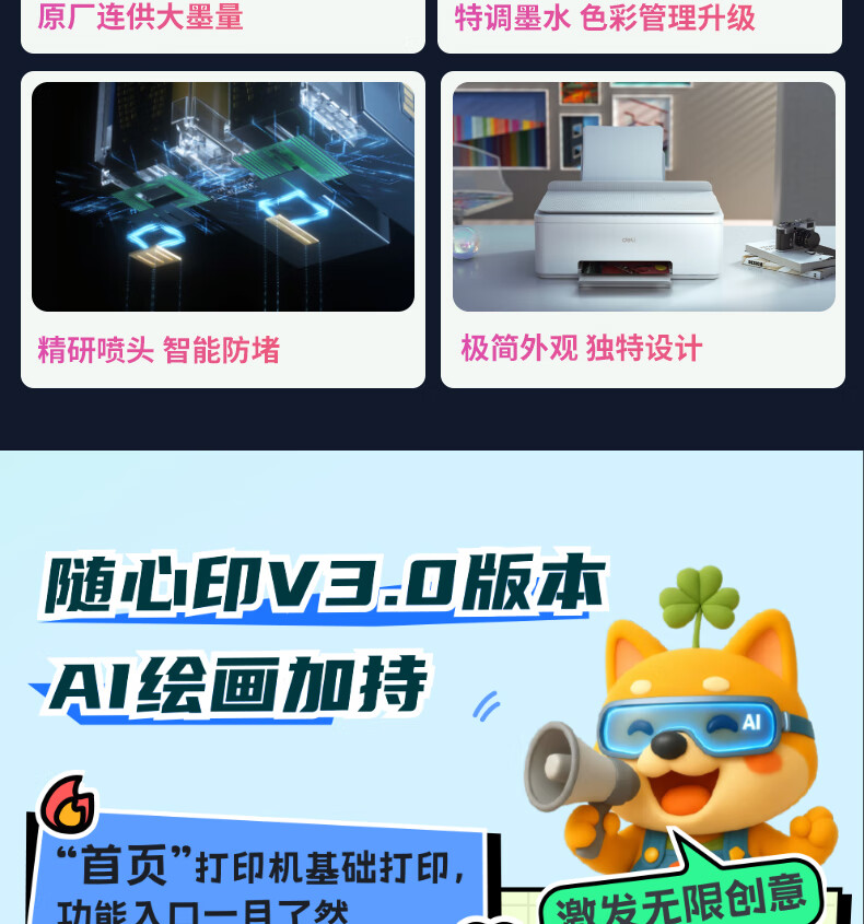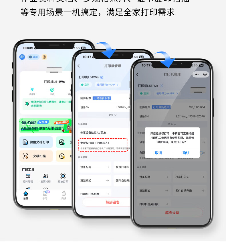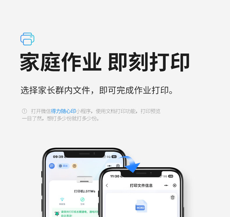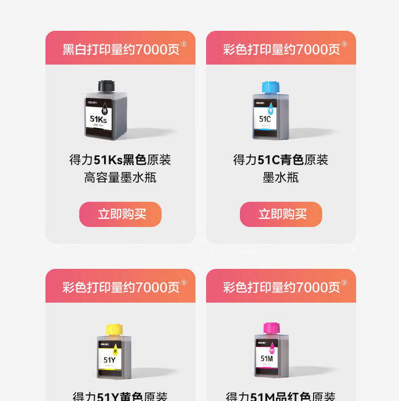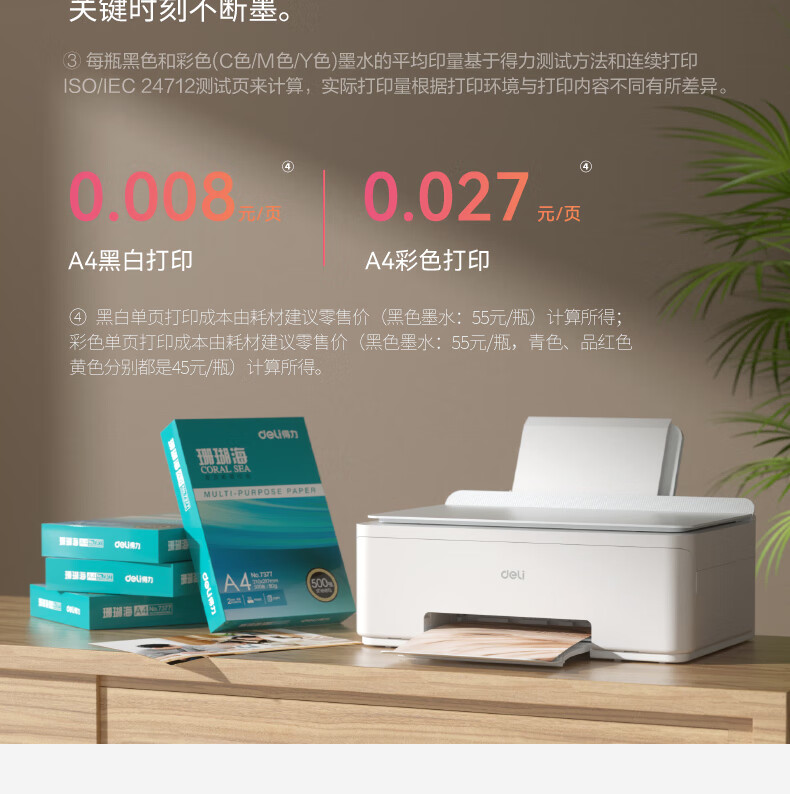 得力(deli)L511Ws打印机家用 家庭错题彩色打印 打卷子作业能连手机无线 复印扫描一体 墨仓式照片喷墨打印机