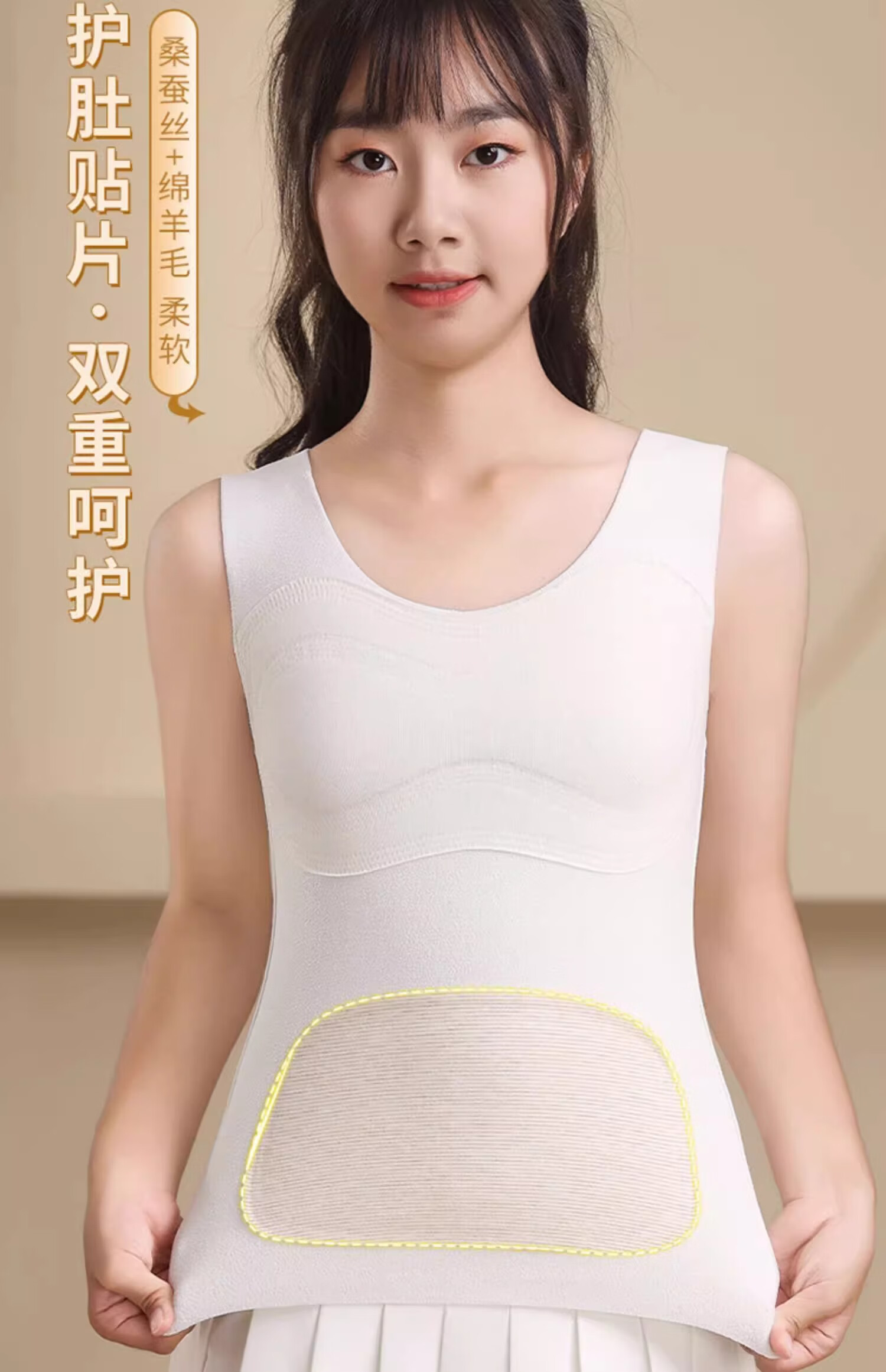 猫人(MiiOW)女童发育内衣保暖背心发育期初中生少女大童秋冬季运动防震小背心 水绿【桑蚕丝+绵羊毛护肚】 150 (M) 建议体重60-80斤