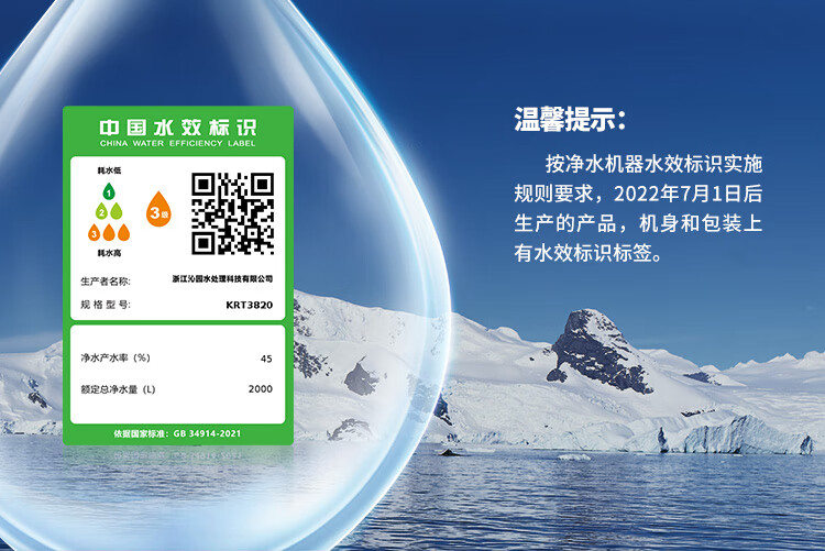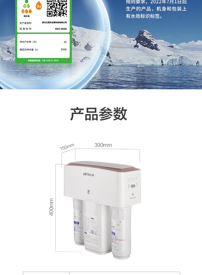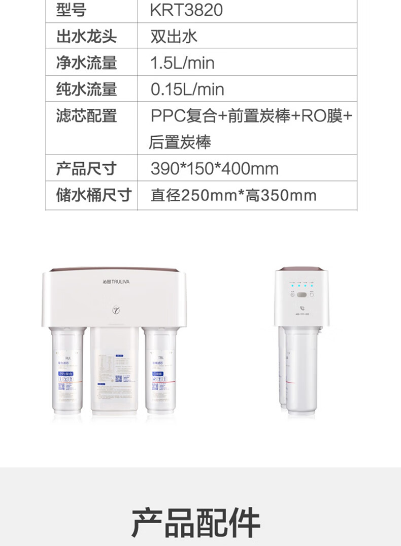 沁园经典净水器家用长效RO膜反渗透过滤器 厨房台下式直饮净饮一体机 双出水设计 KRT3820