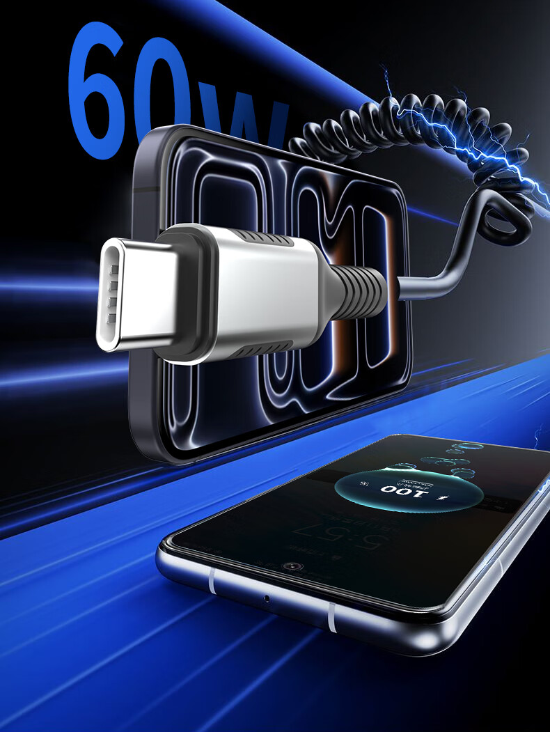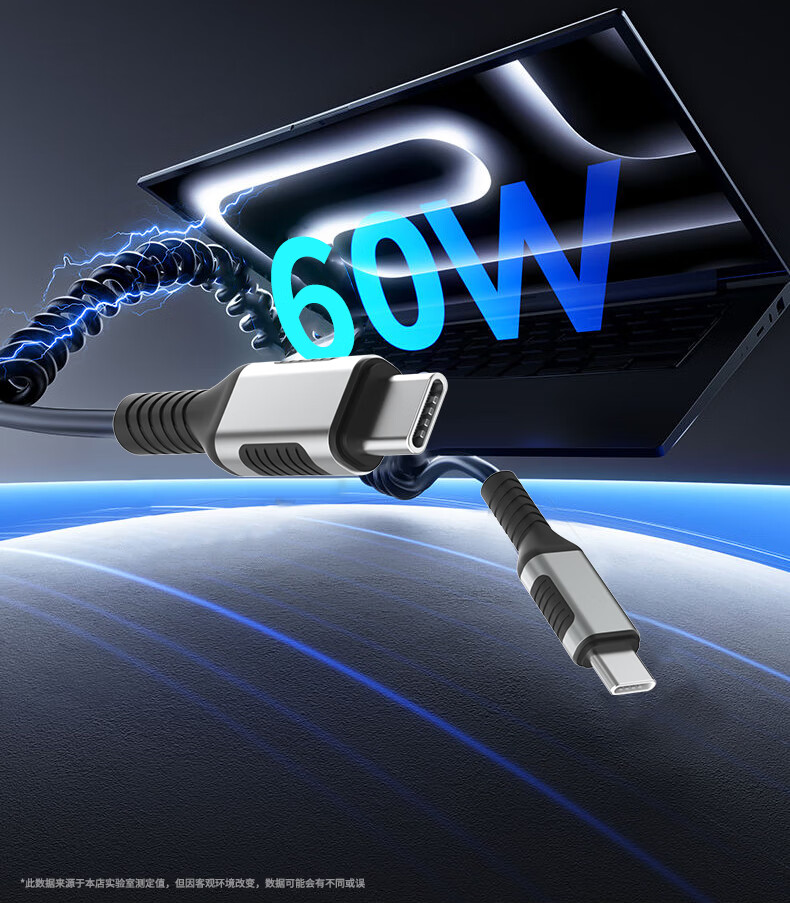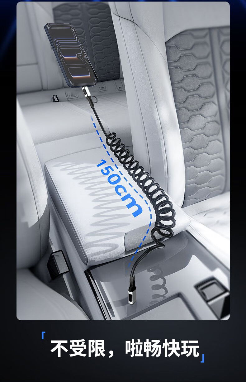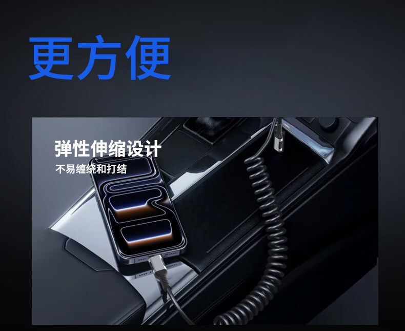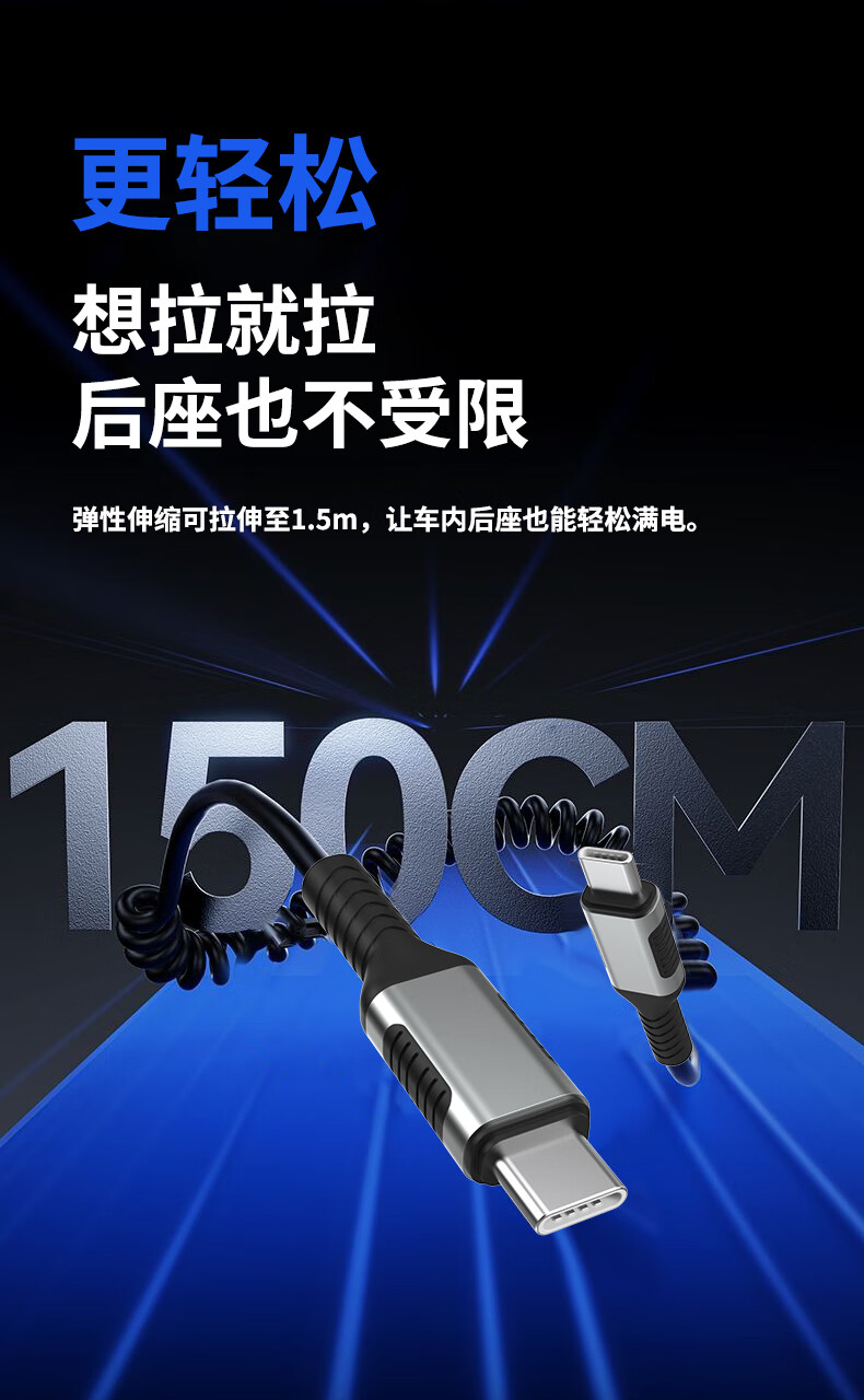 Smorss车载弹簧线双头Type-C数据线PD60W快充电线ctoc车载适用华为超级快充苹果16/15Pro平板